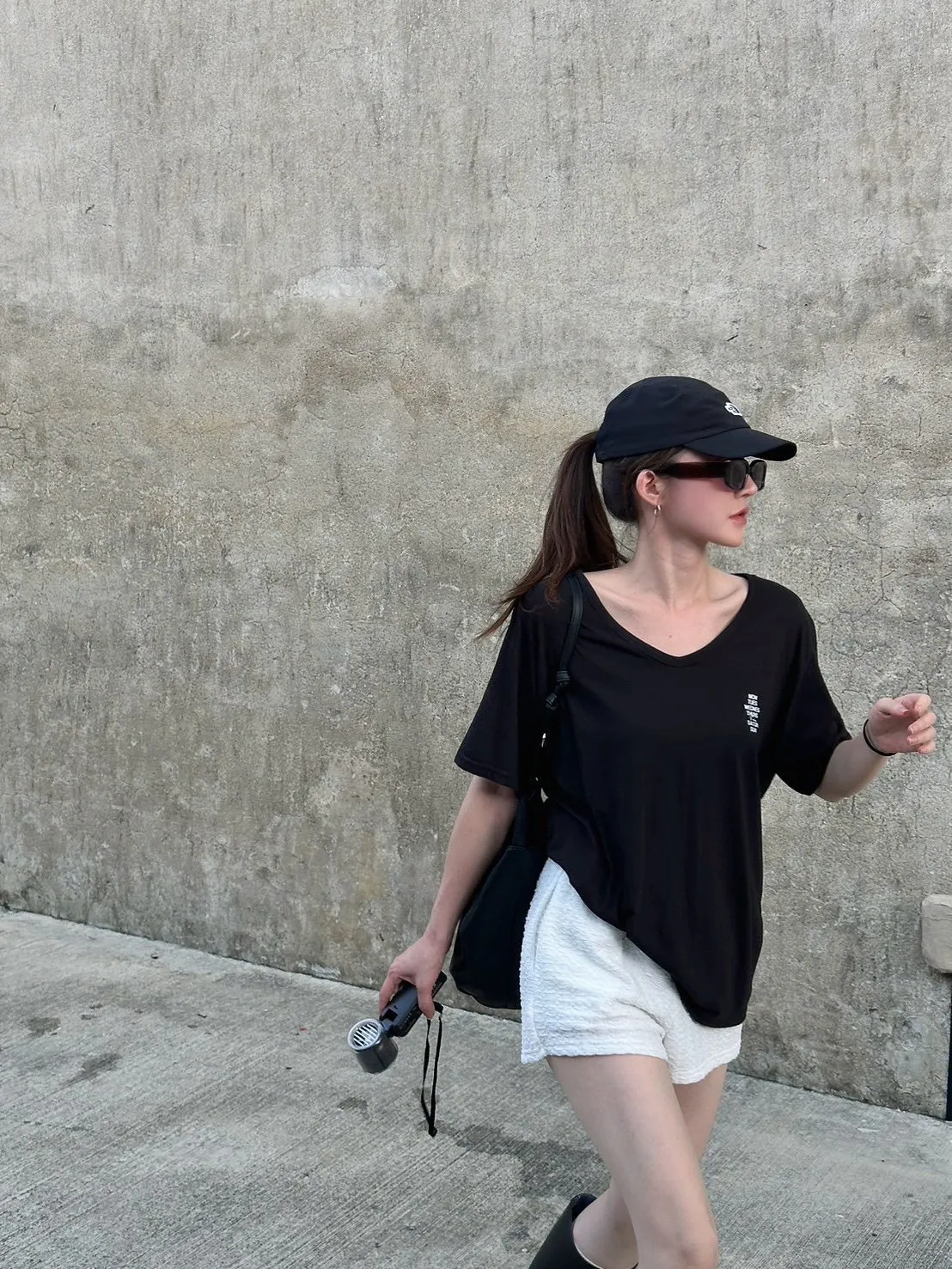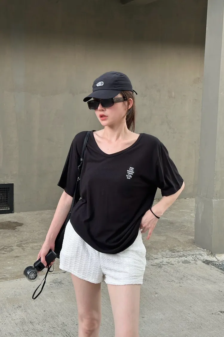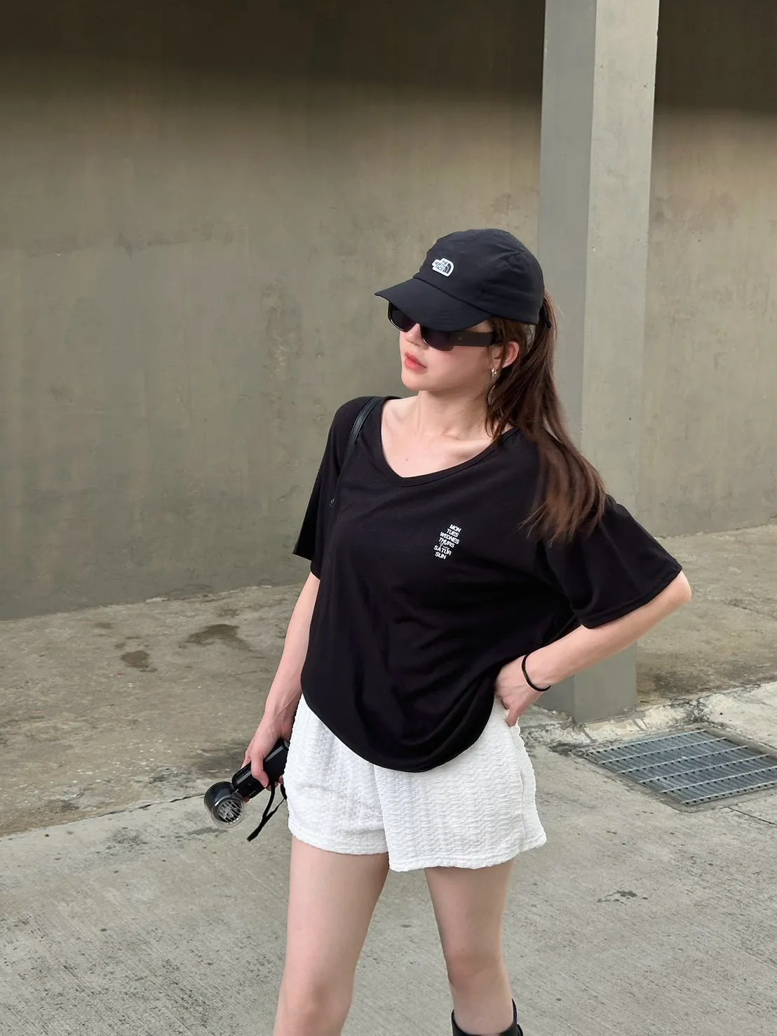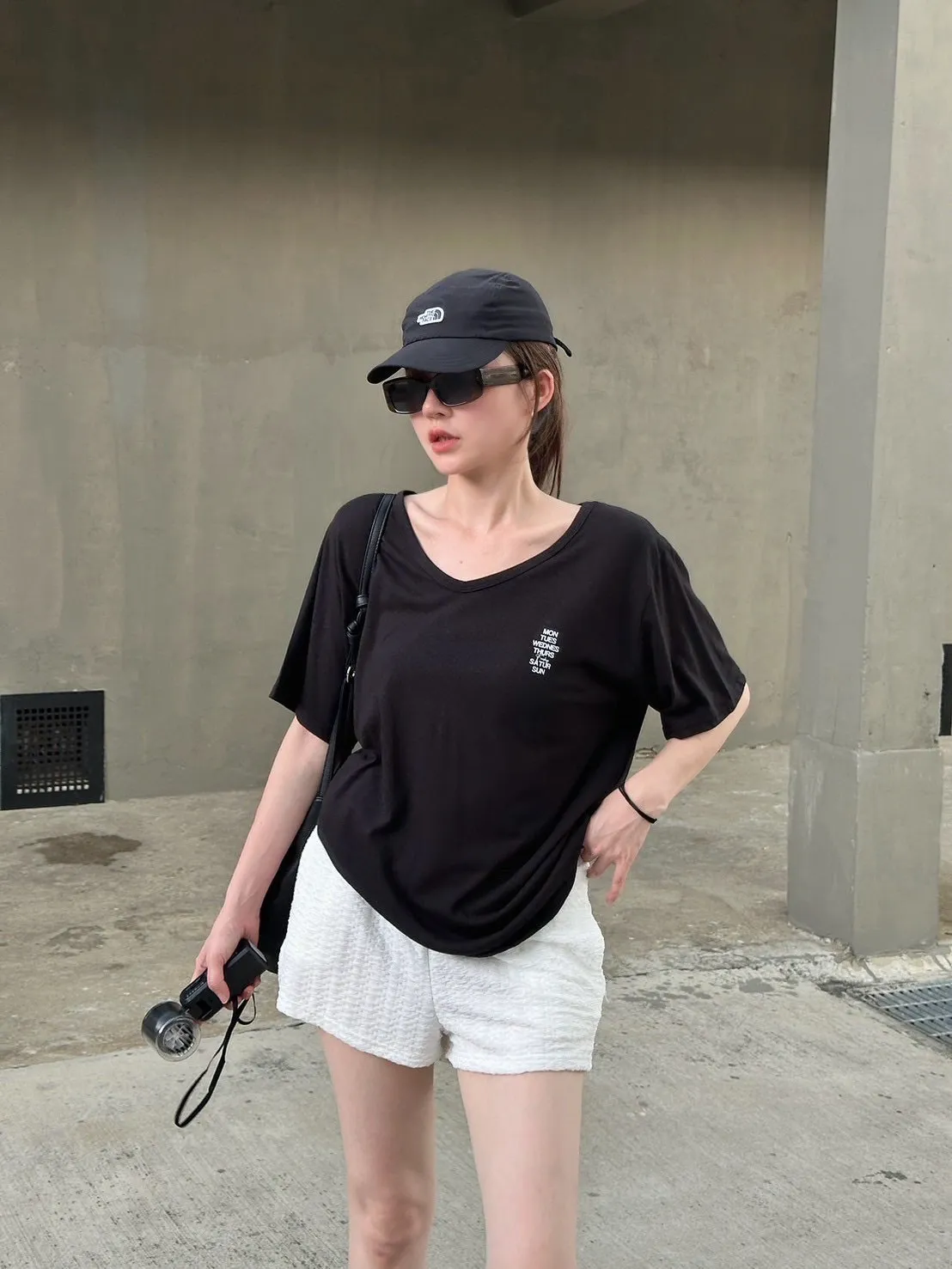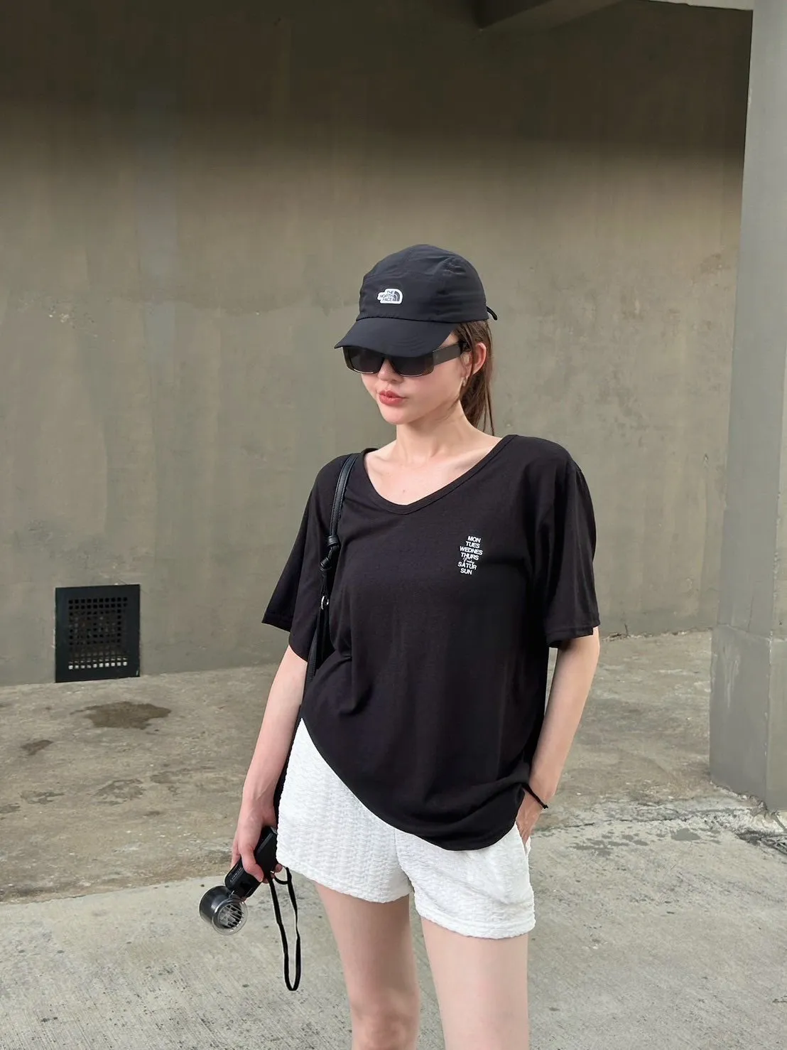 KOREA 黑色 自留主推!星期竹節棉V領tee