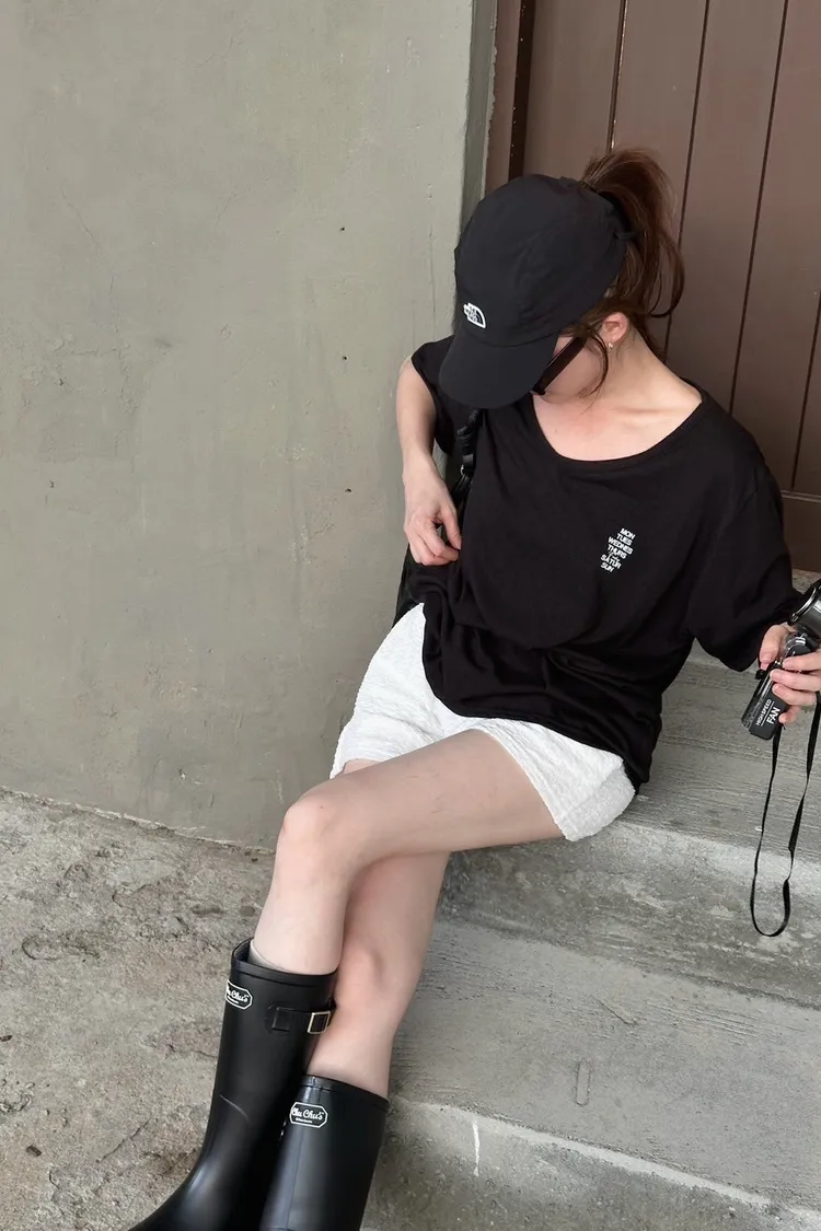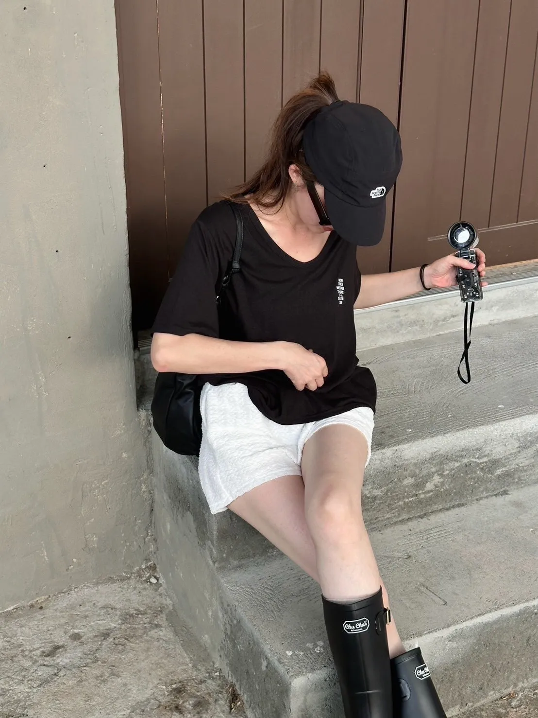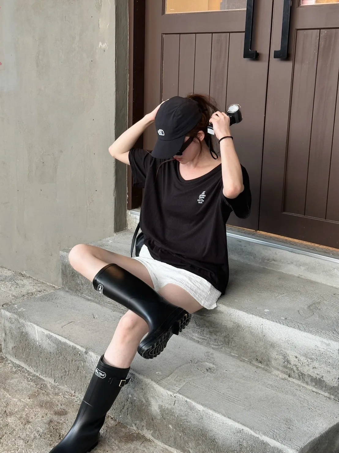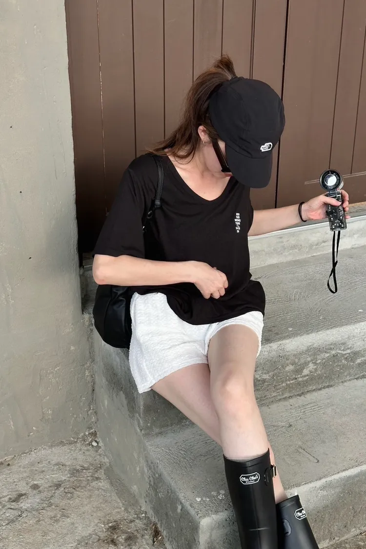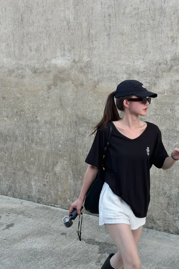 KOREA 黑色 自留主推!星期竹節棉V領tee