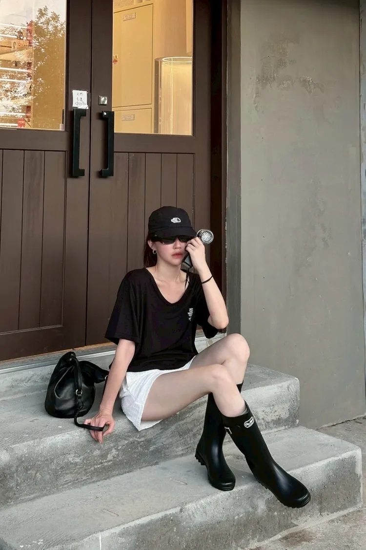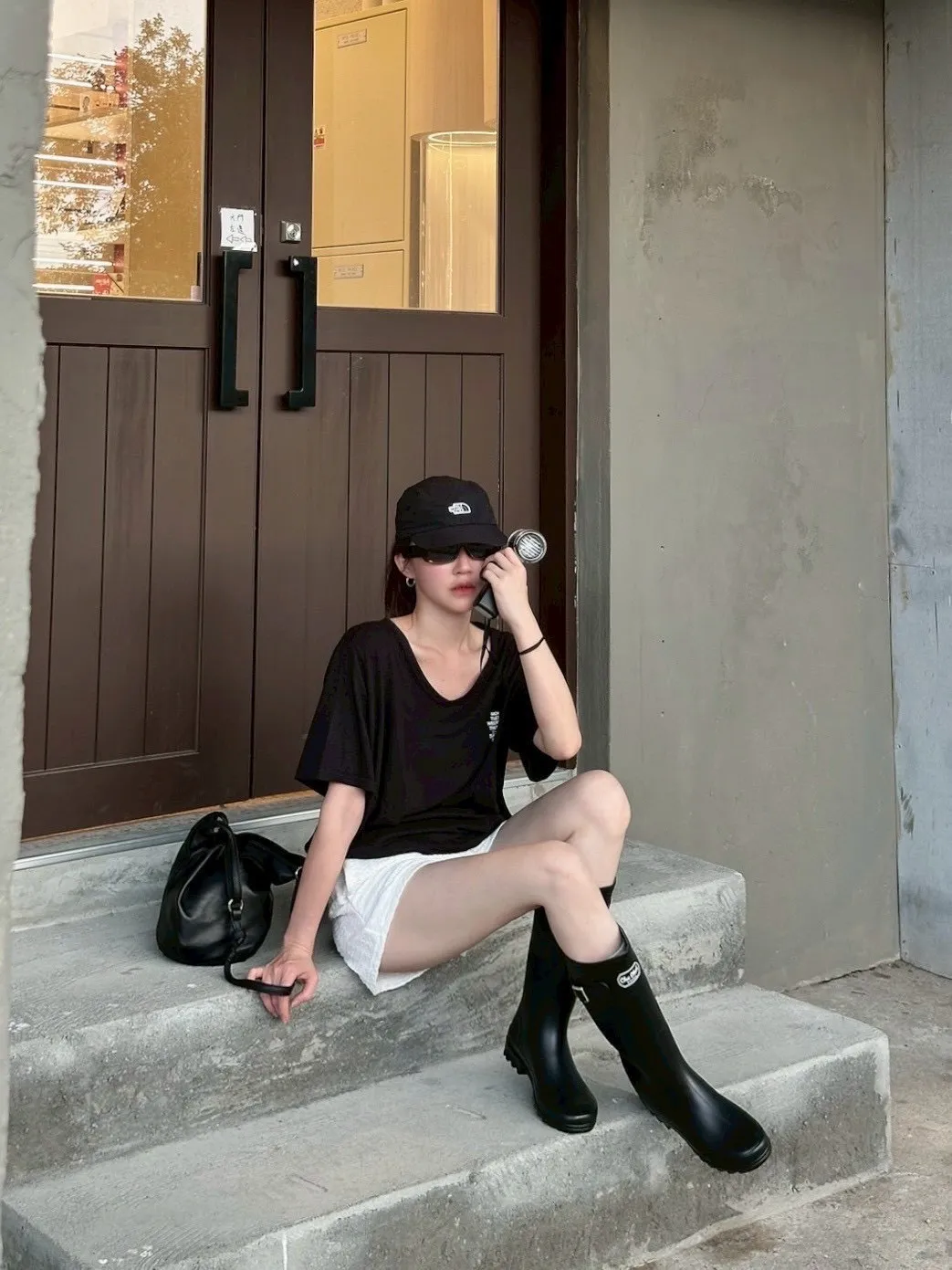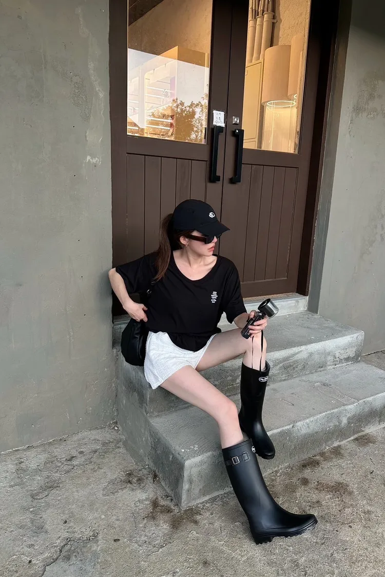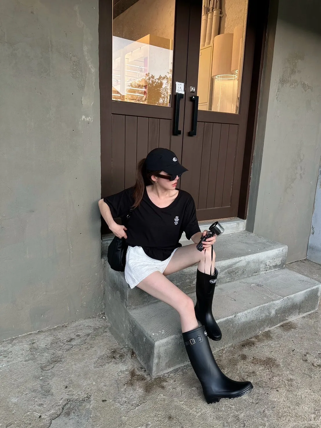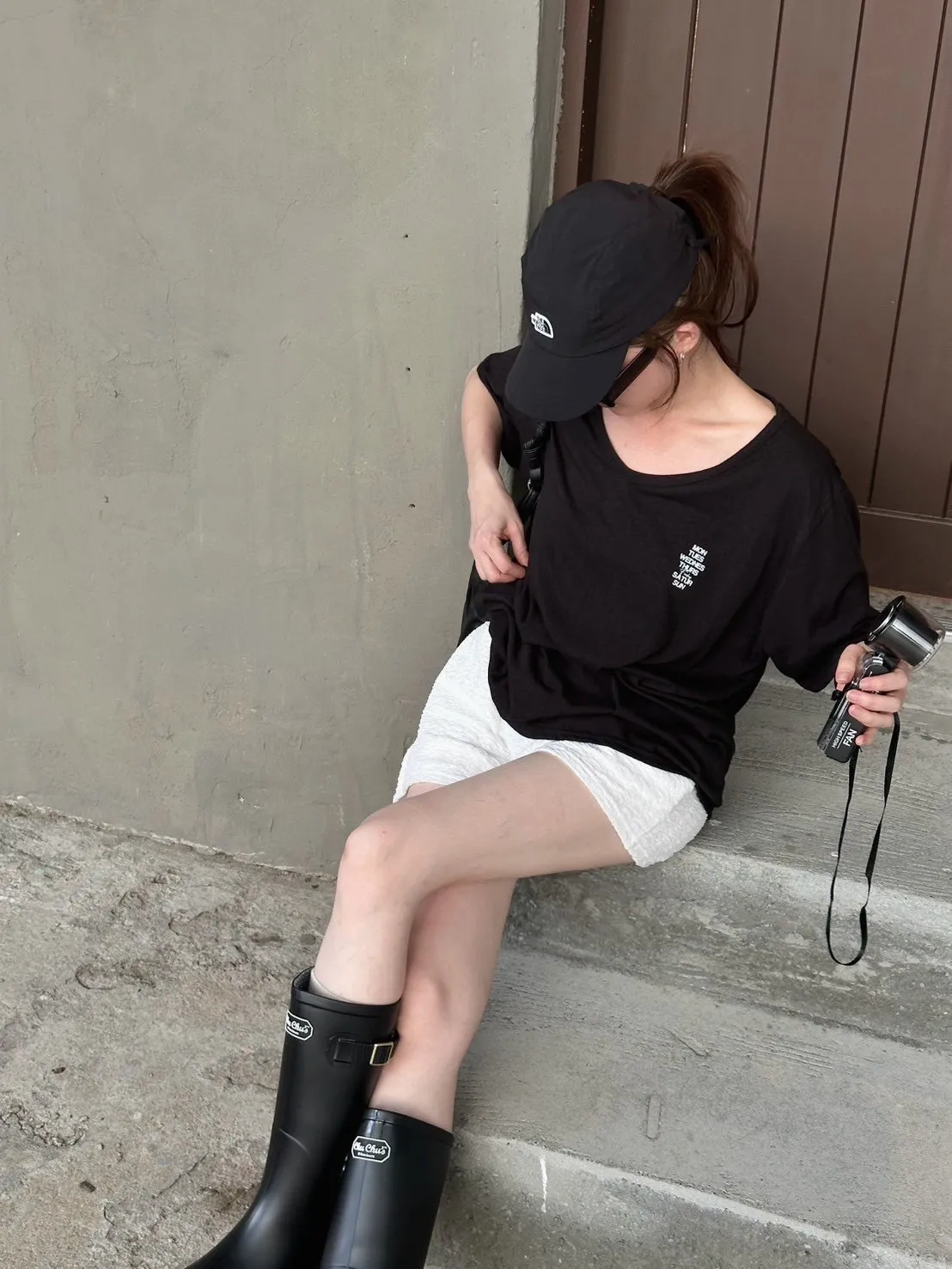 KOREA 黑色 自留主推!星期竹節棉V領tee