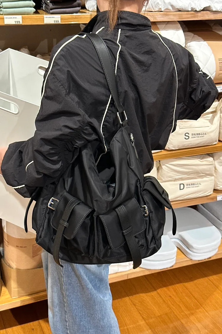 好帥!日常好搭配尼龍多口袋2way包 (長短揹帶)