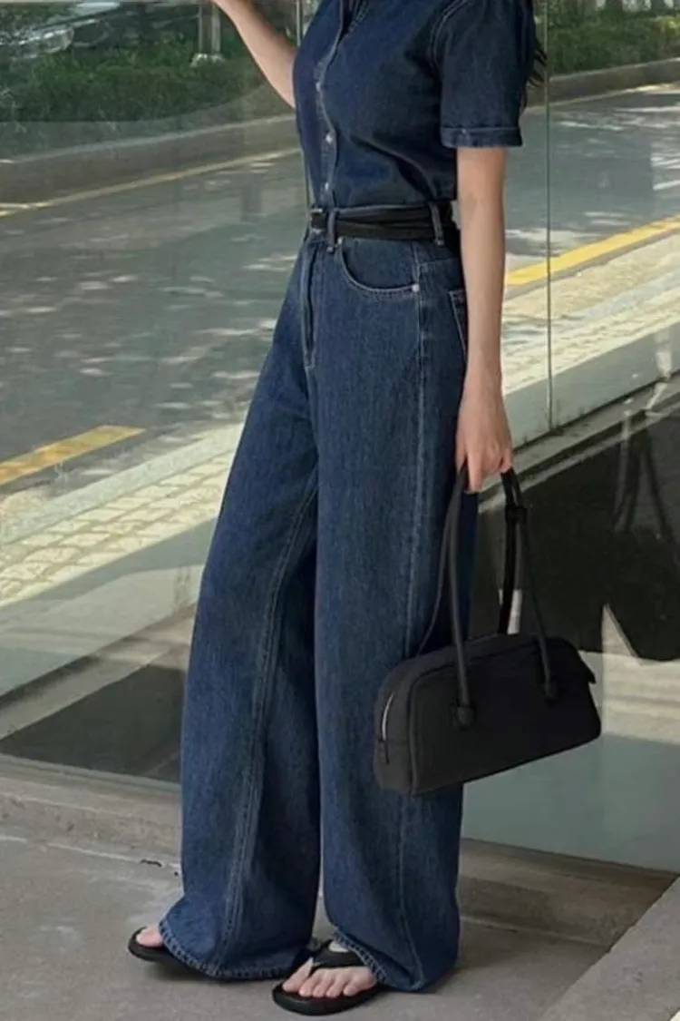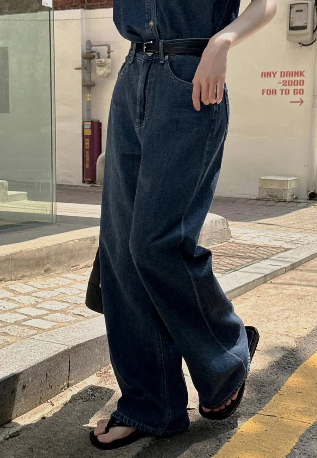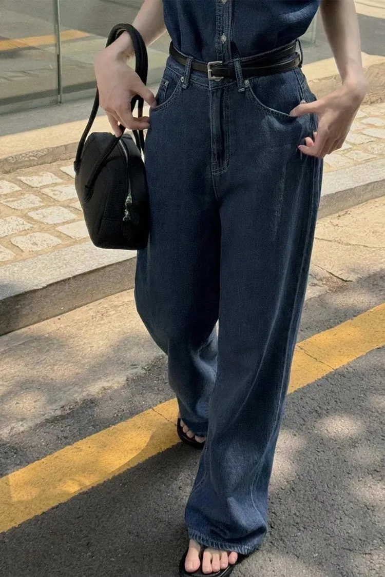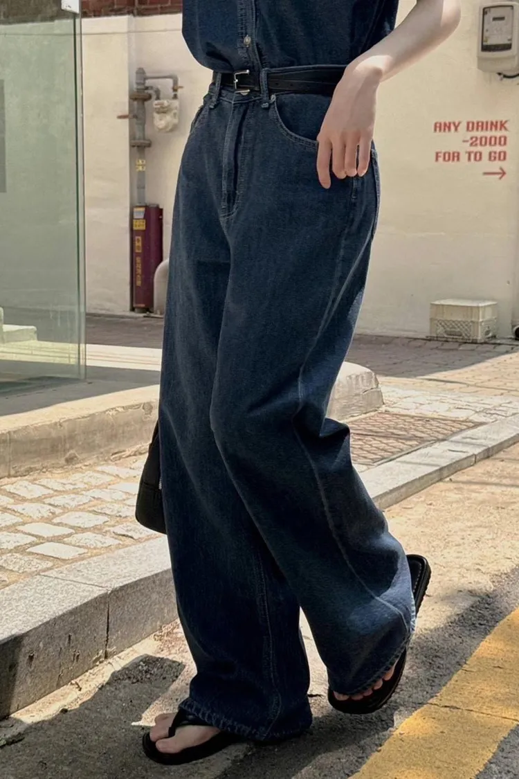 Korea 深藍色 大長腿直筒牛仔褲