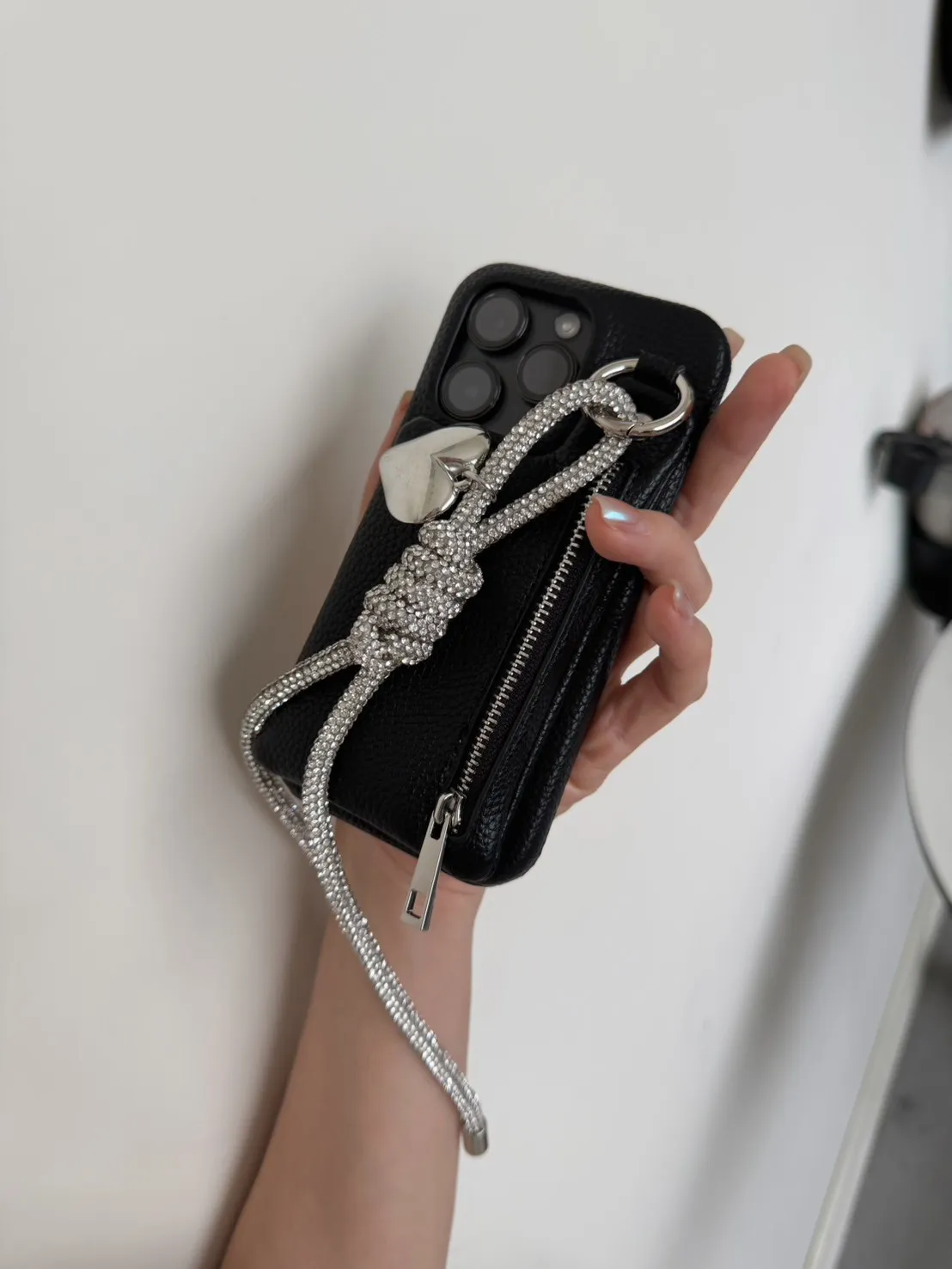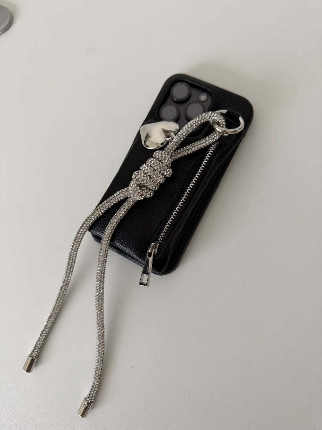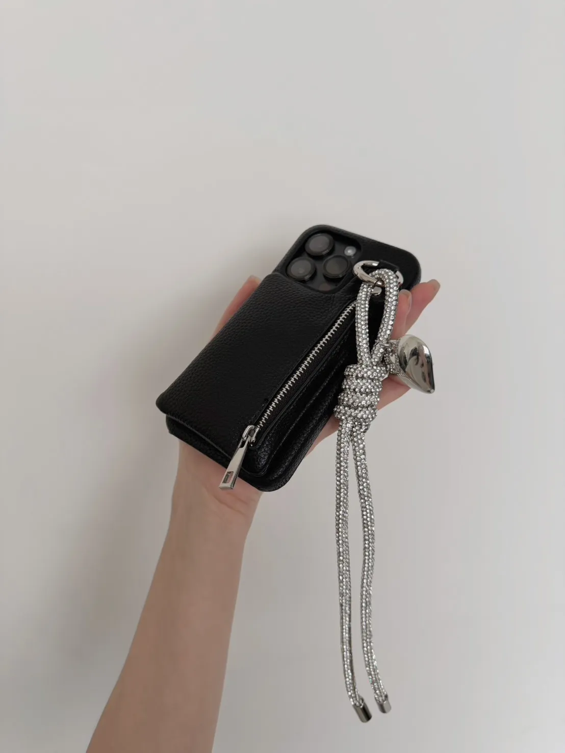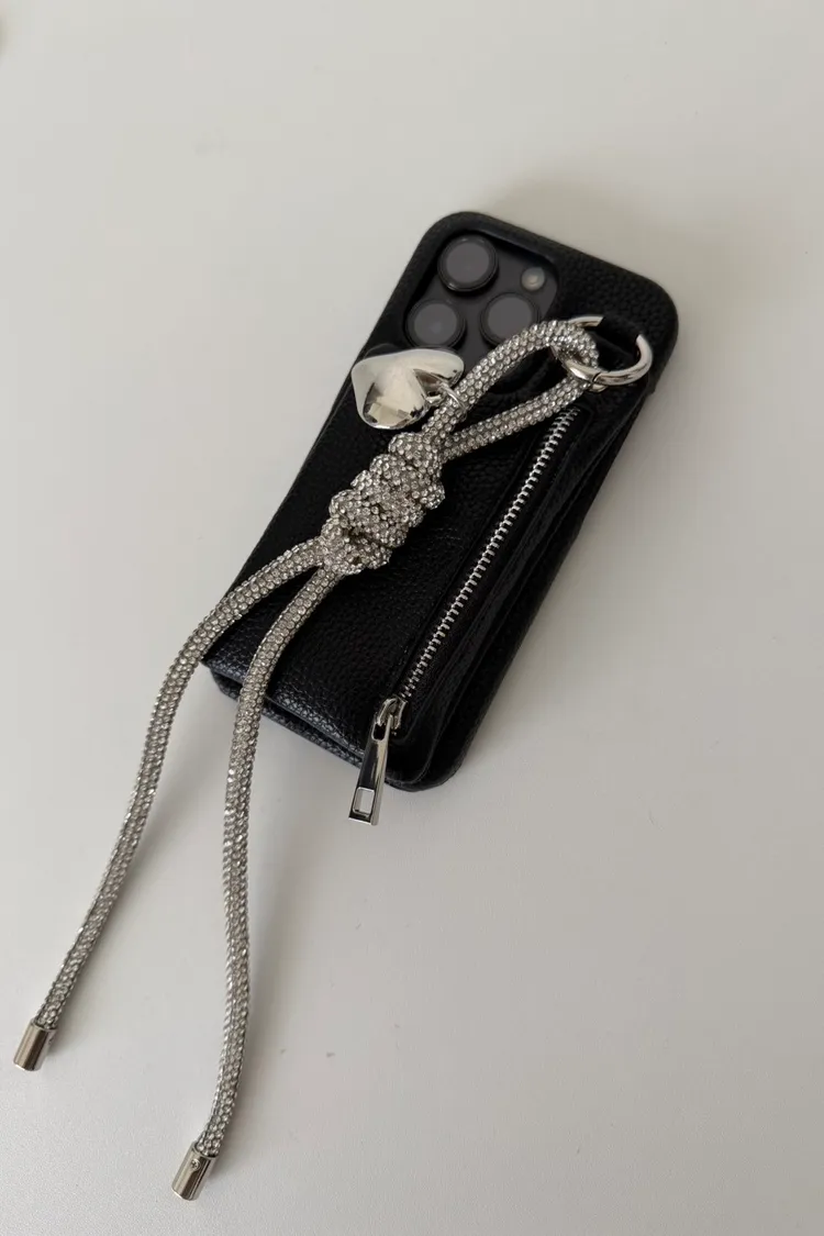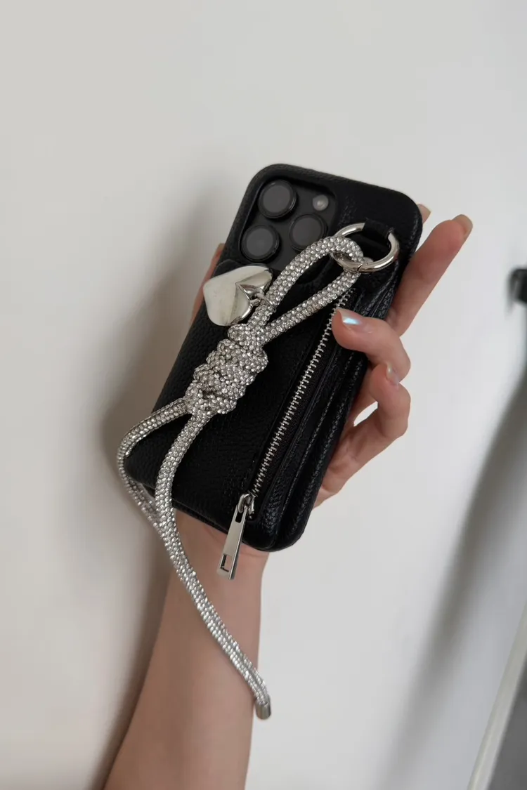 愛心吊飾拉鏈皮革 手機殼