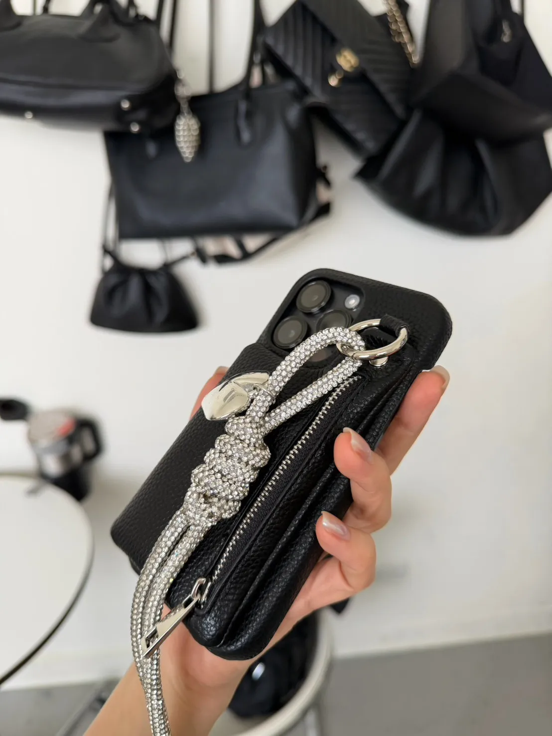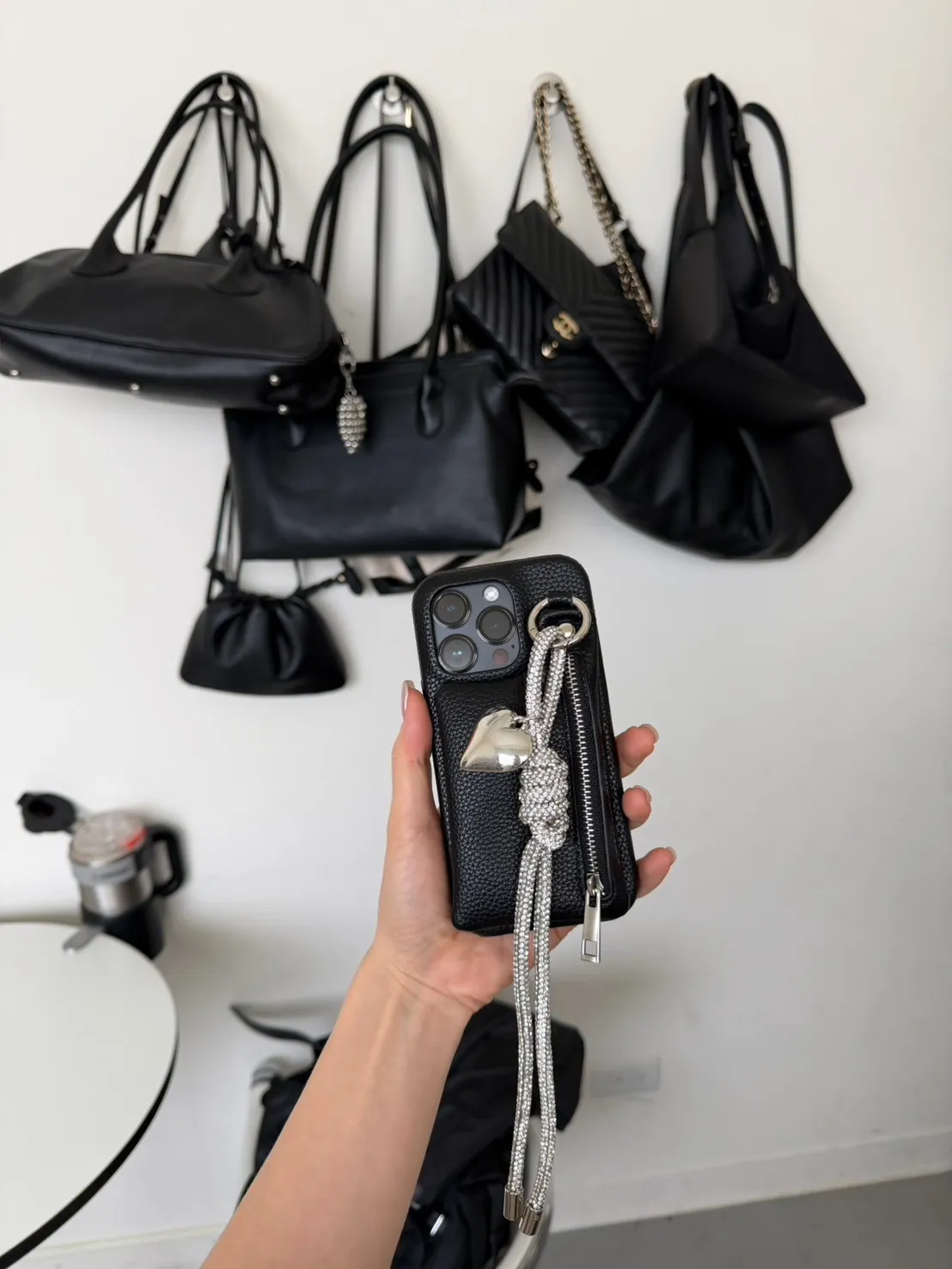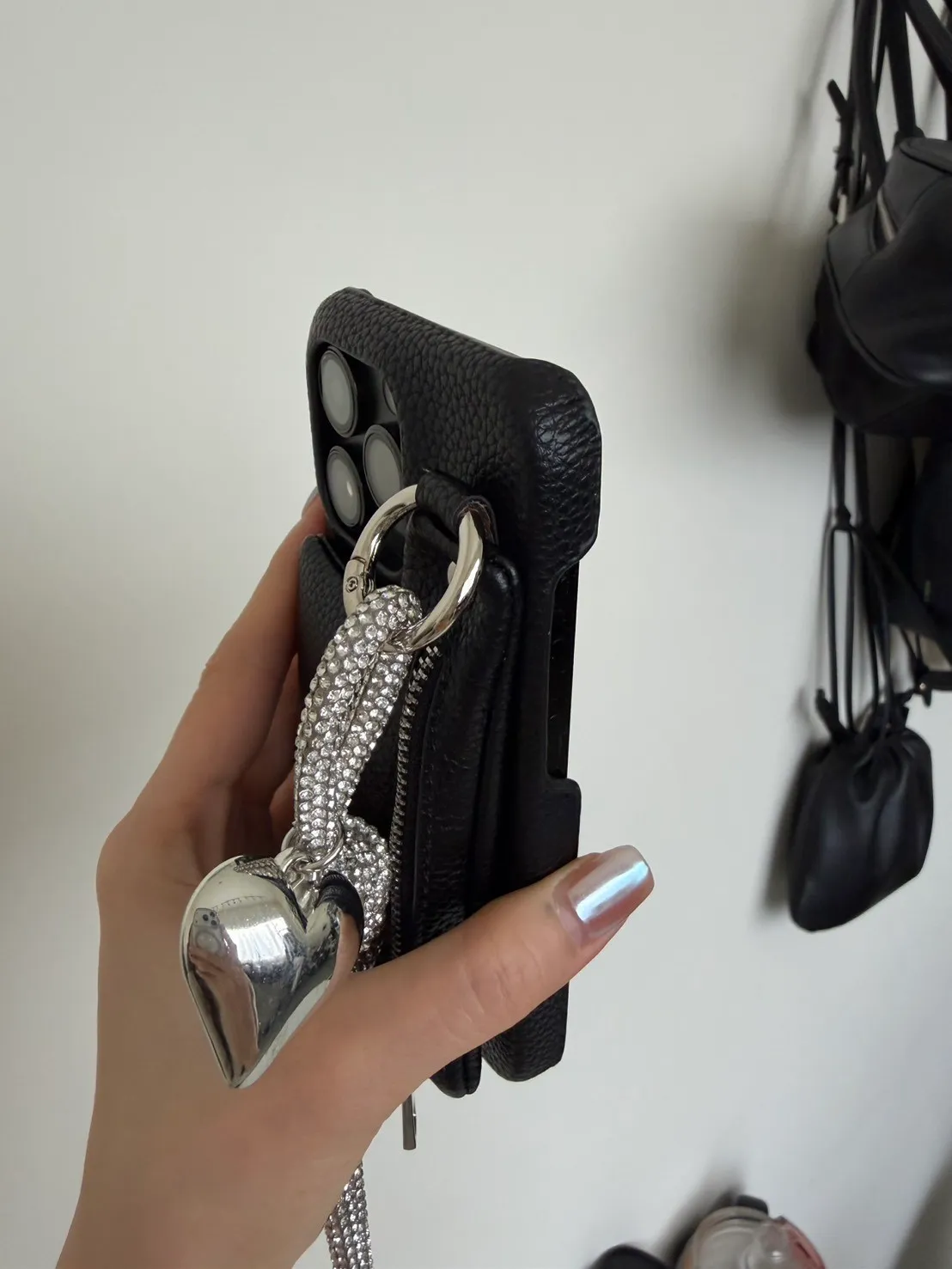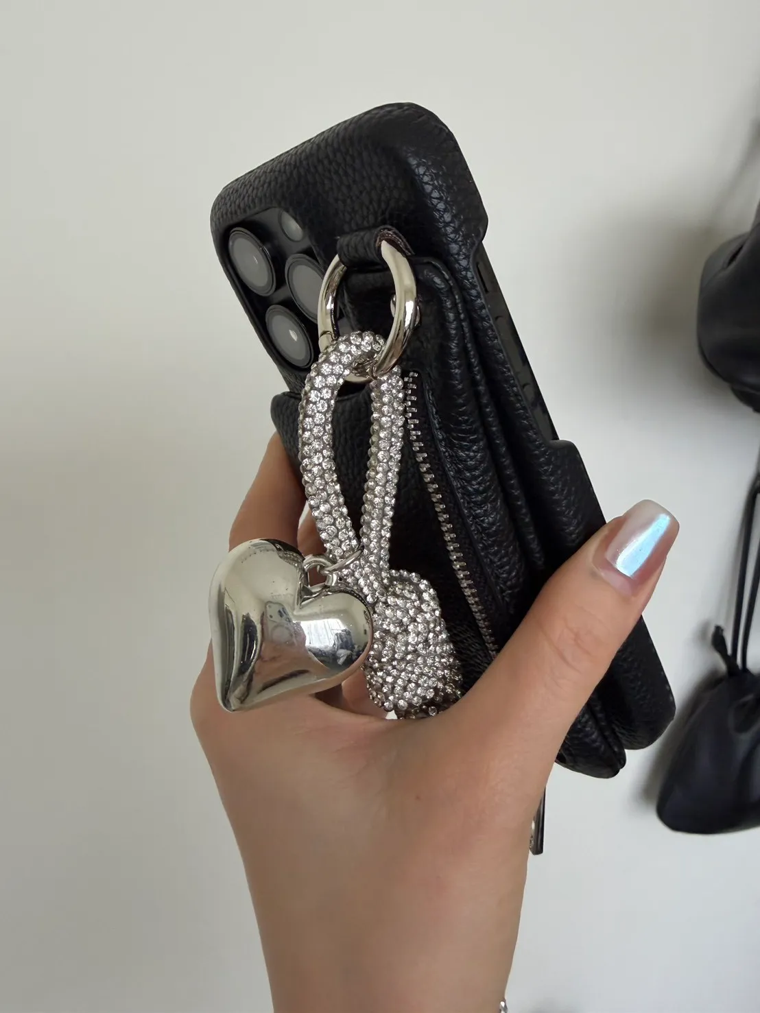 愛心吊飾拉鏈皮革 手機殼