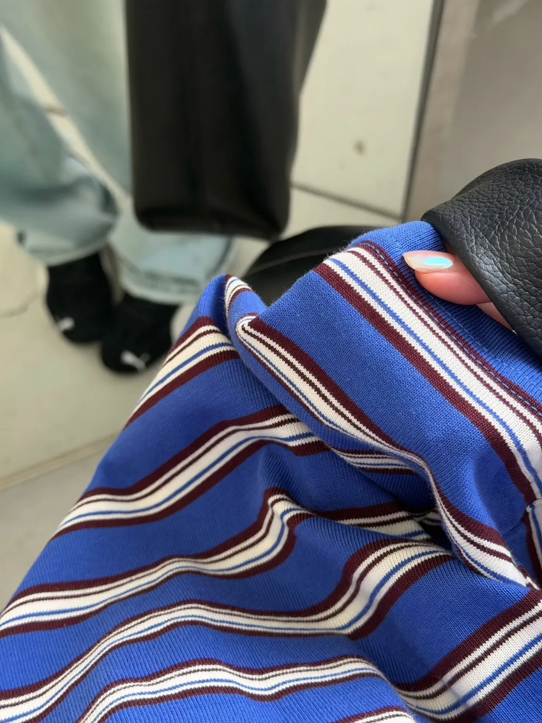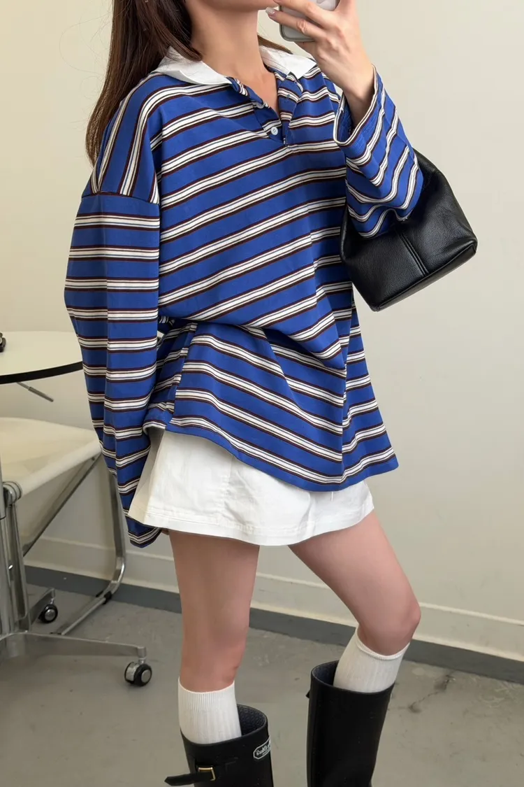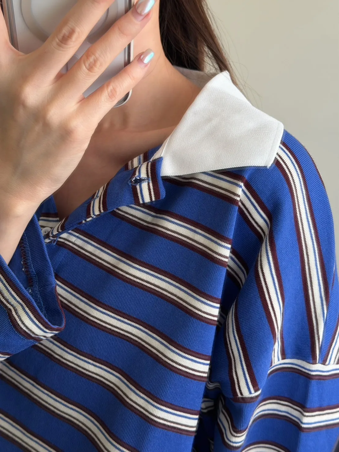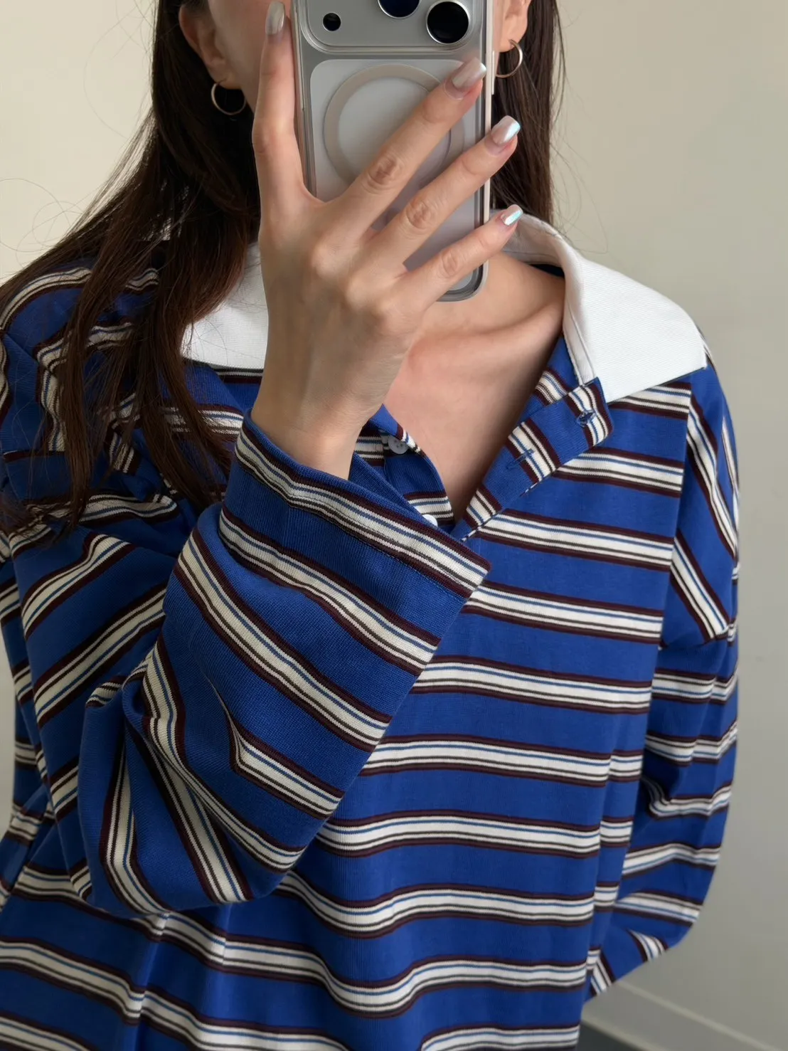 藍咖配色 本次最愛!橫條POLO寬鬆tee