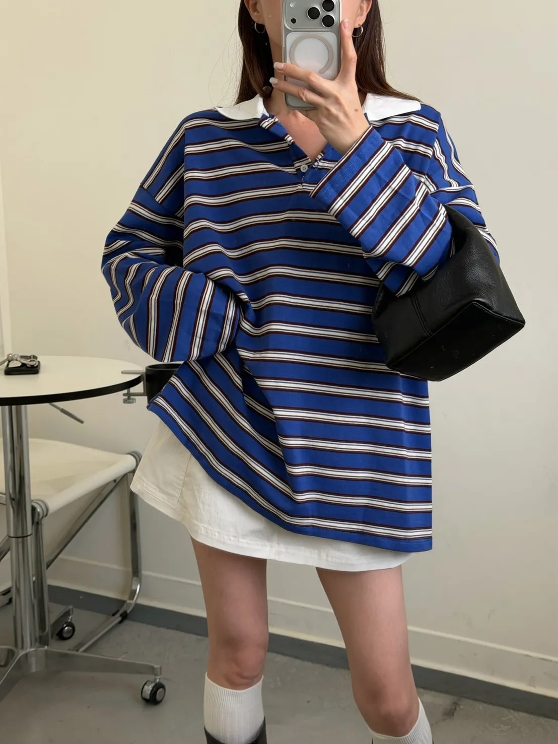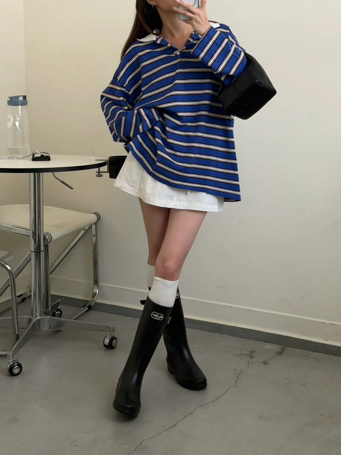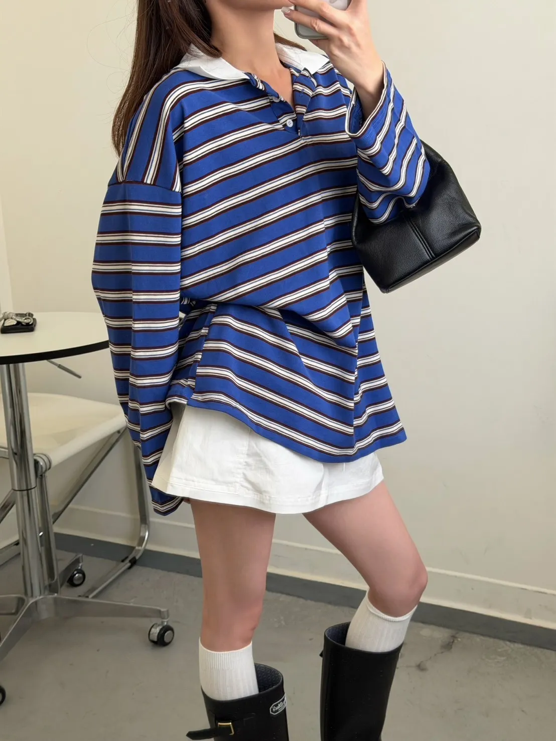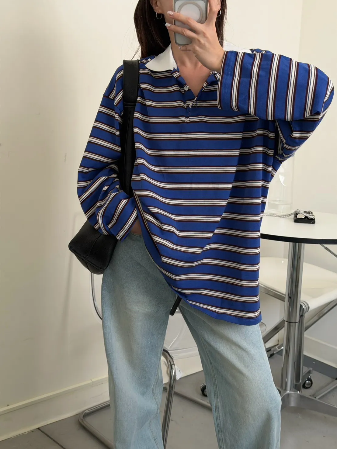 藍咖配色 本次最愛!橫條POLO寬鬆tee