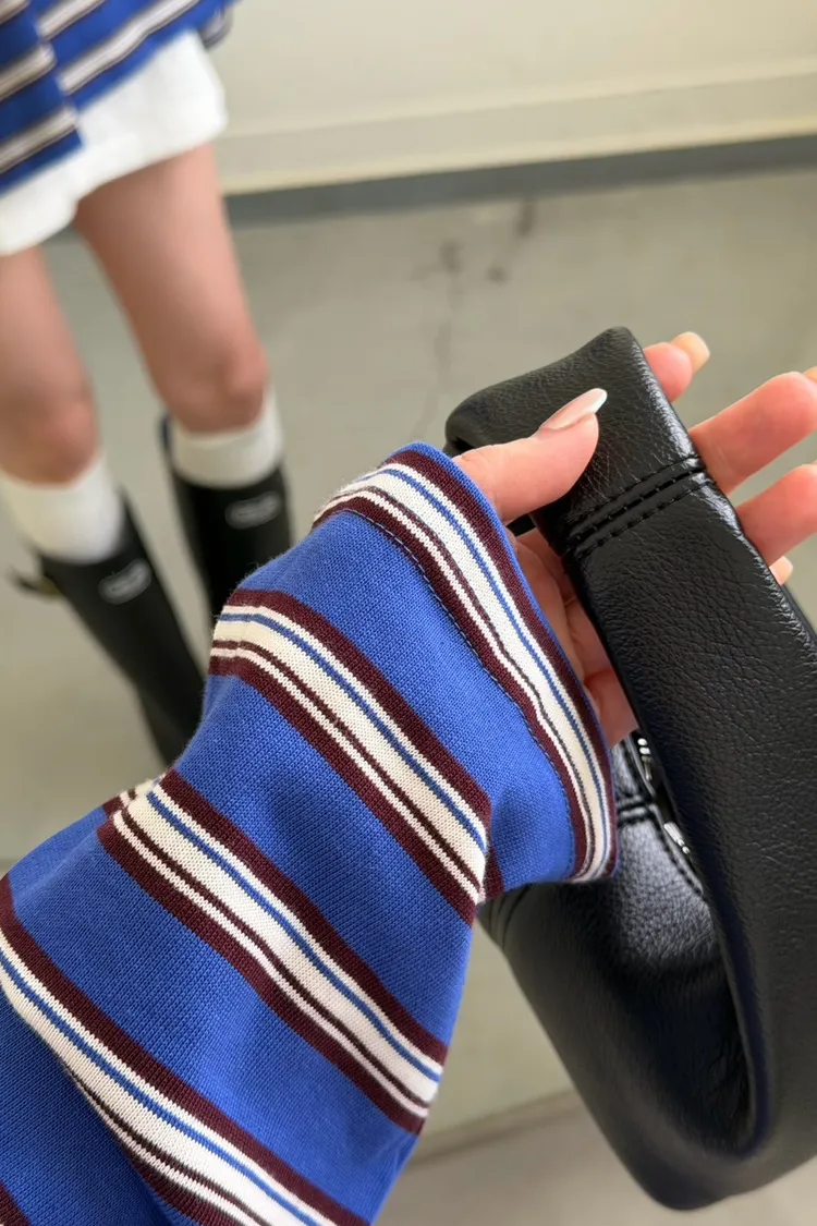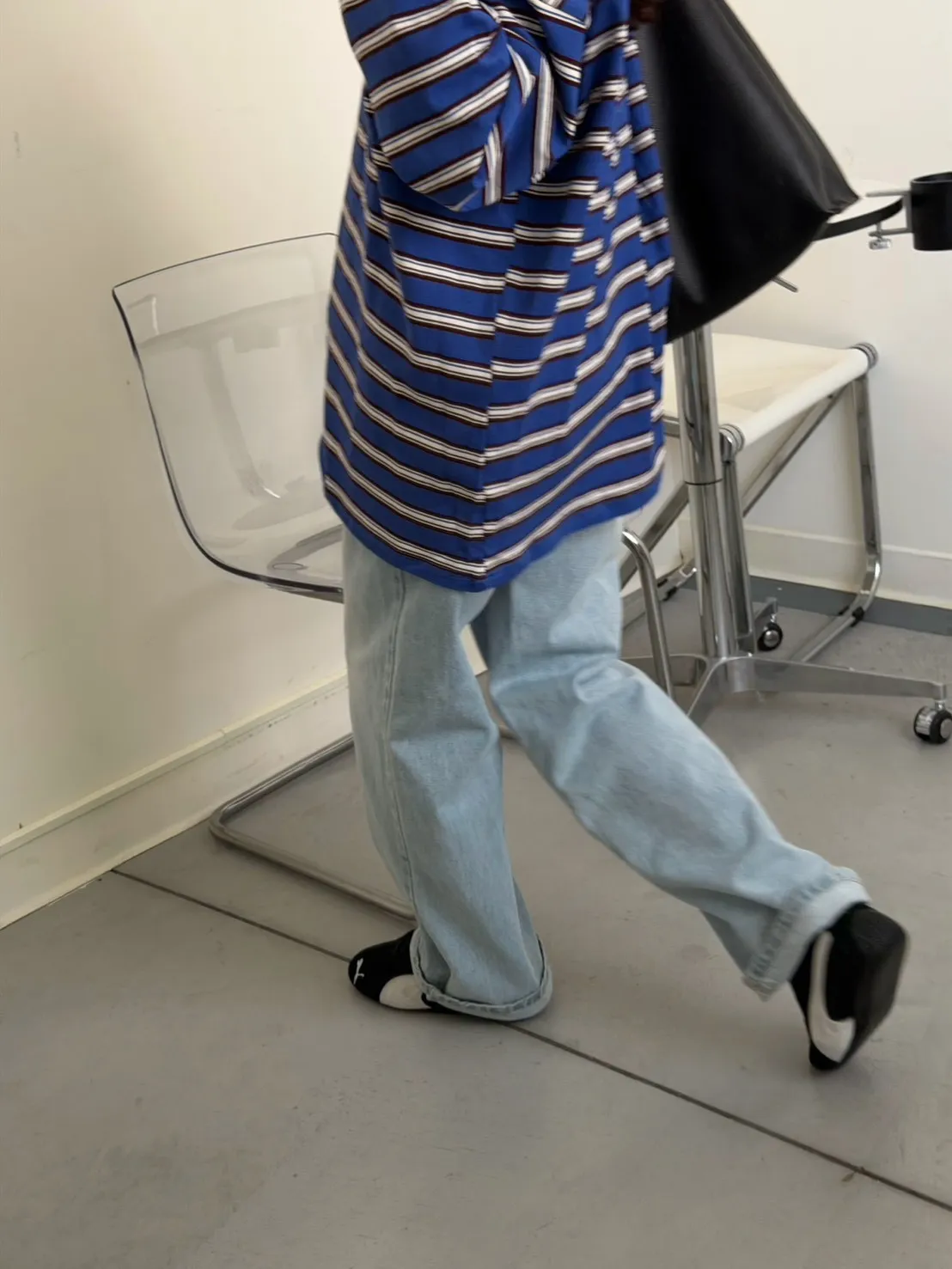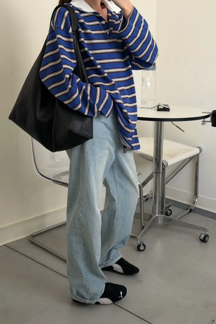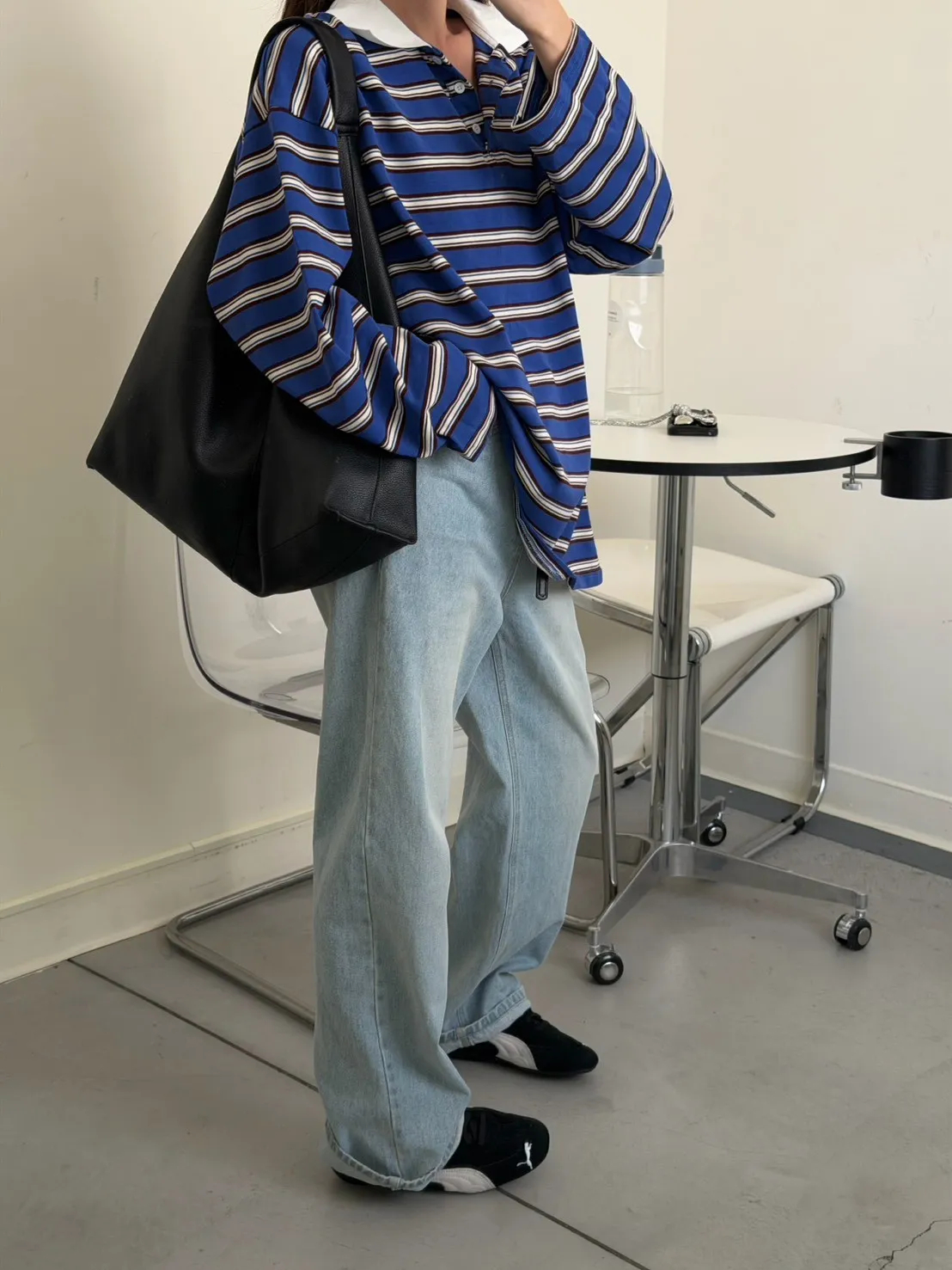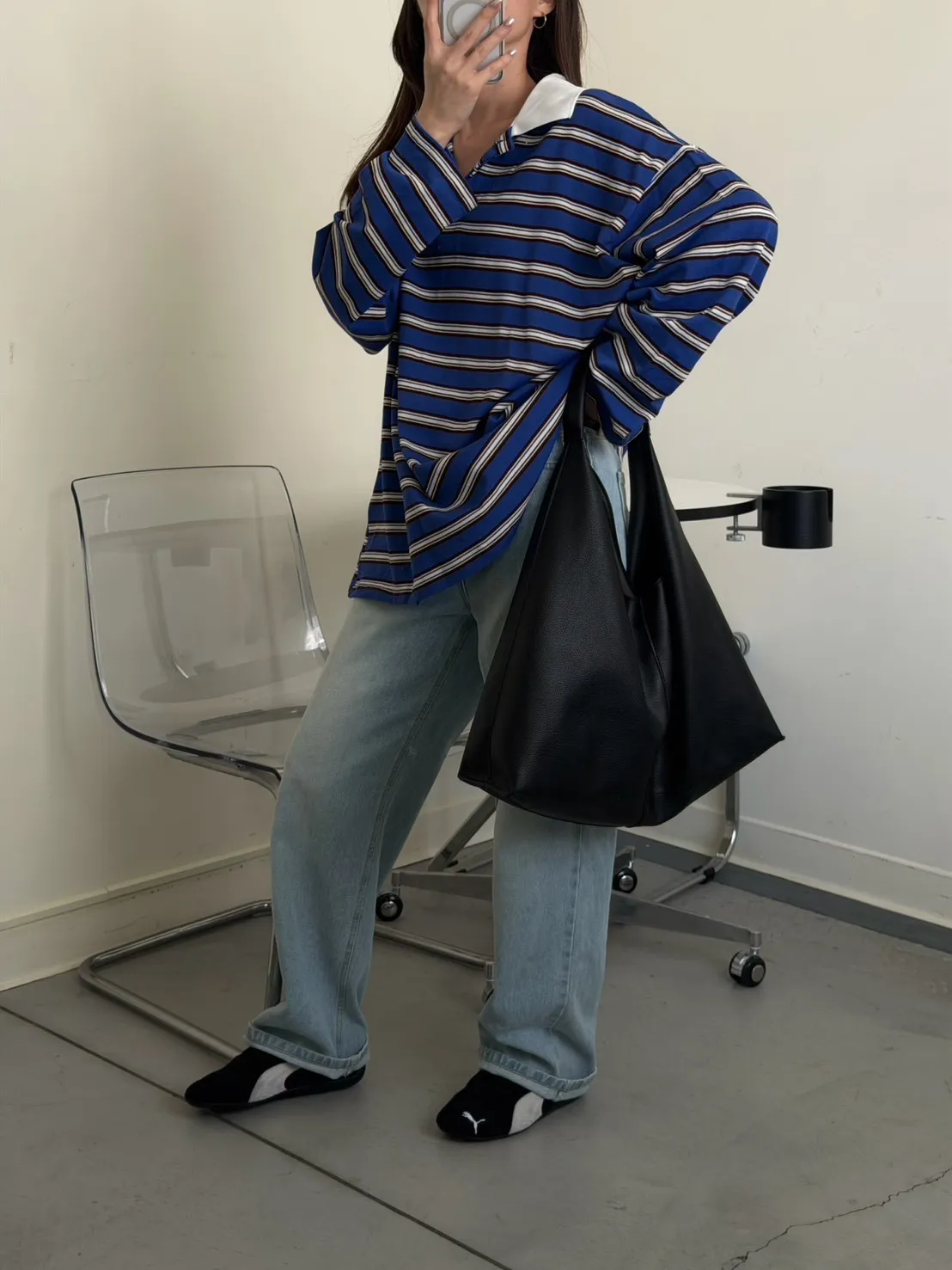 藍咖配色 本次最愛!橫條POLO寬鬆tee