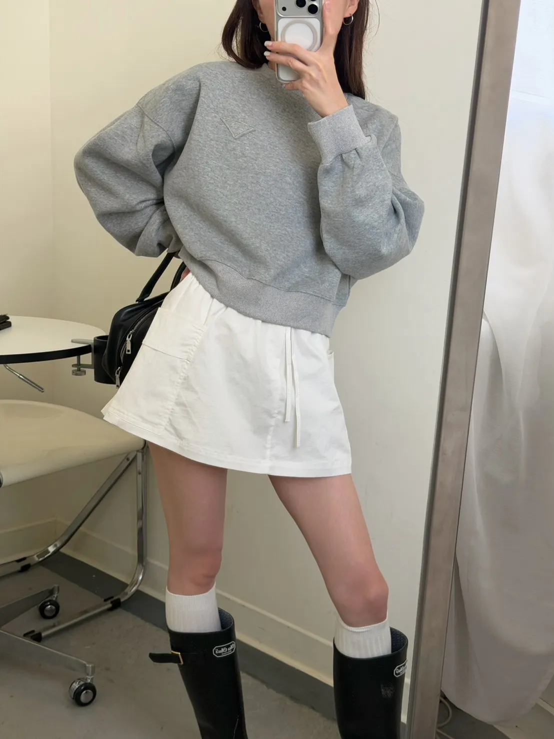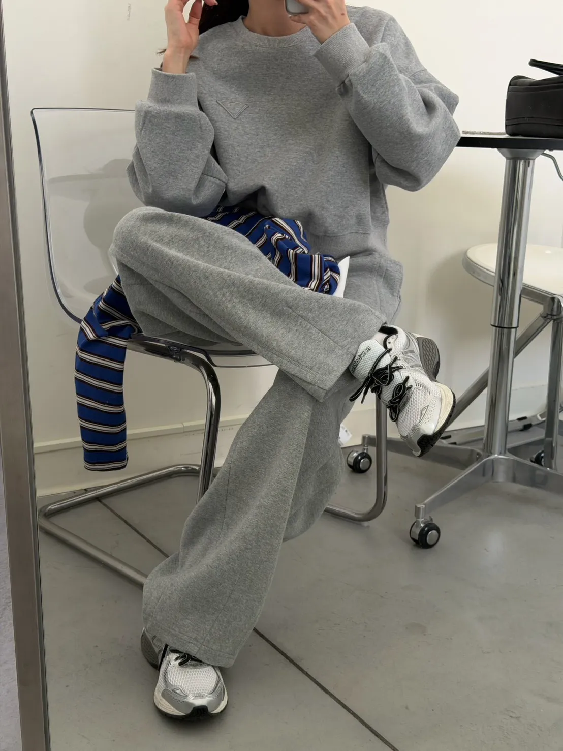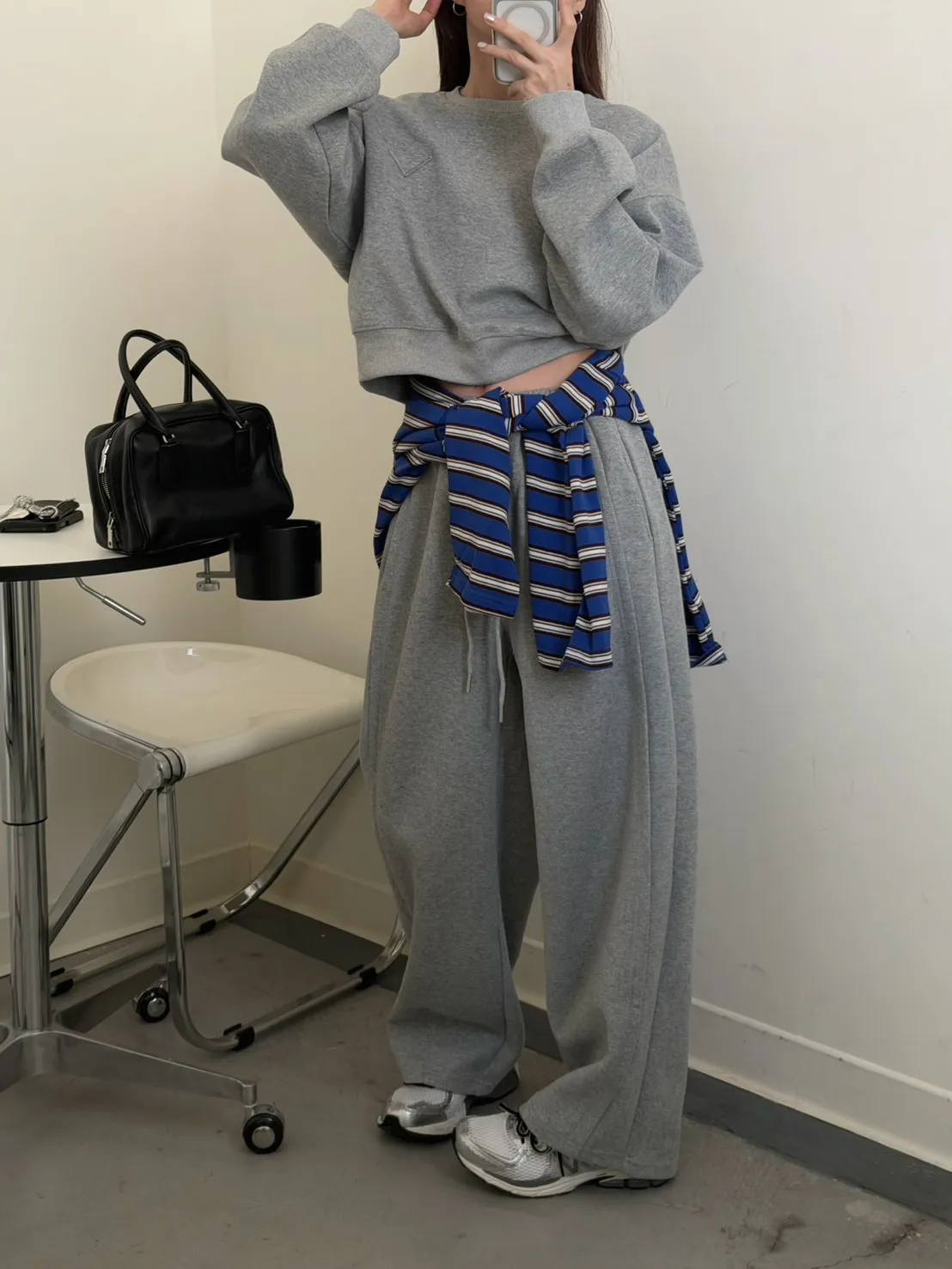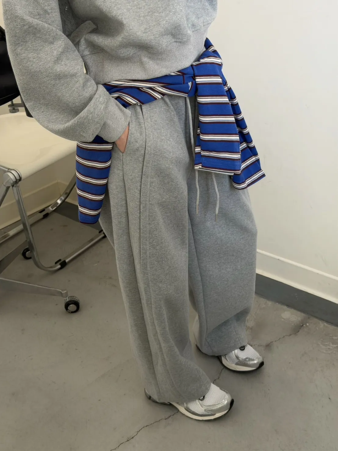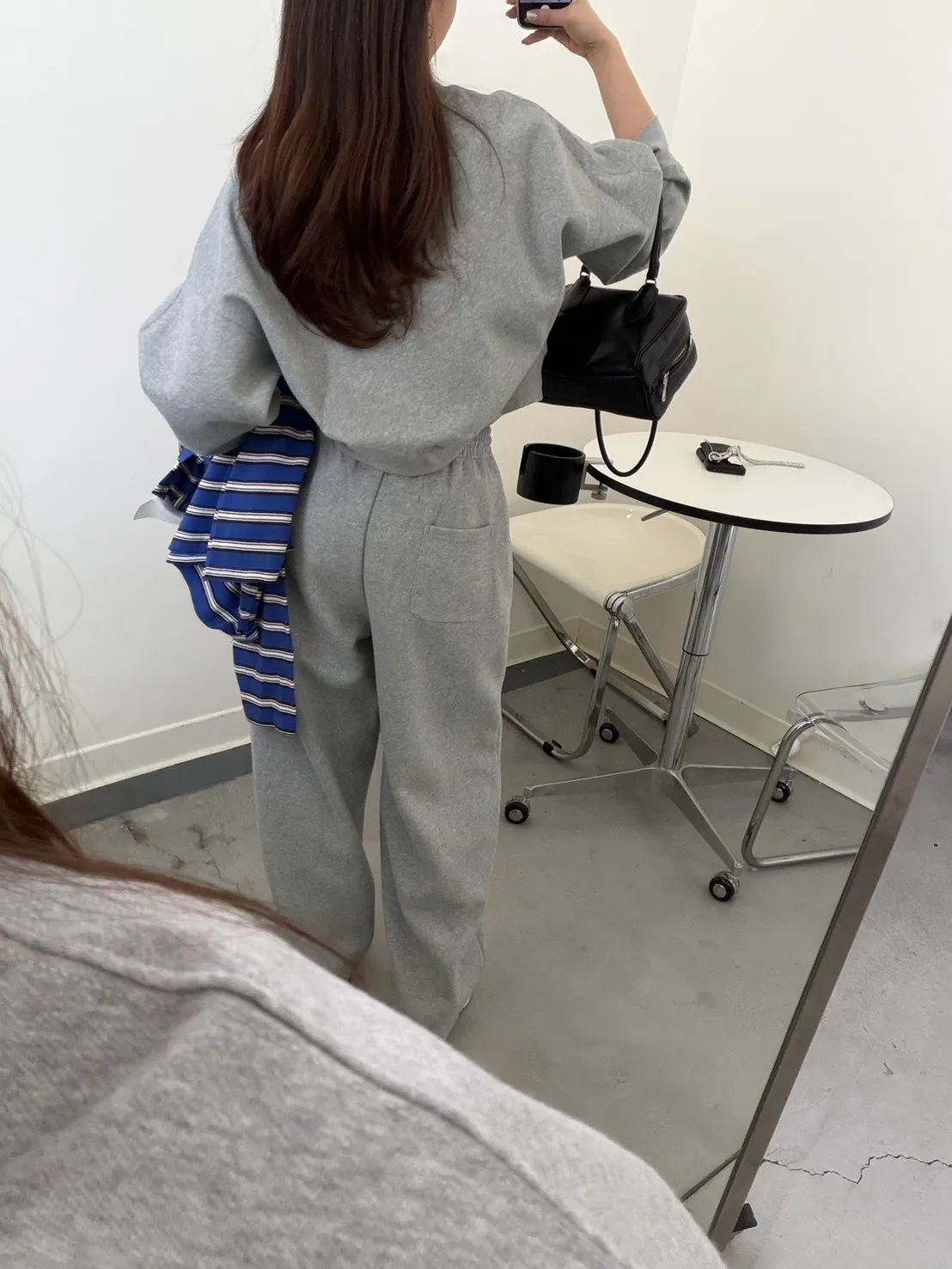 灰色 落肩澎袖高磅tee+壓線棉褲SET