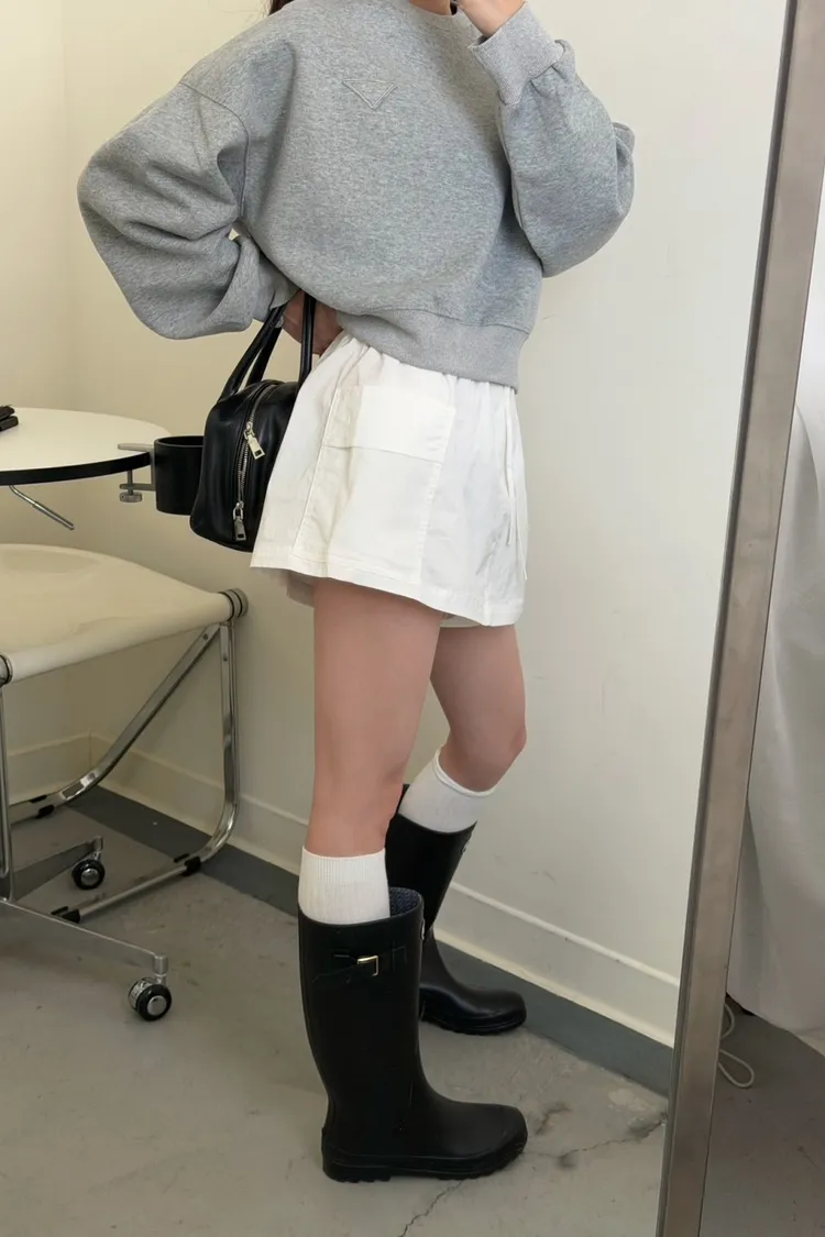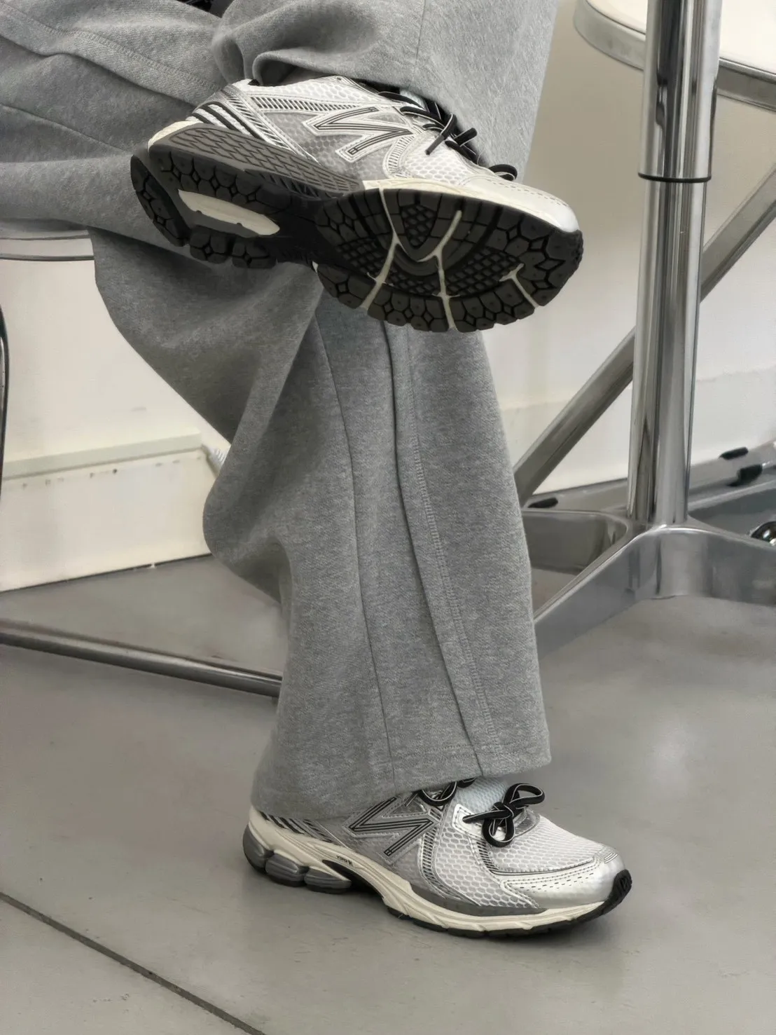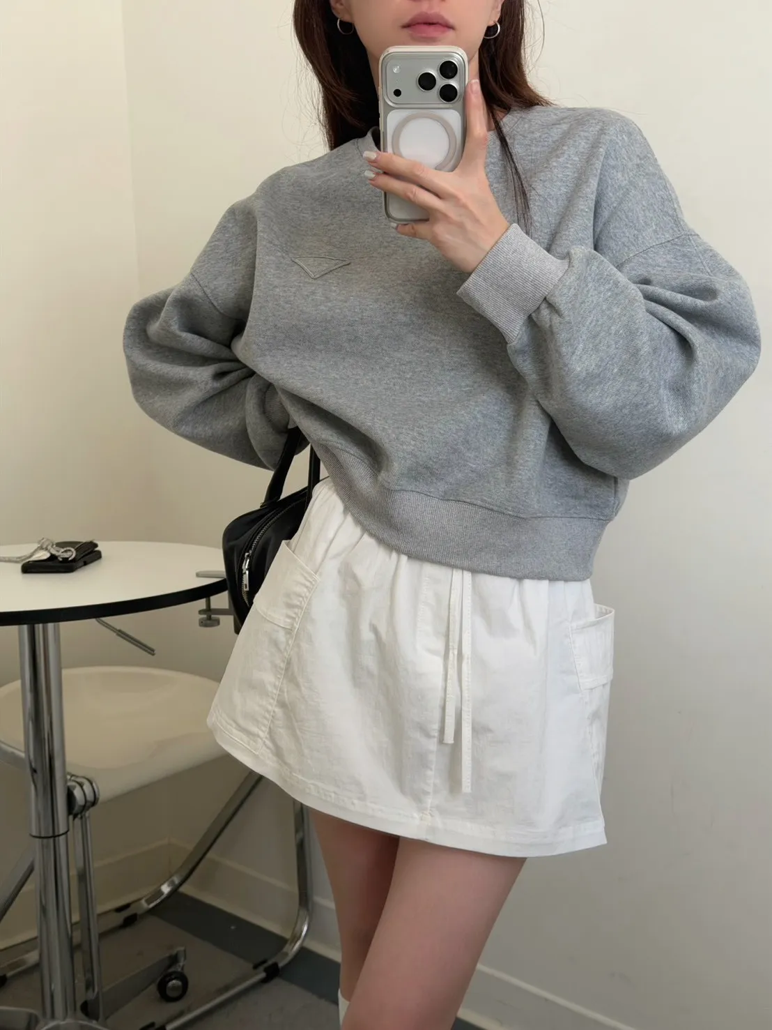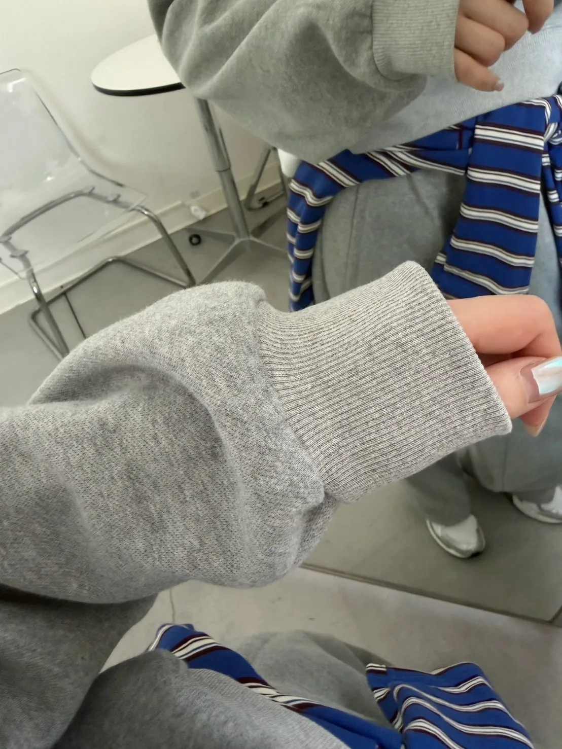 灰色 落肩澎袖高磅tee+壓線棉褲SET