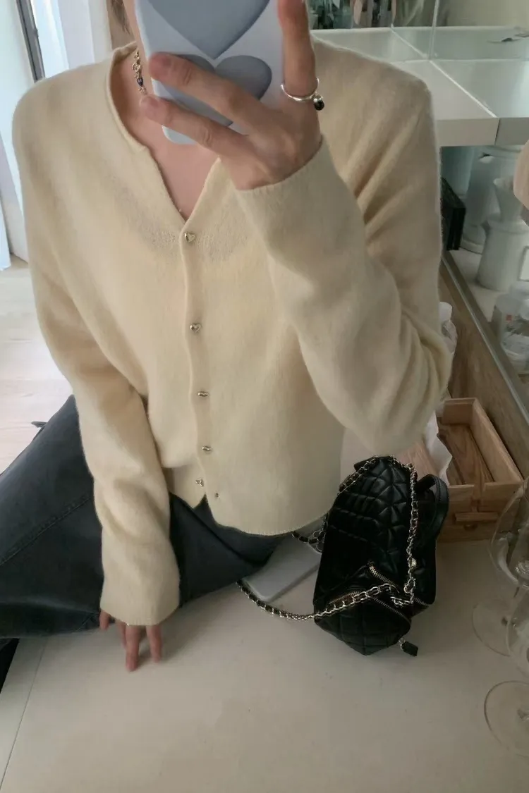 5色 100%羊毛愛心釦外套