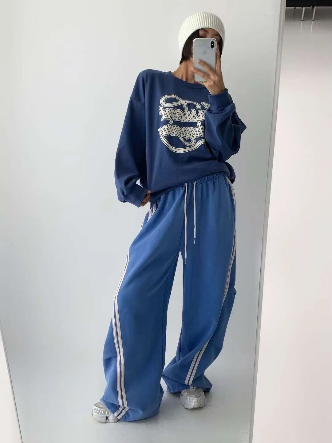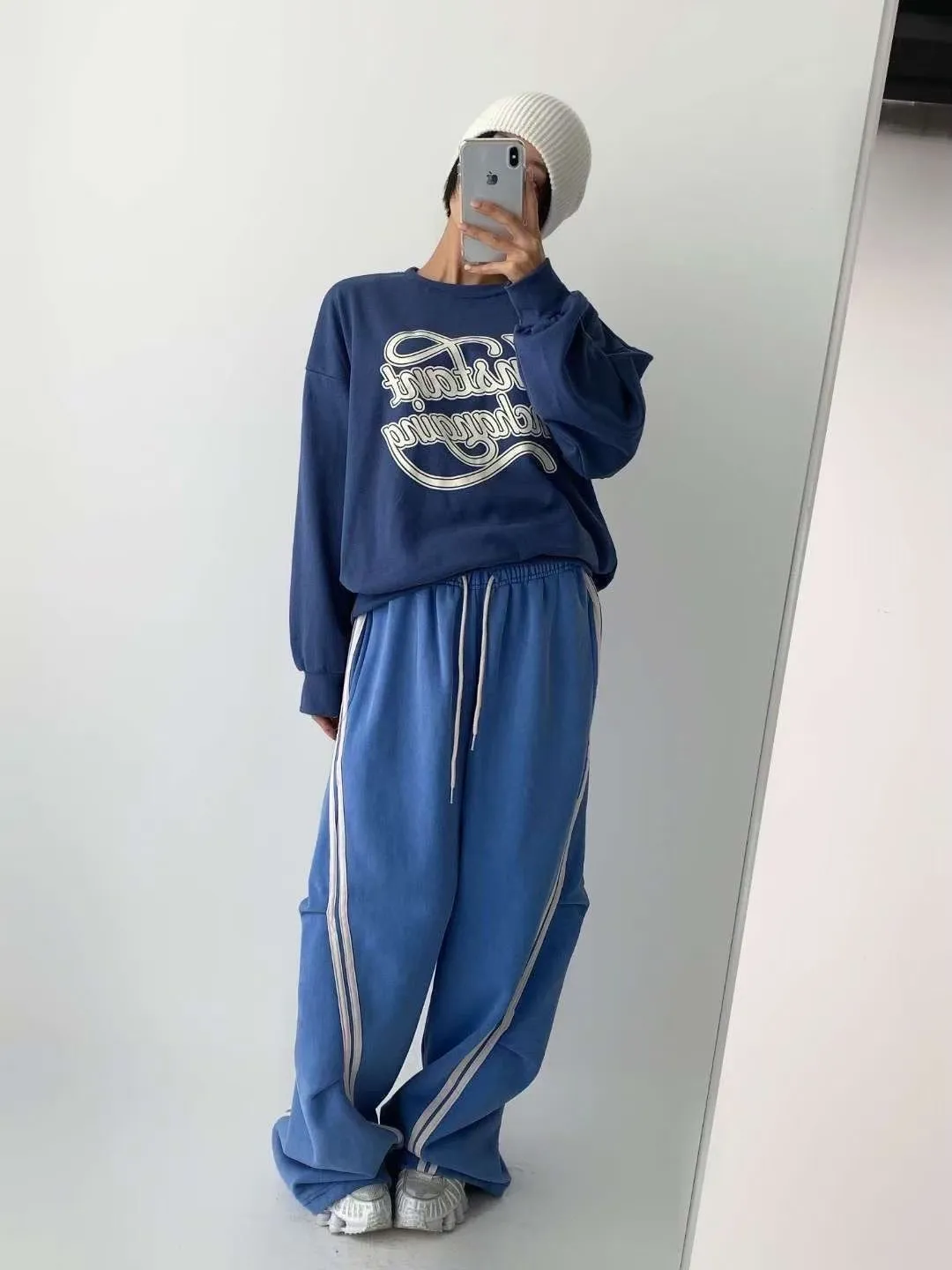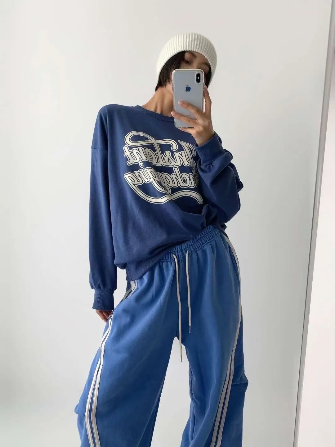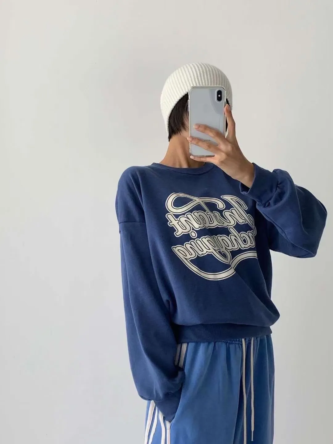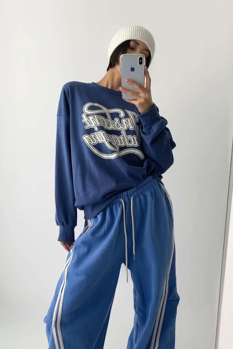 KOREA 藍色 彩帶字母棉tee