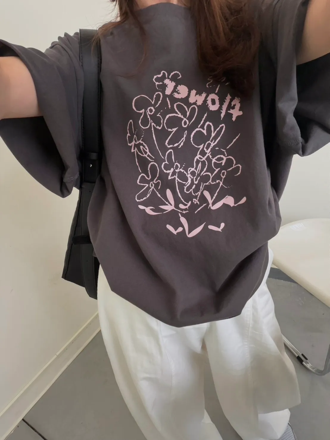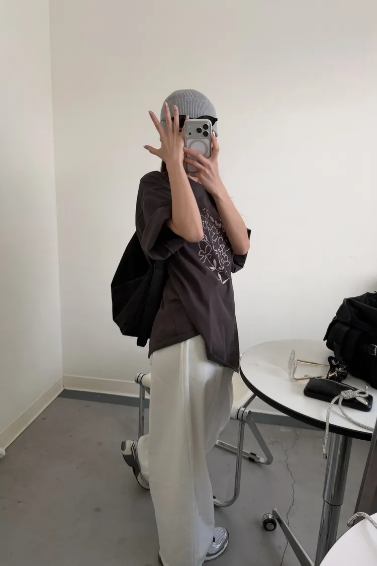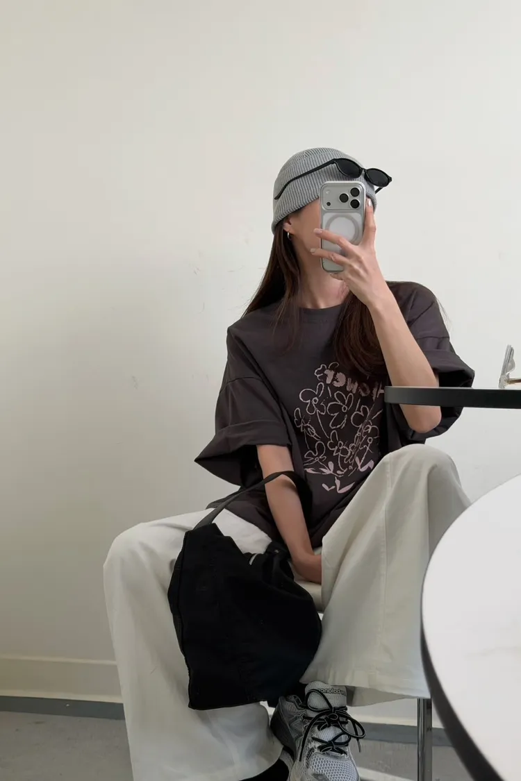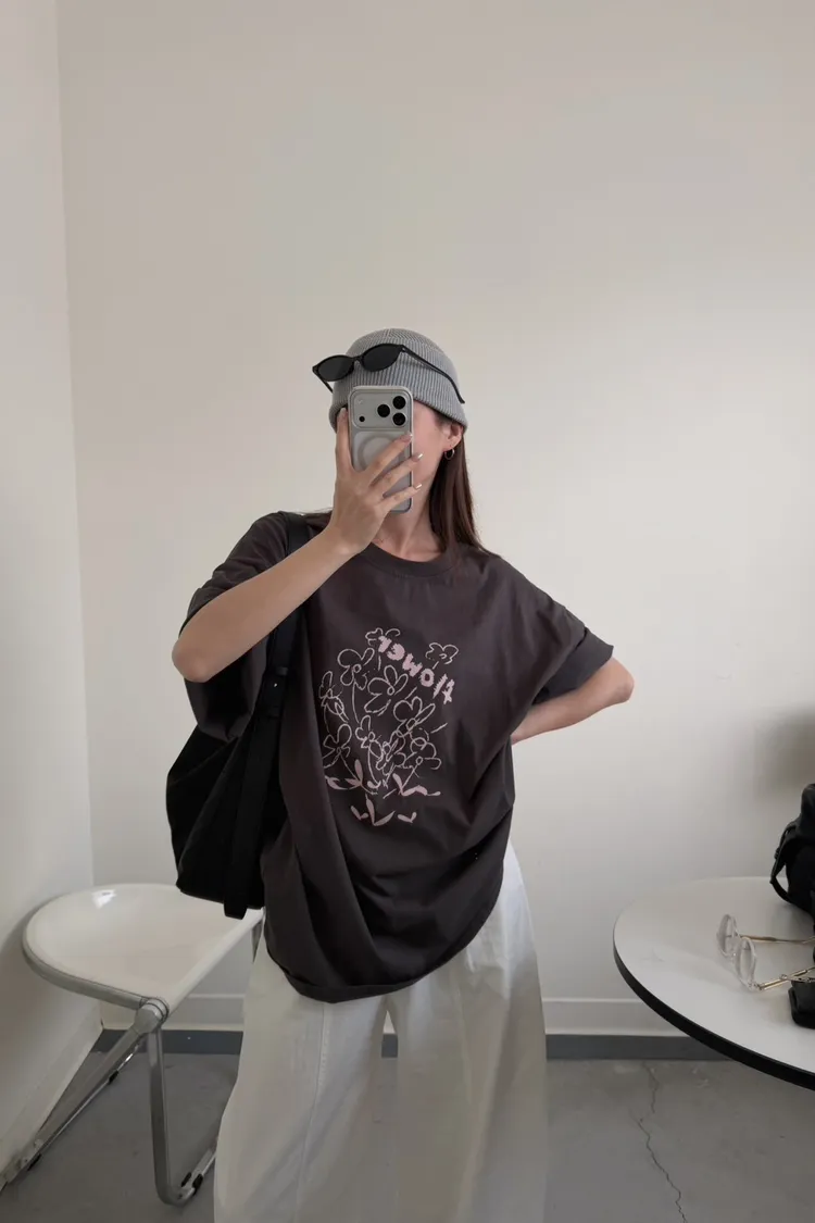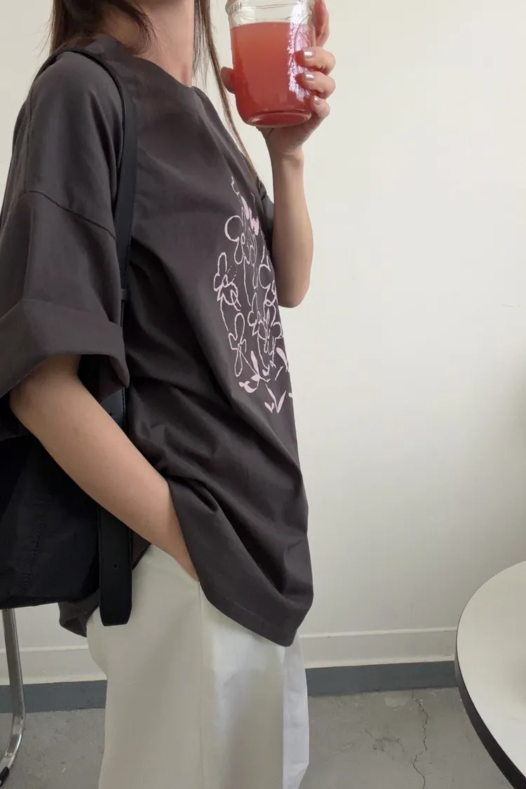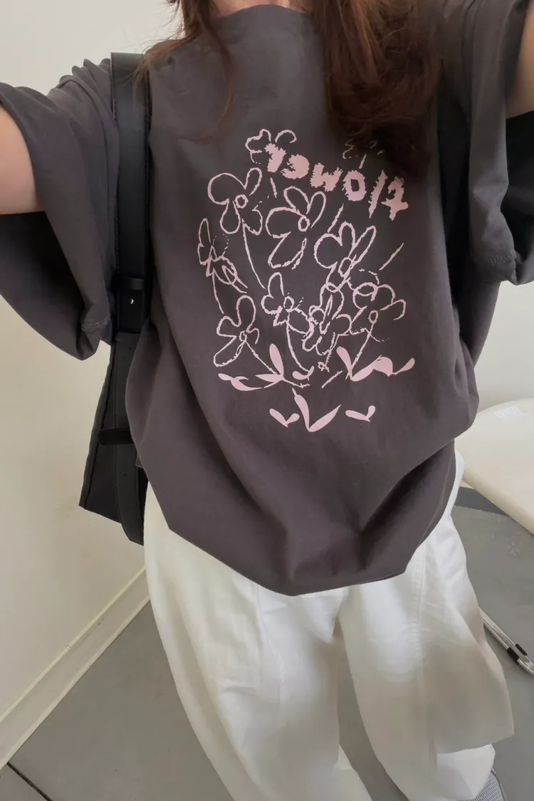 灰粉配色 小花棉tee