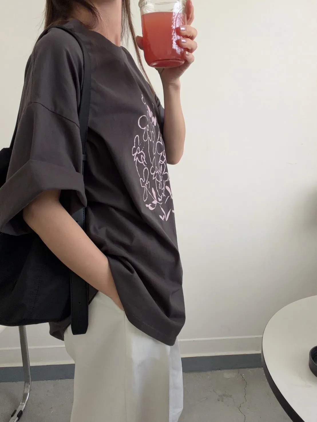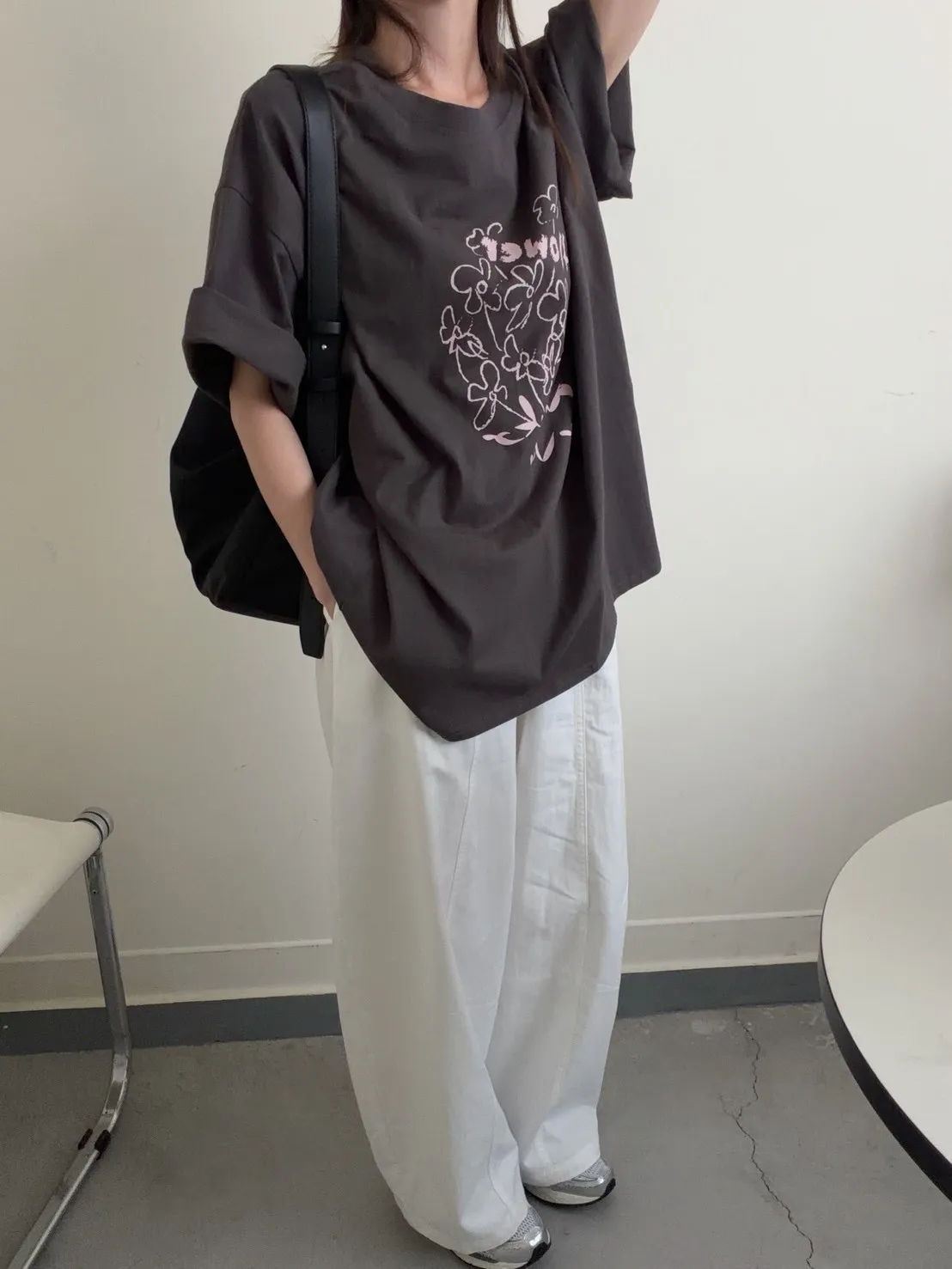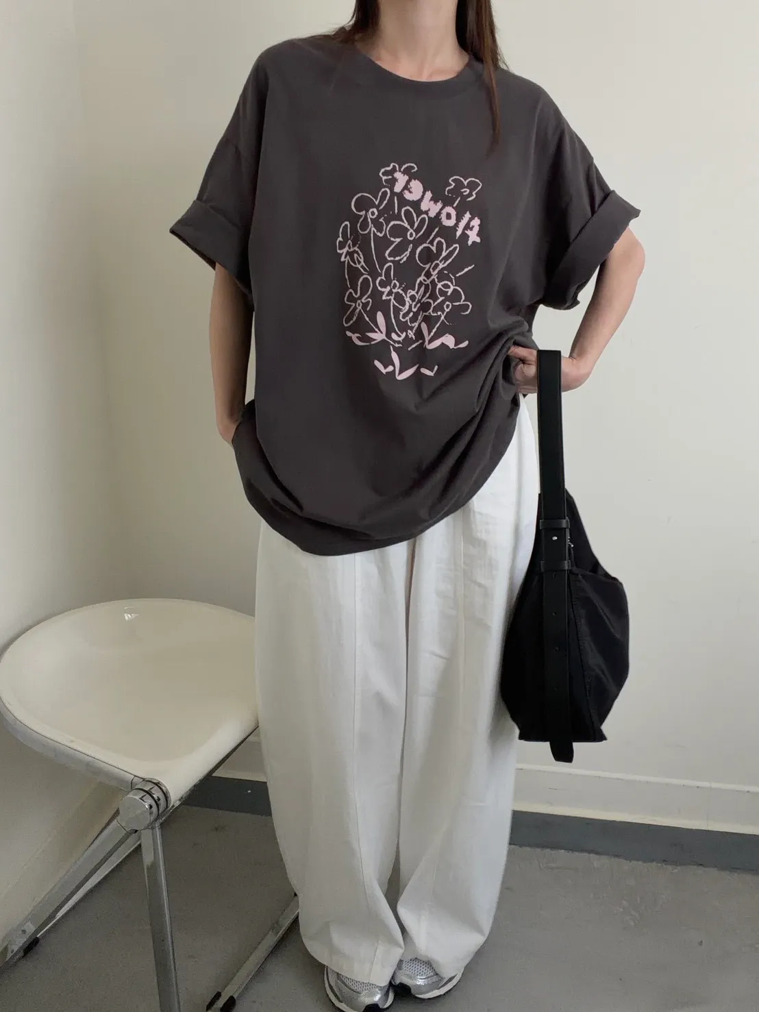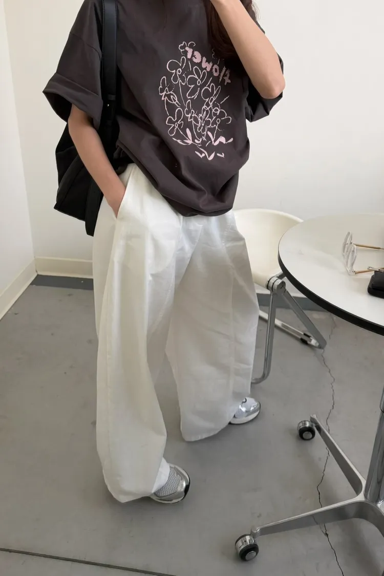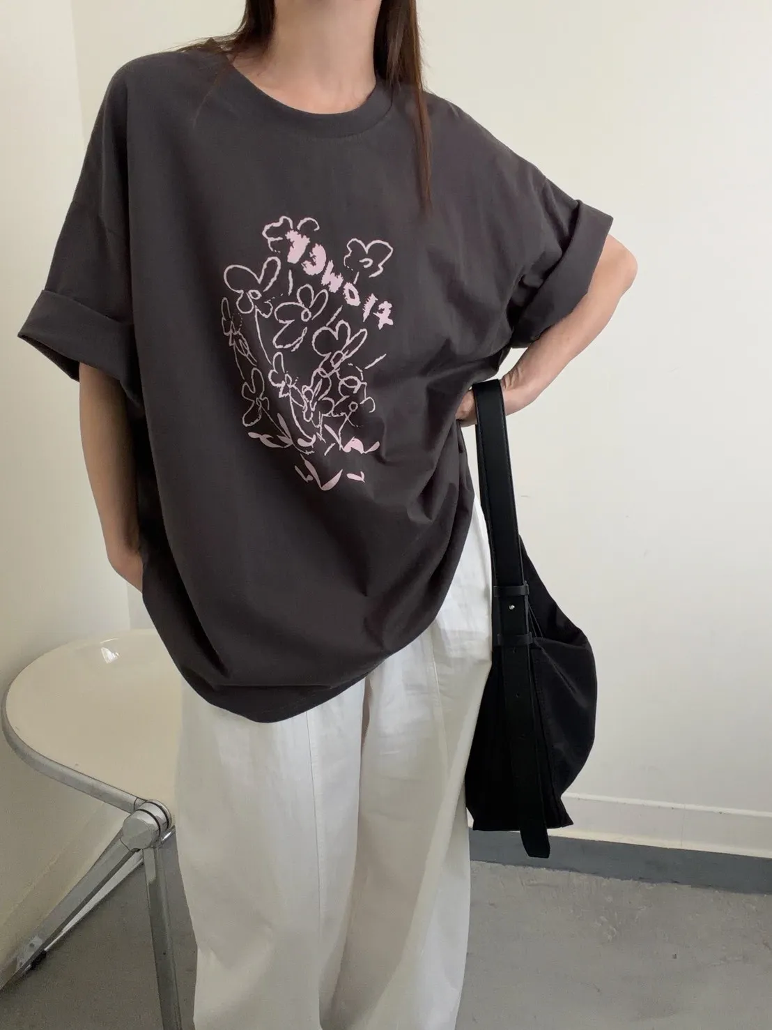 灰粉配色 小花棉tee