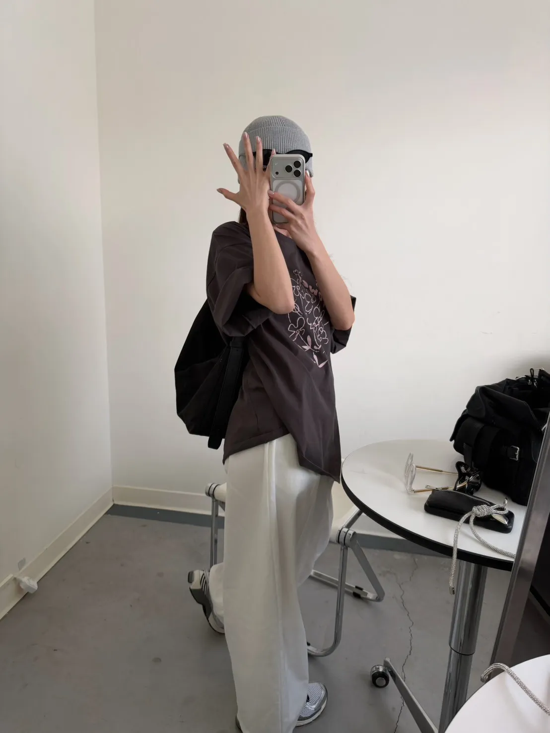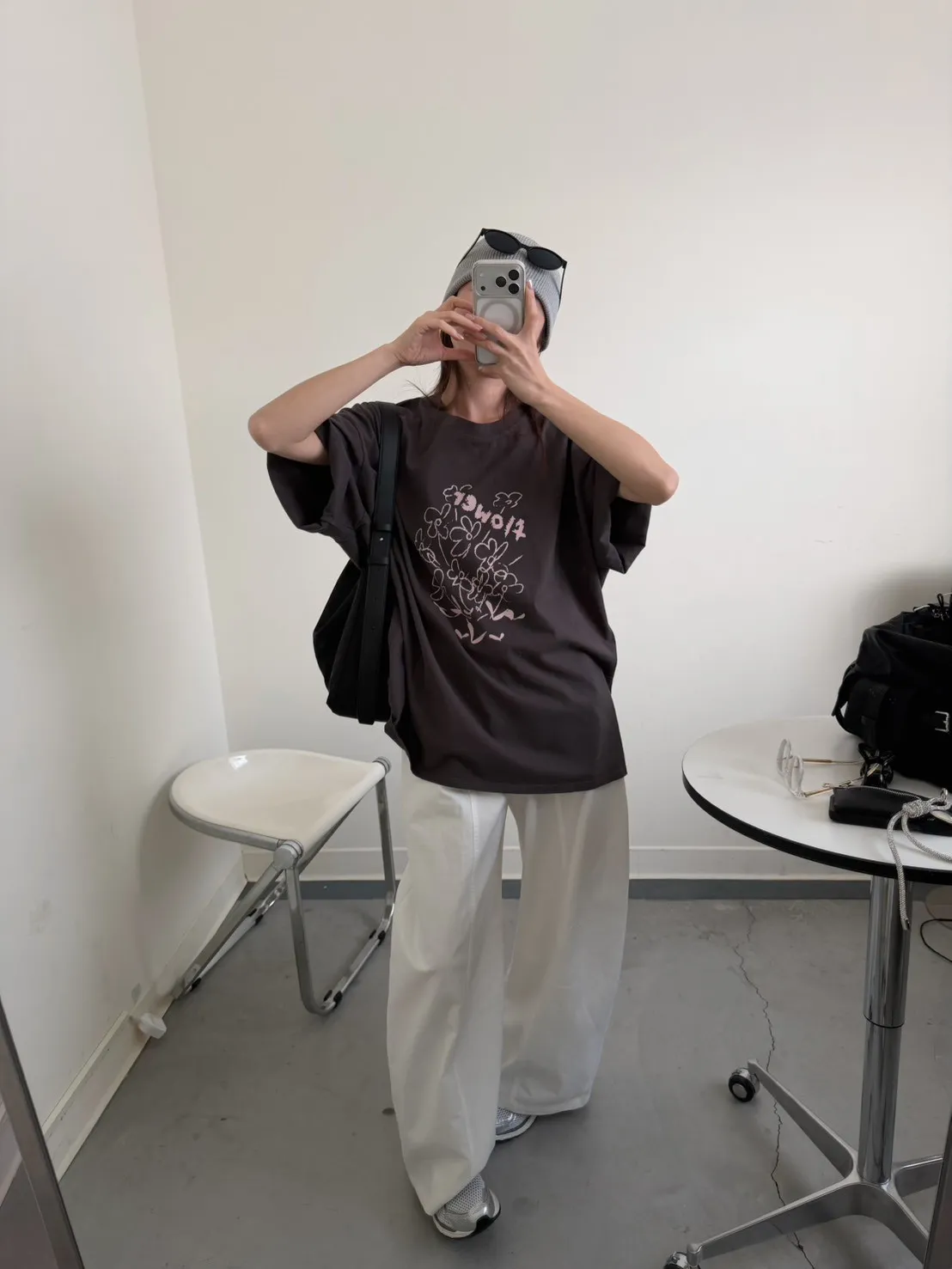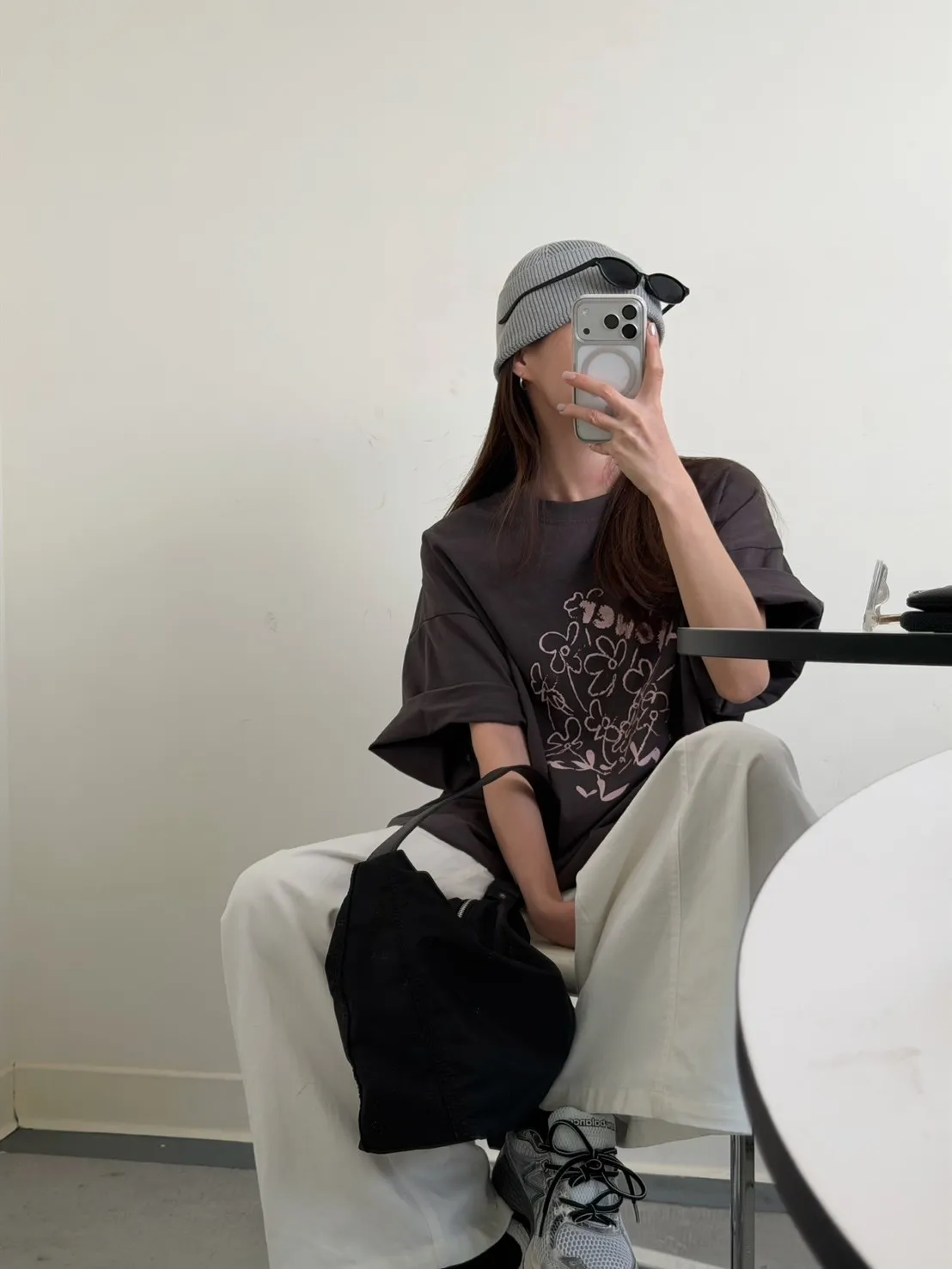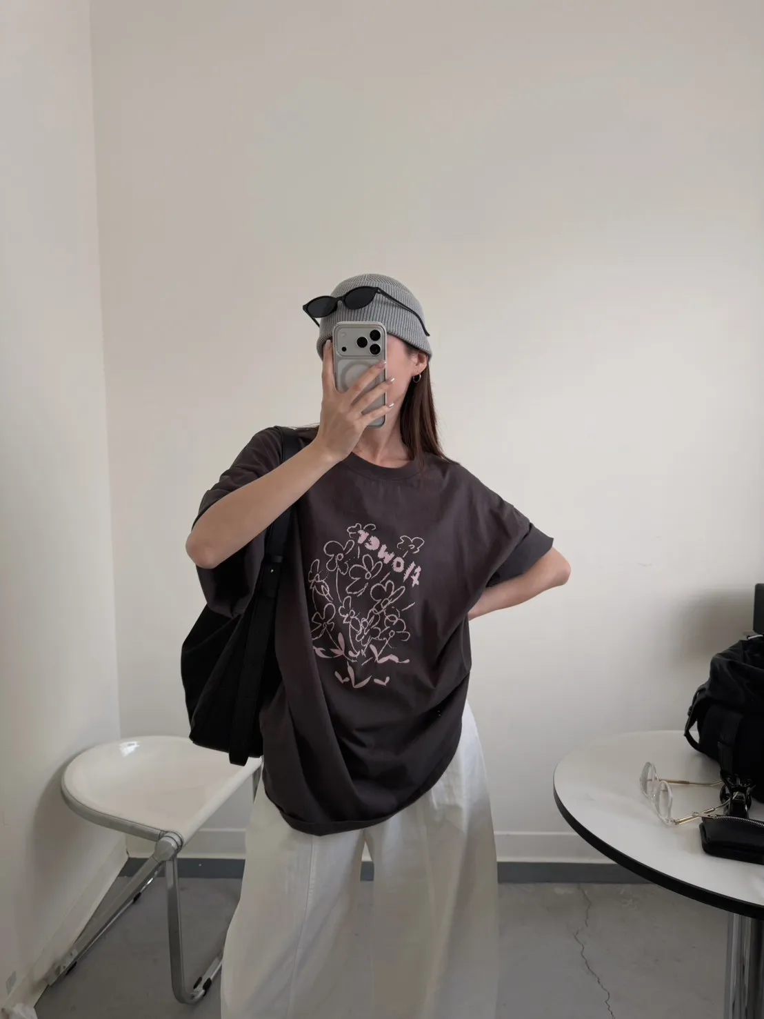 灰粉配色 小花棉tee