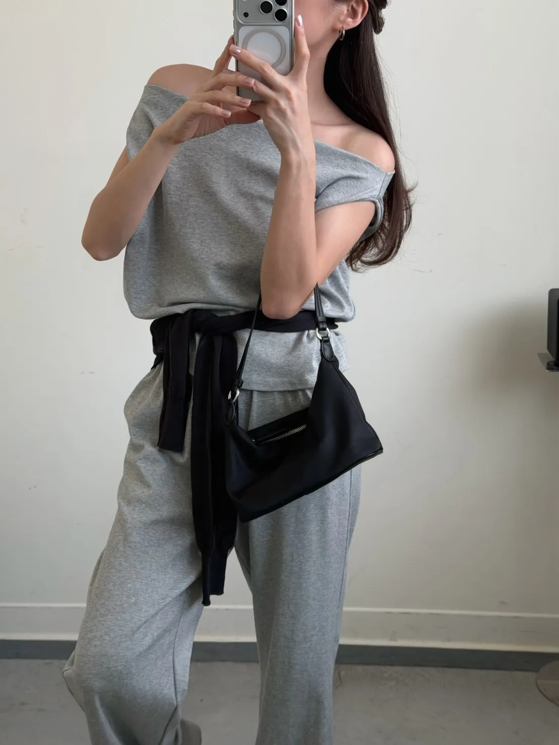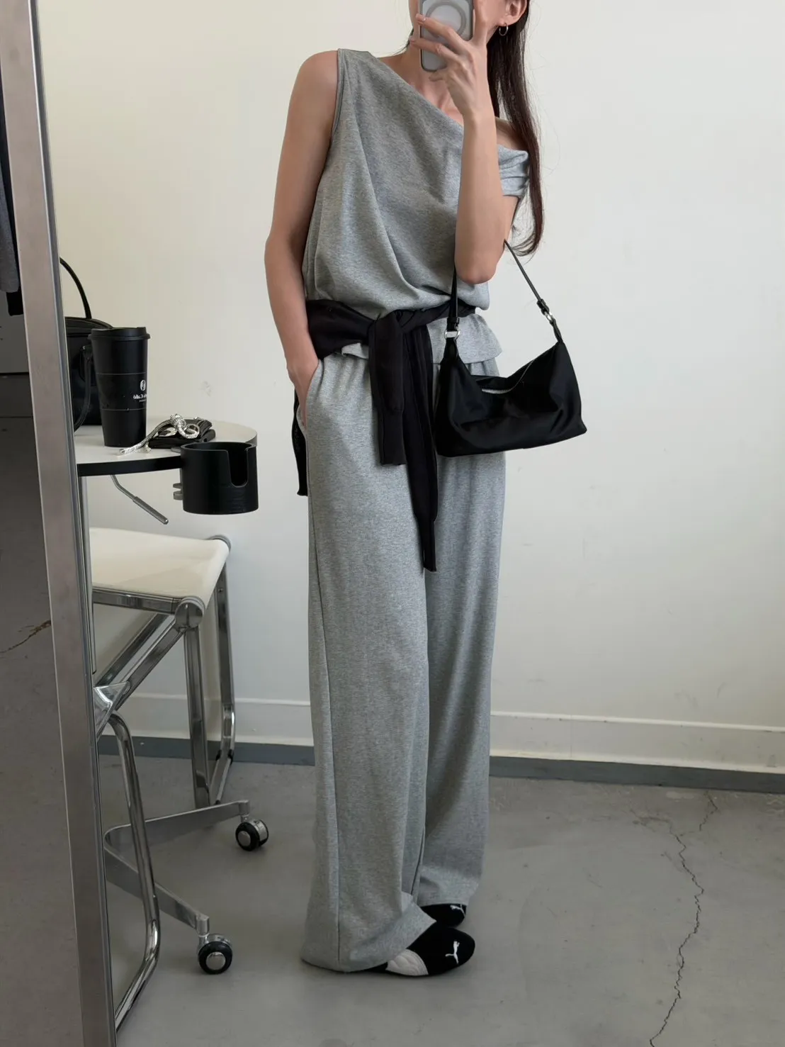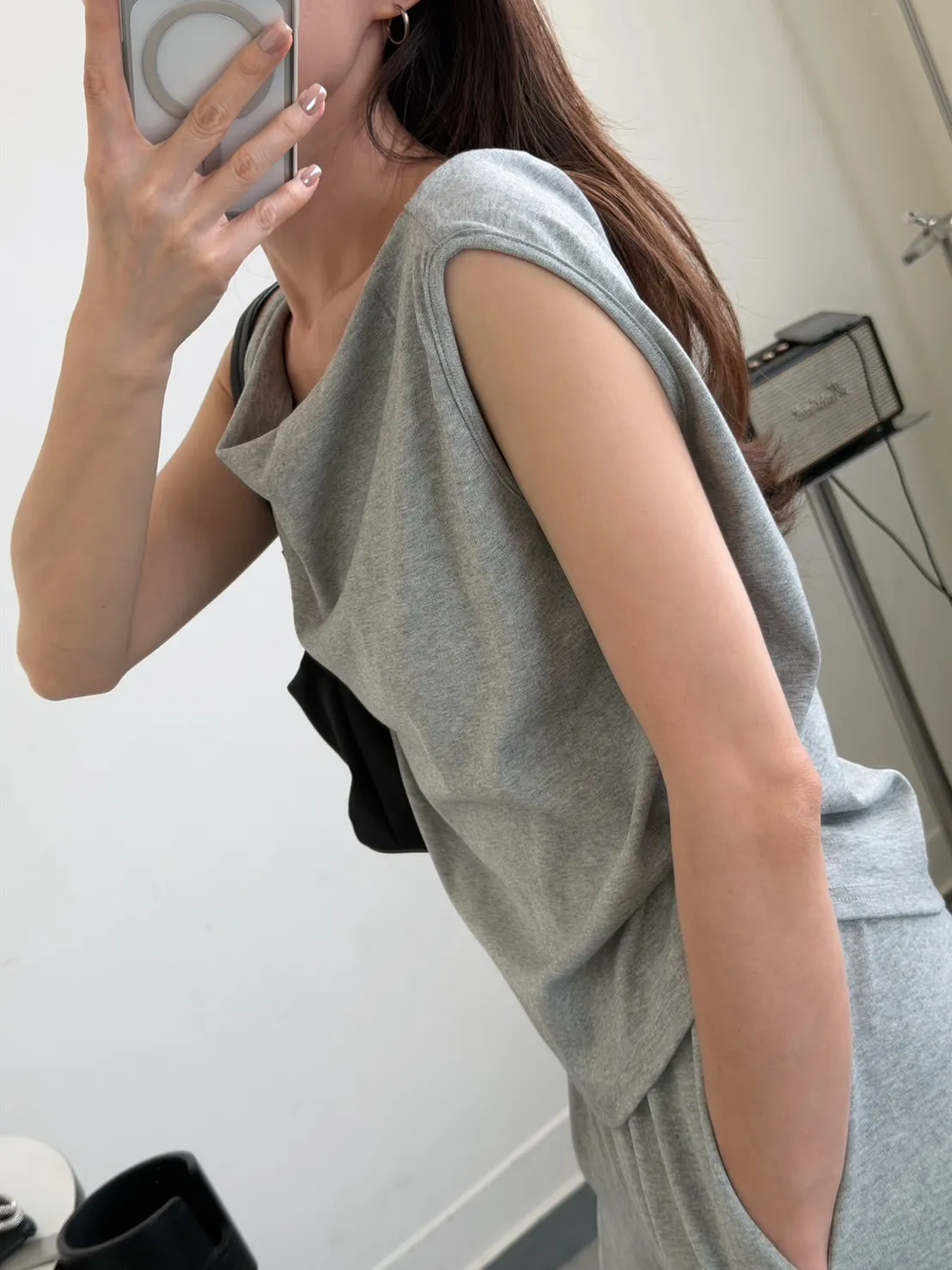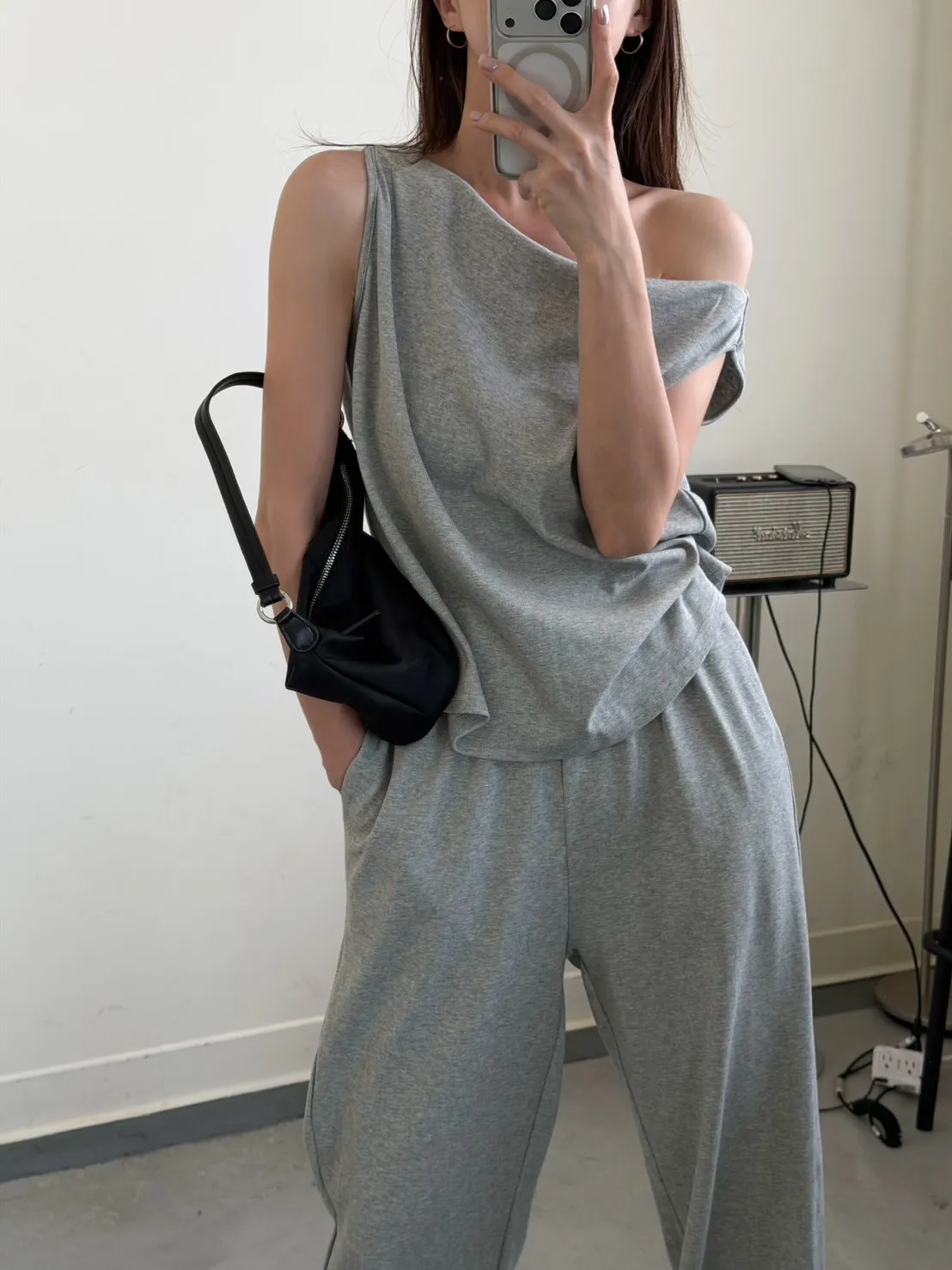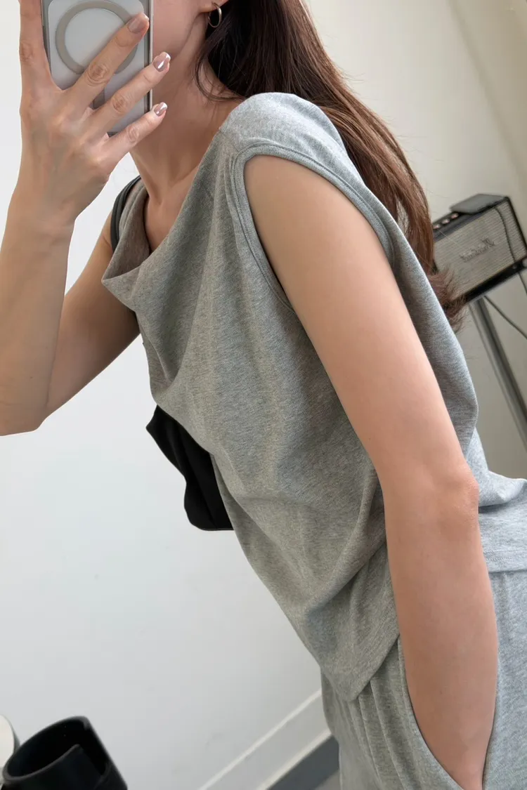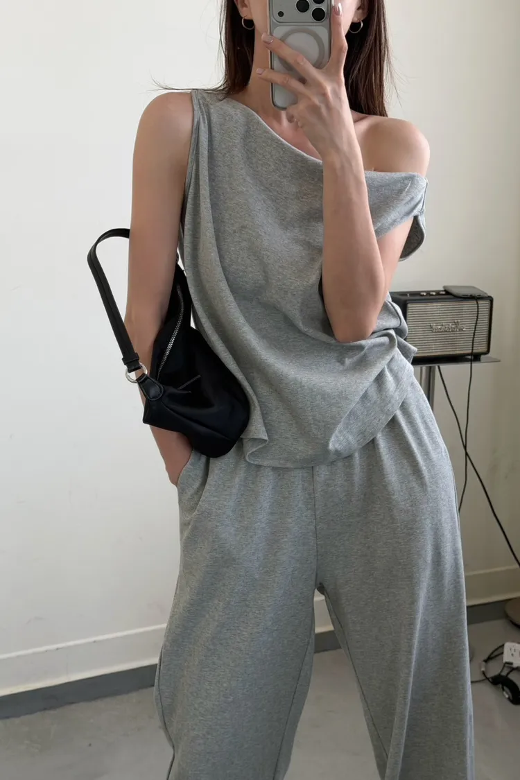 灰色 極美!垂領背心+長褲SET