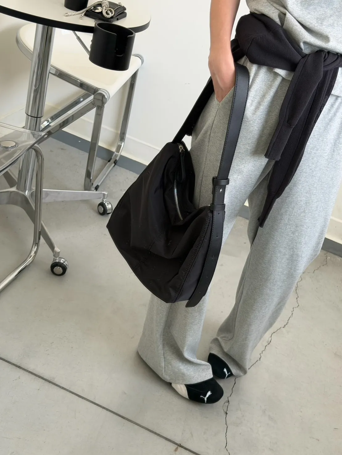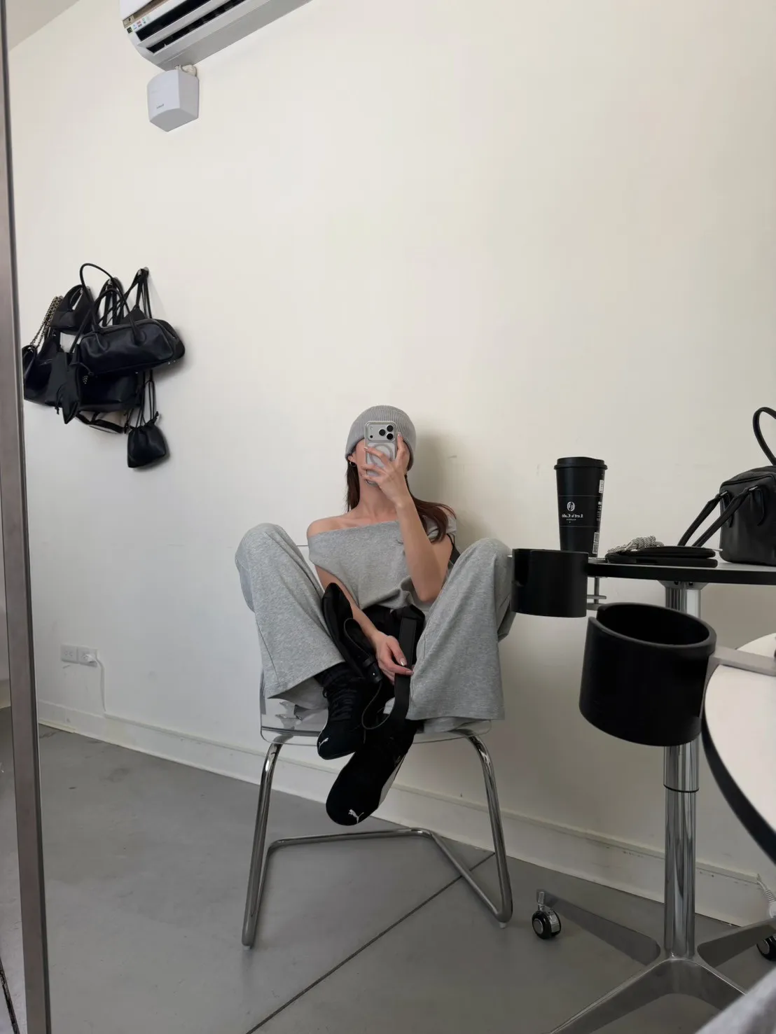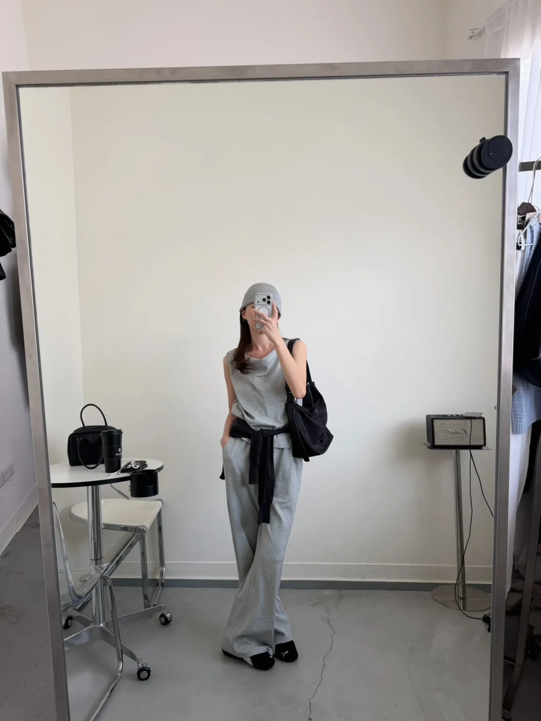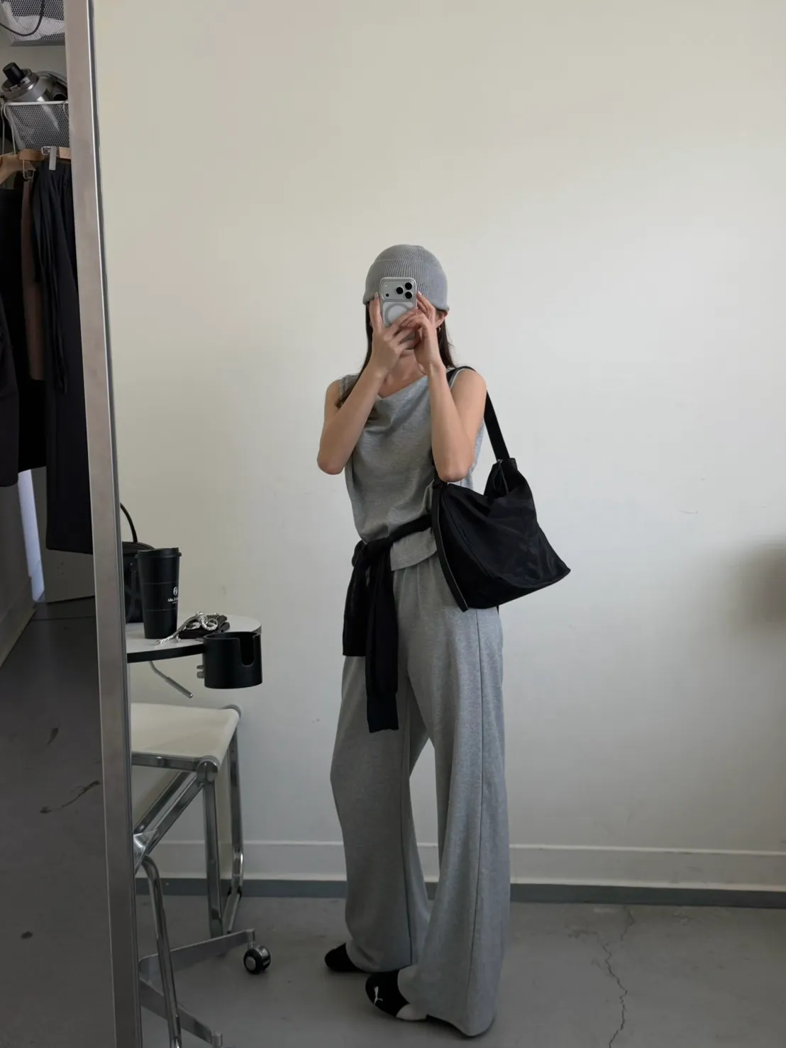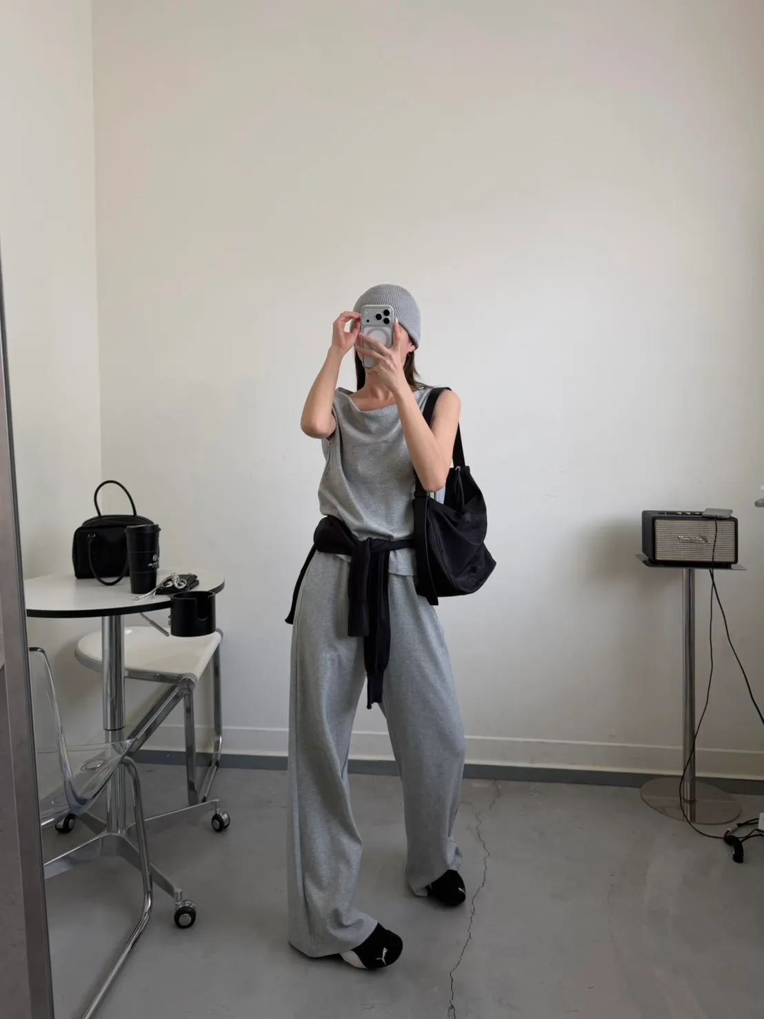 灰色 極美!垂領背心+長褲SET