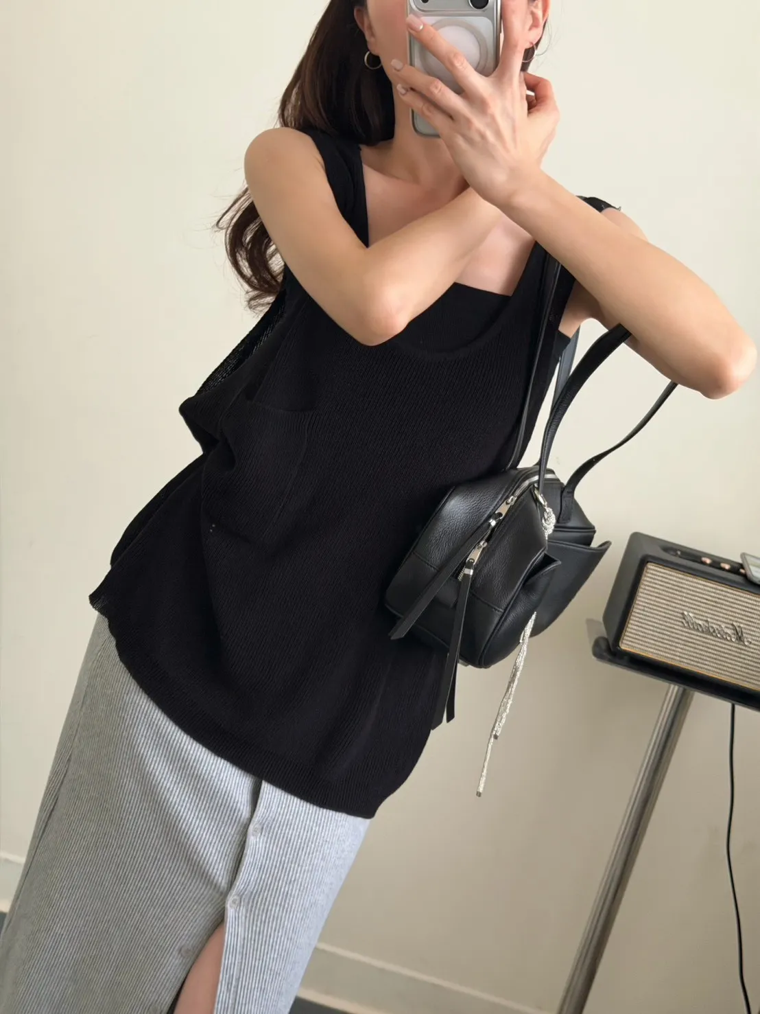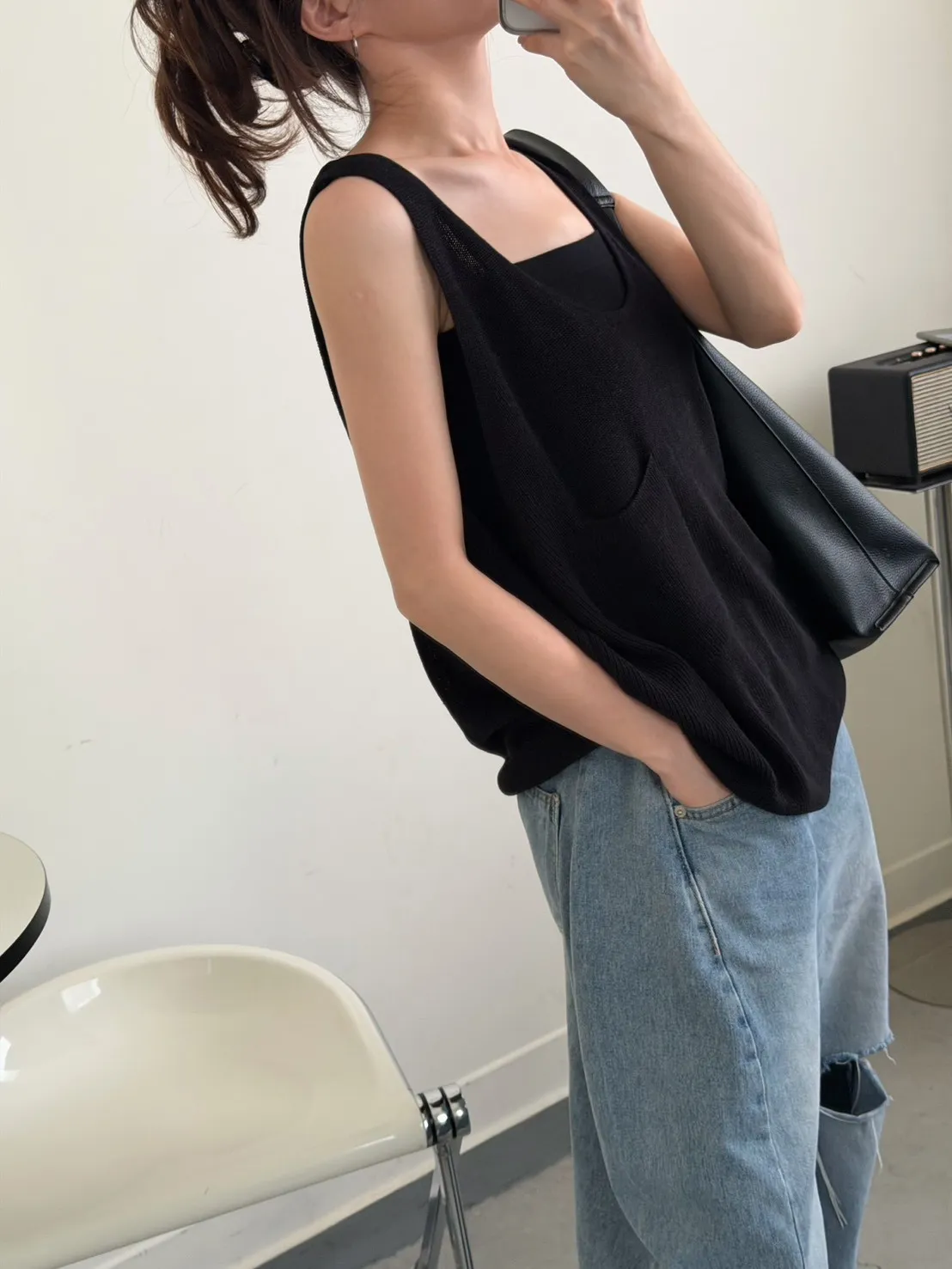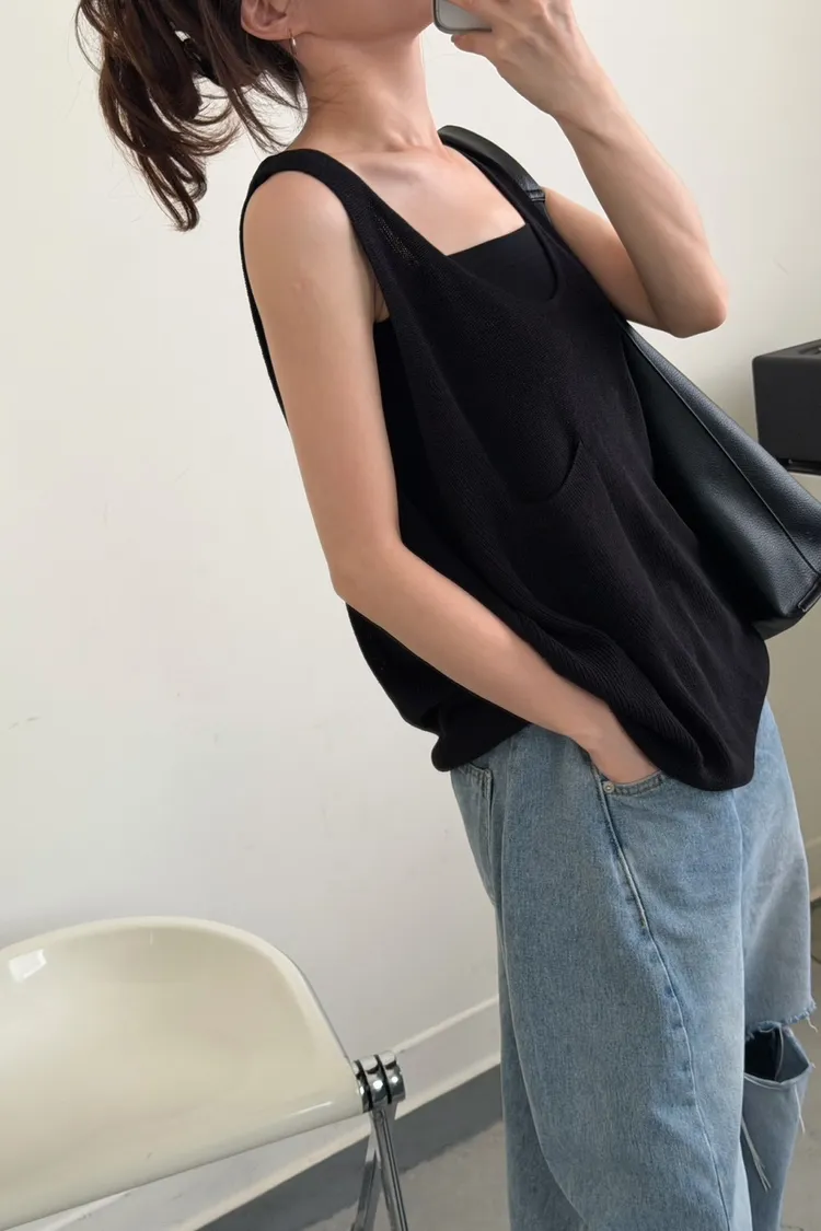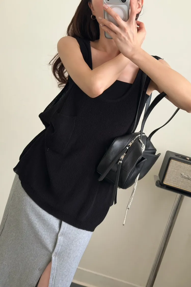 黑色 超愛它!基礎口袋針織背心