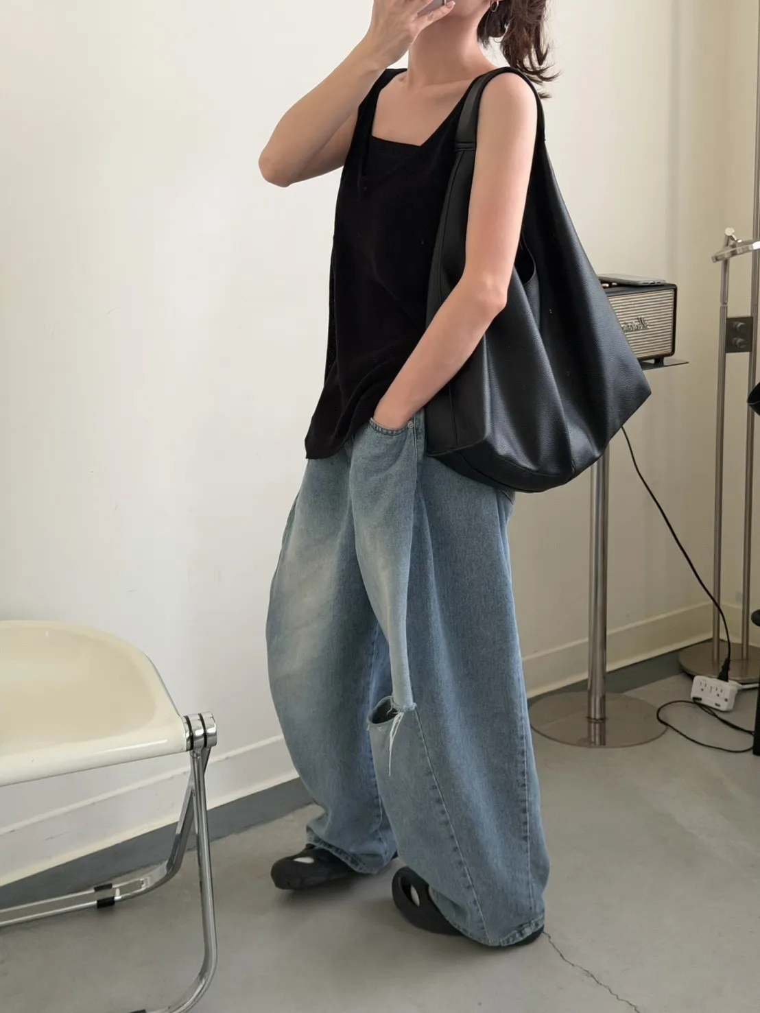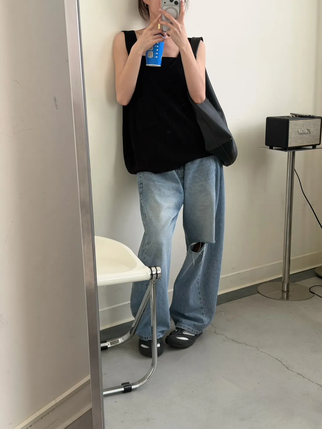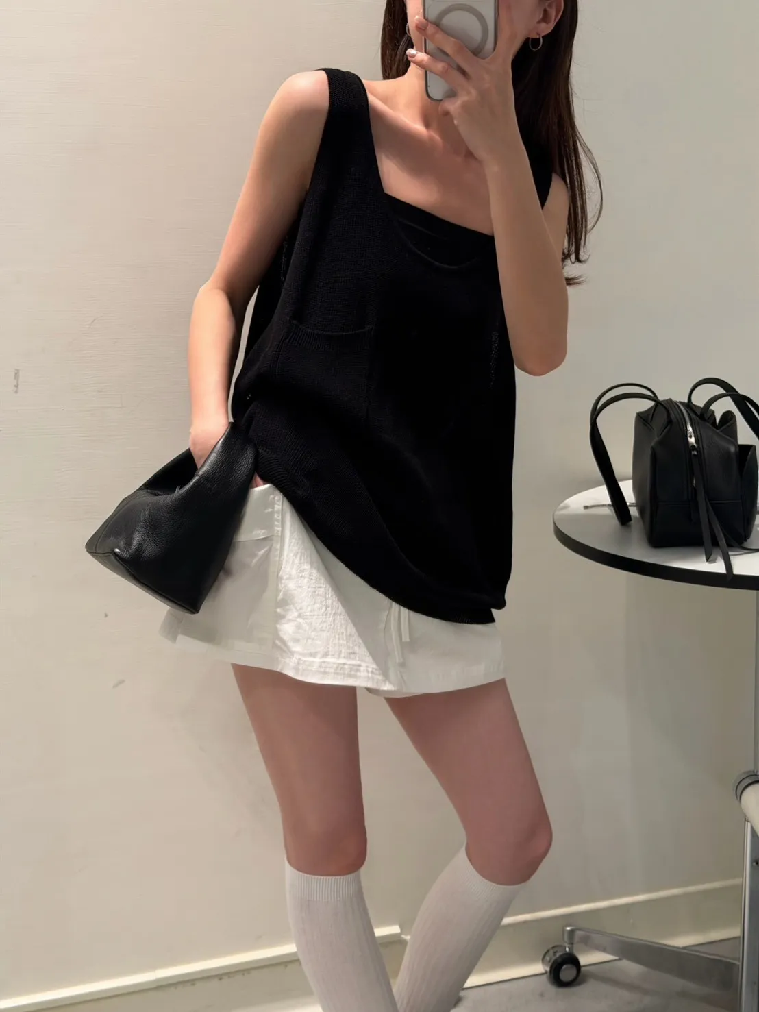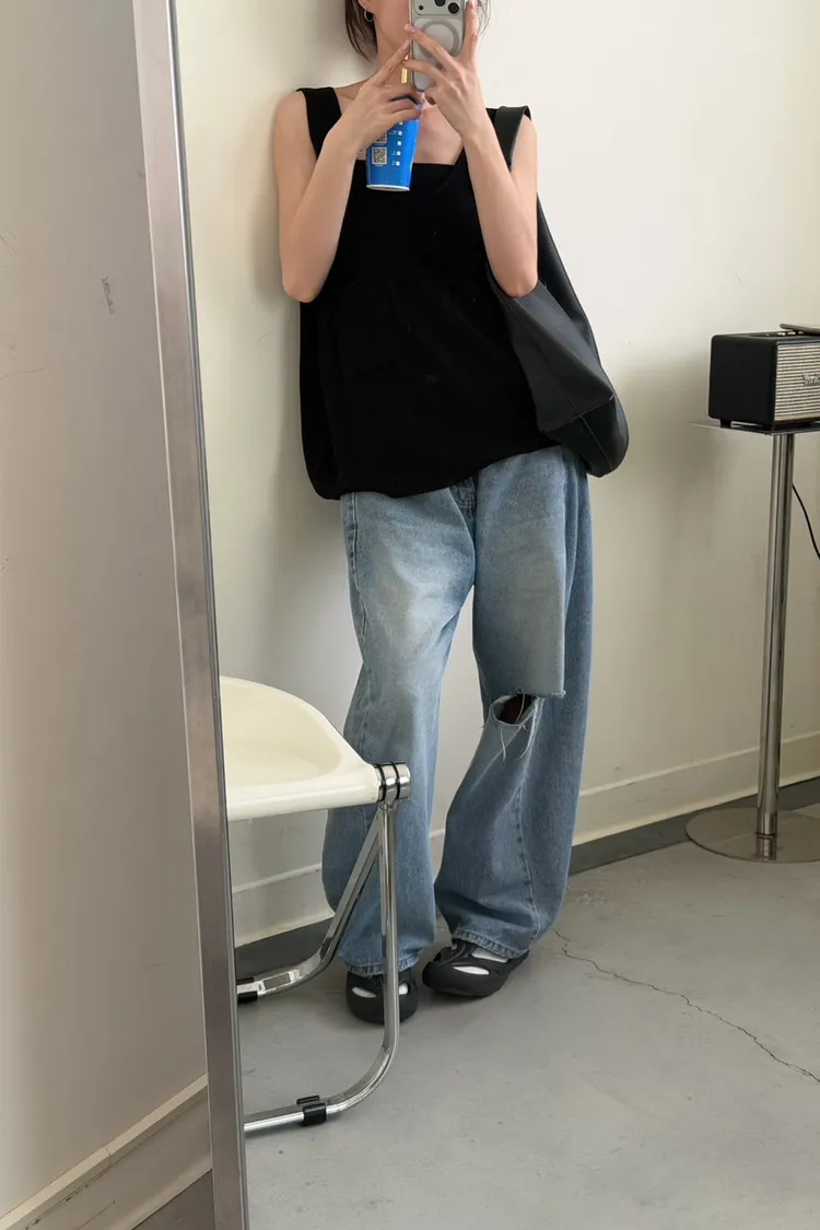 黑色 超愛它!基礎口袋針織背心