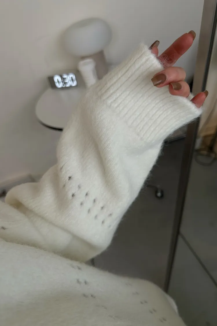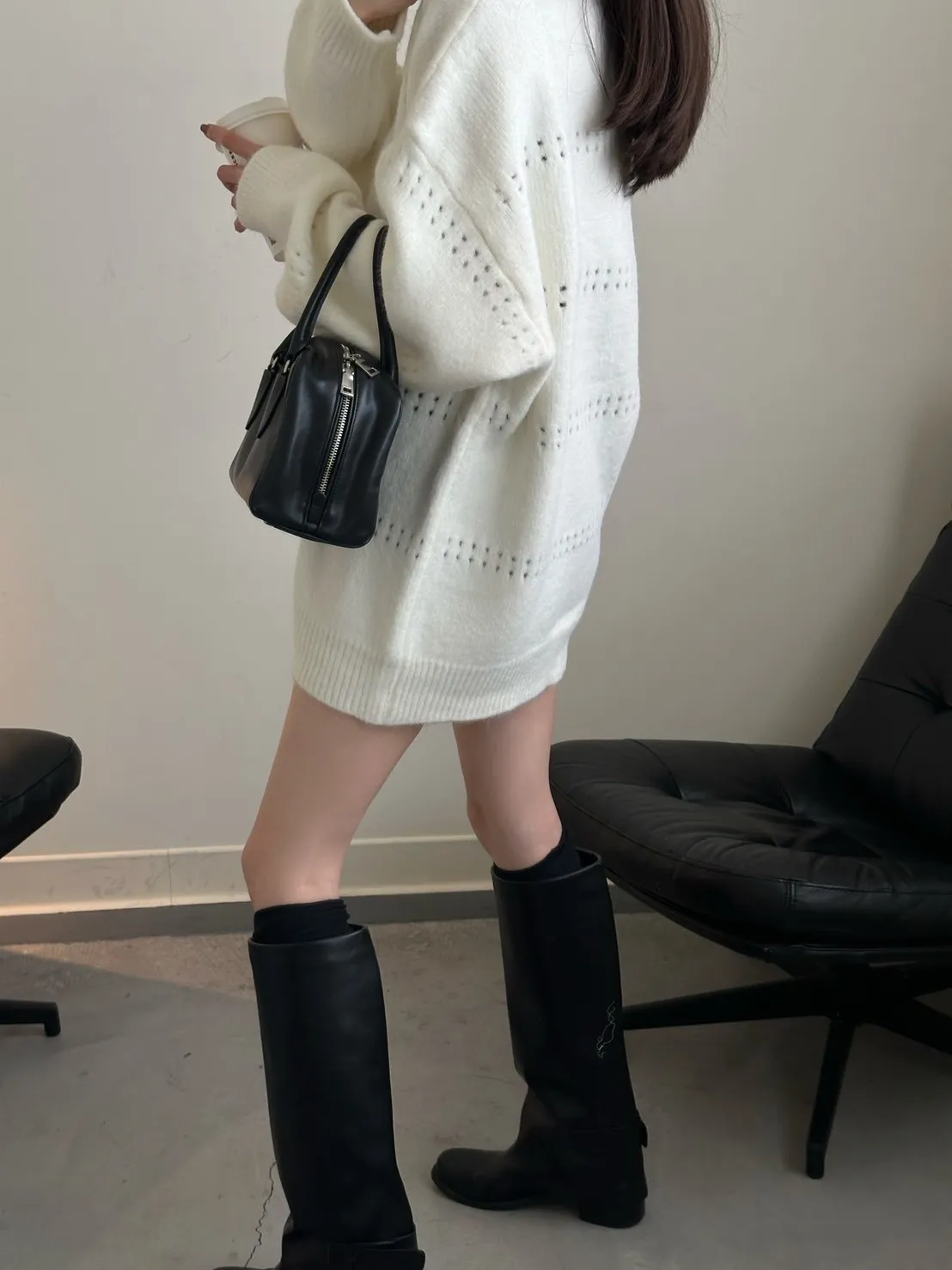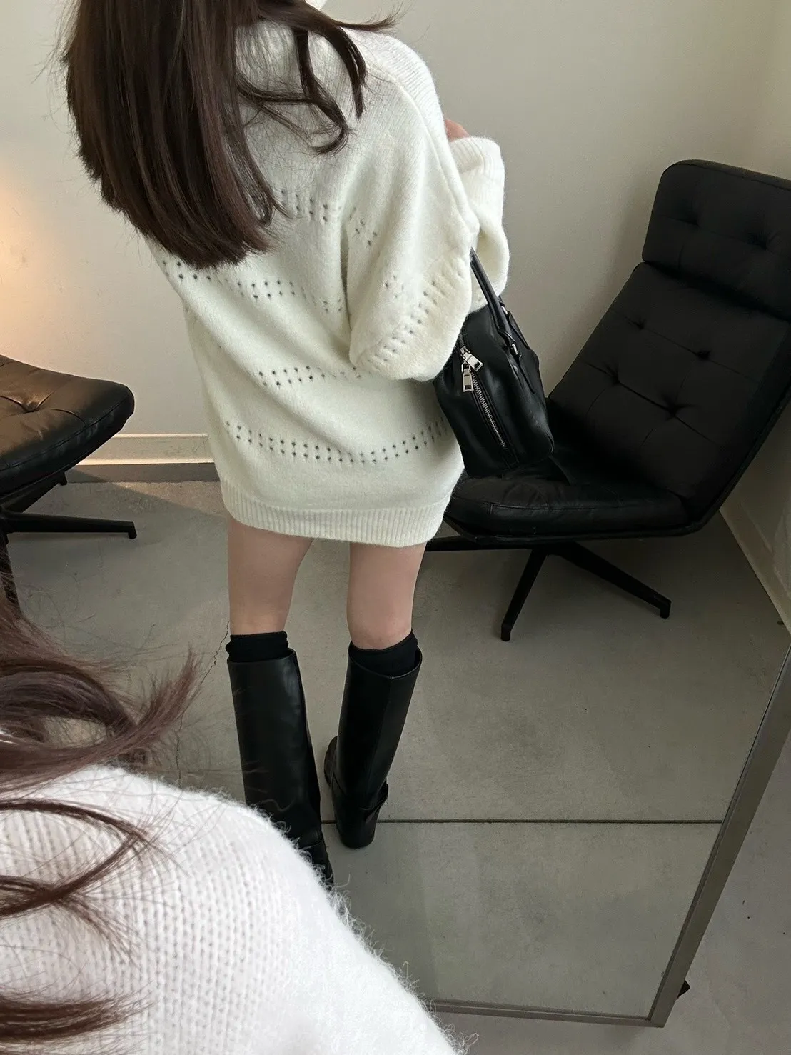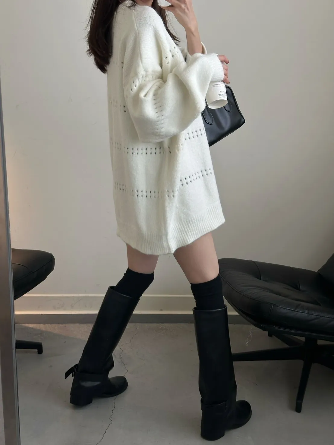 奶白色 超級愛!洞洞橫條軟綿針織毛衣