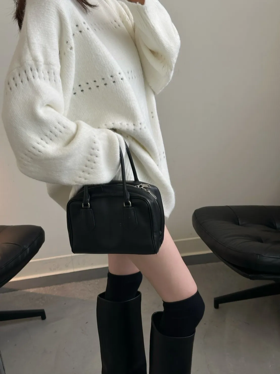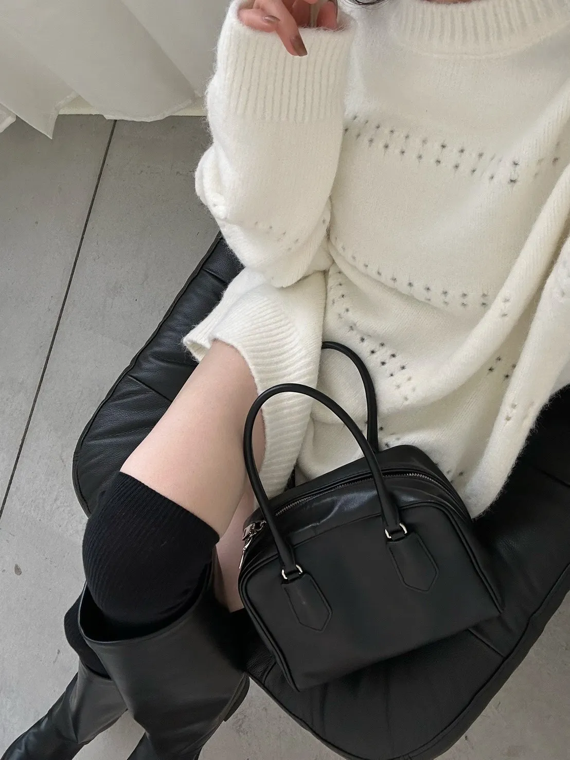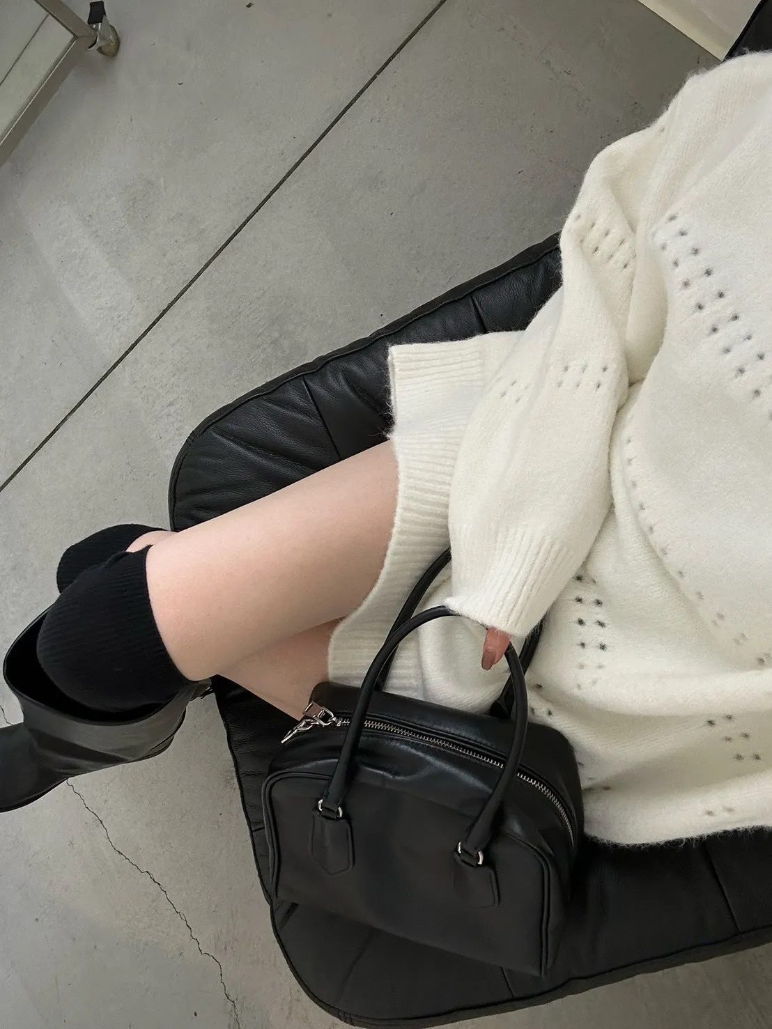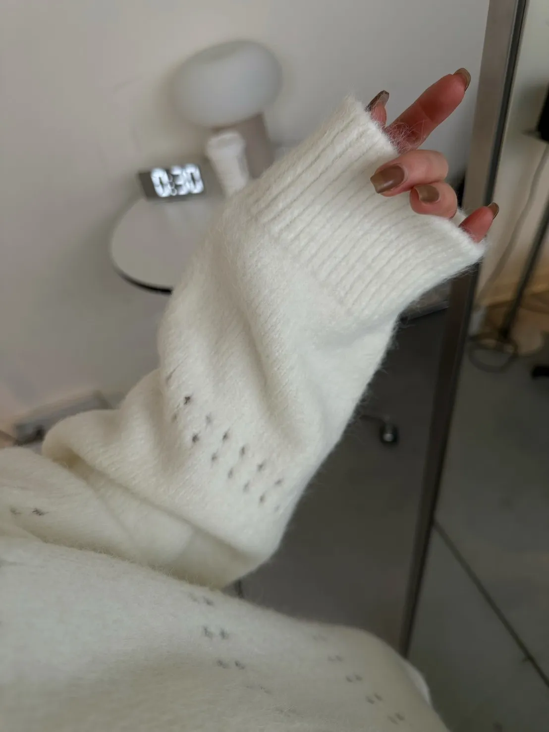 奶白色 超級愛!洞洞橫條軟綿針織毛衣