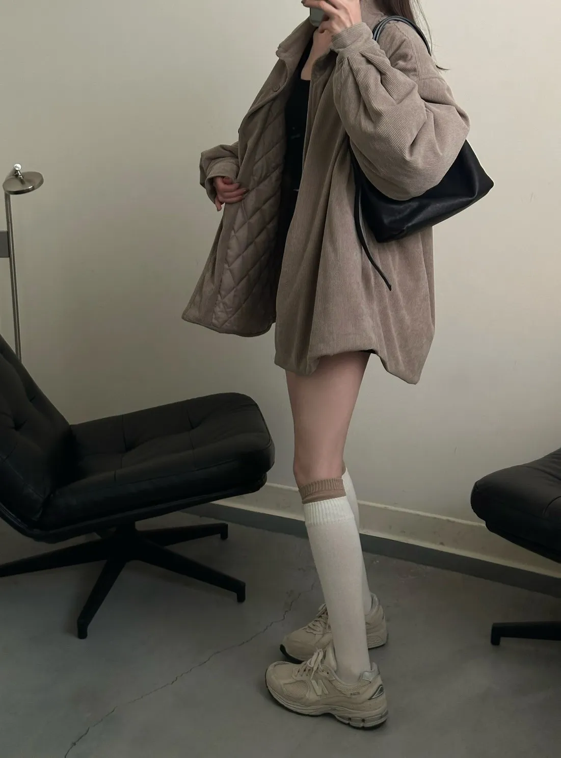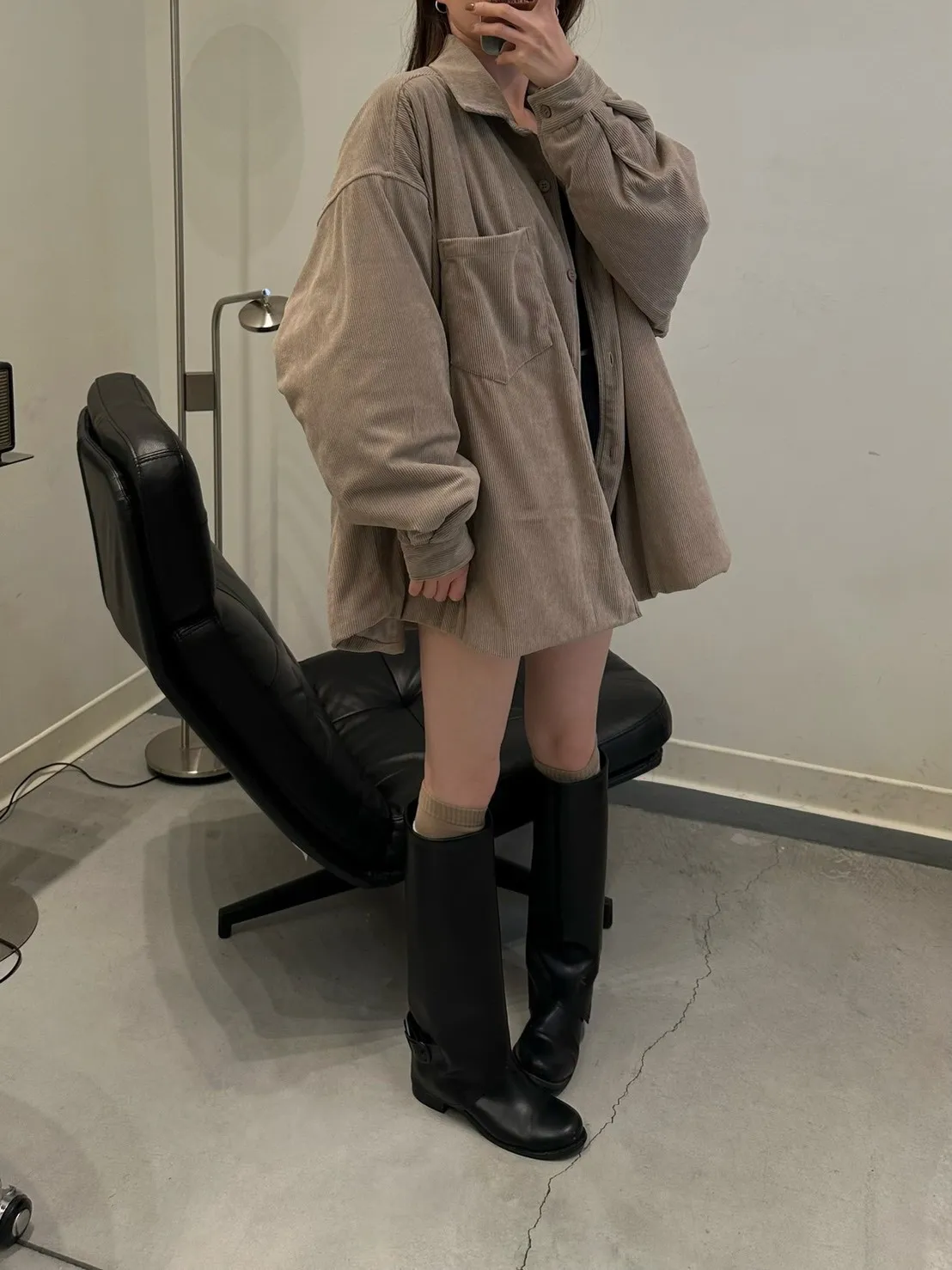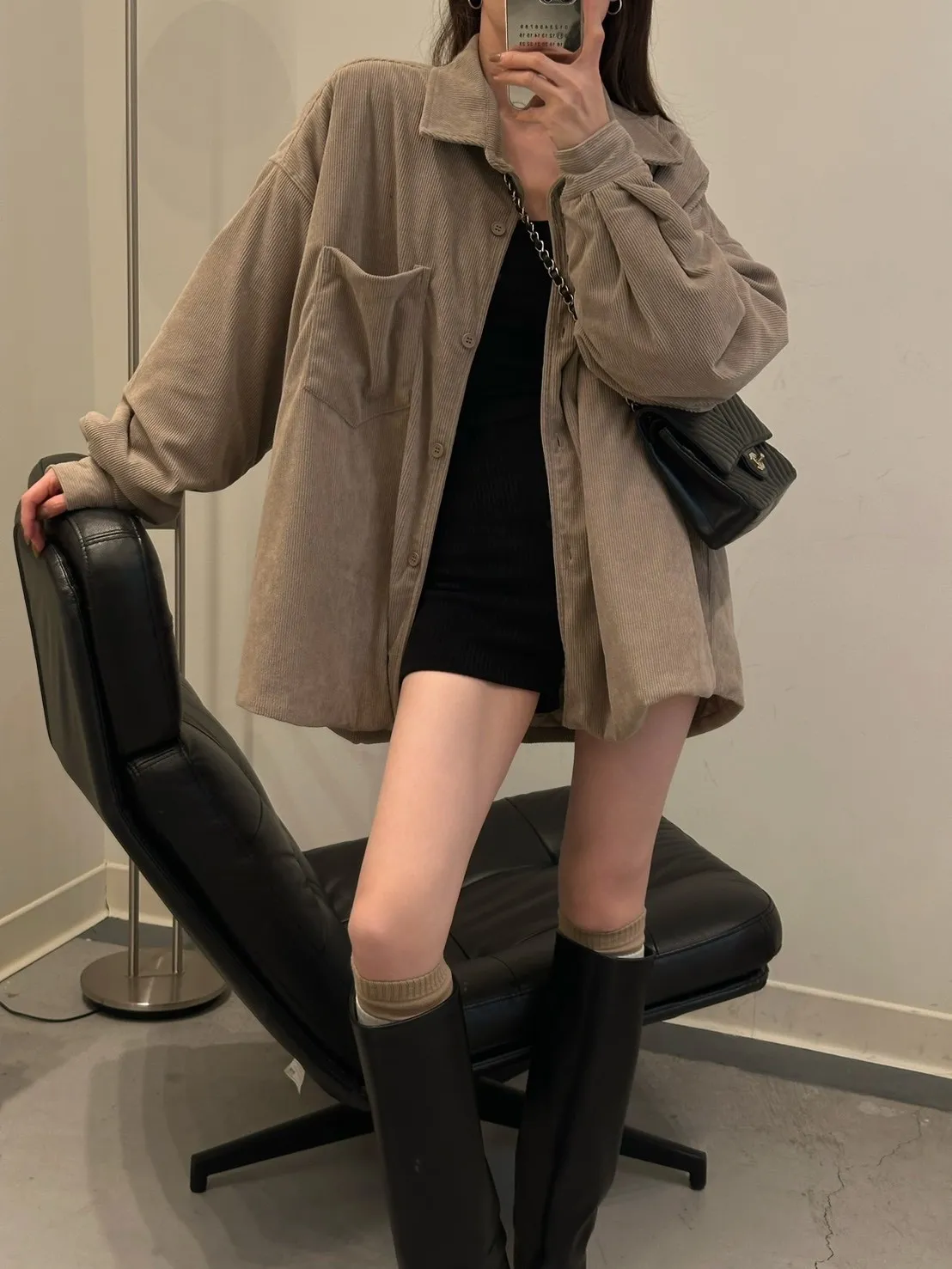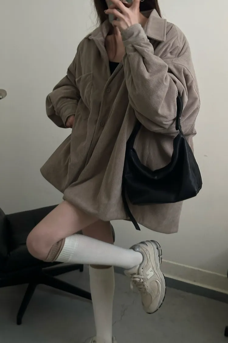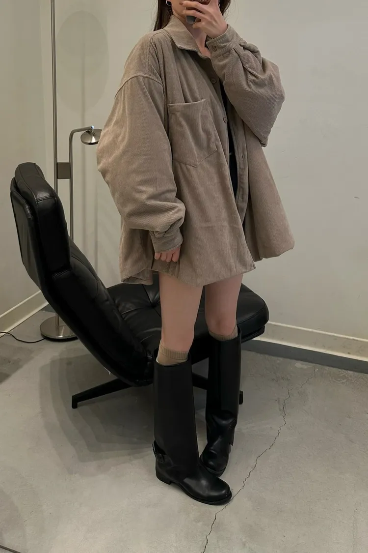 奶茶色 燈芯絨鋪棉襯衫外套