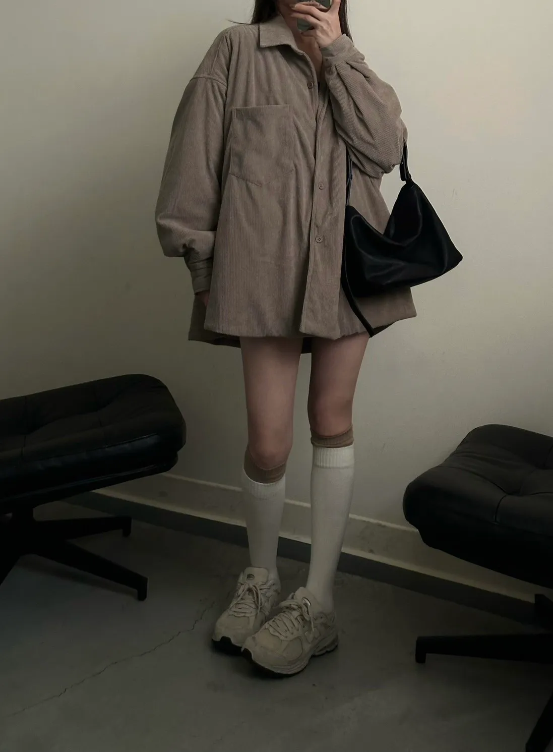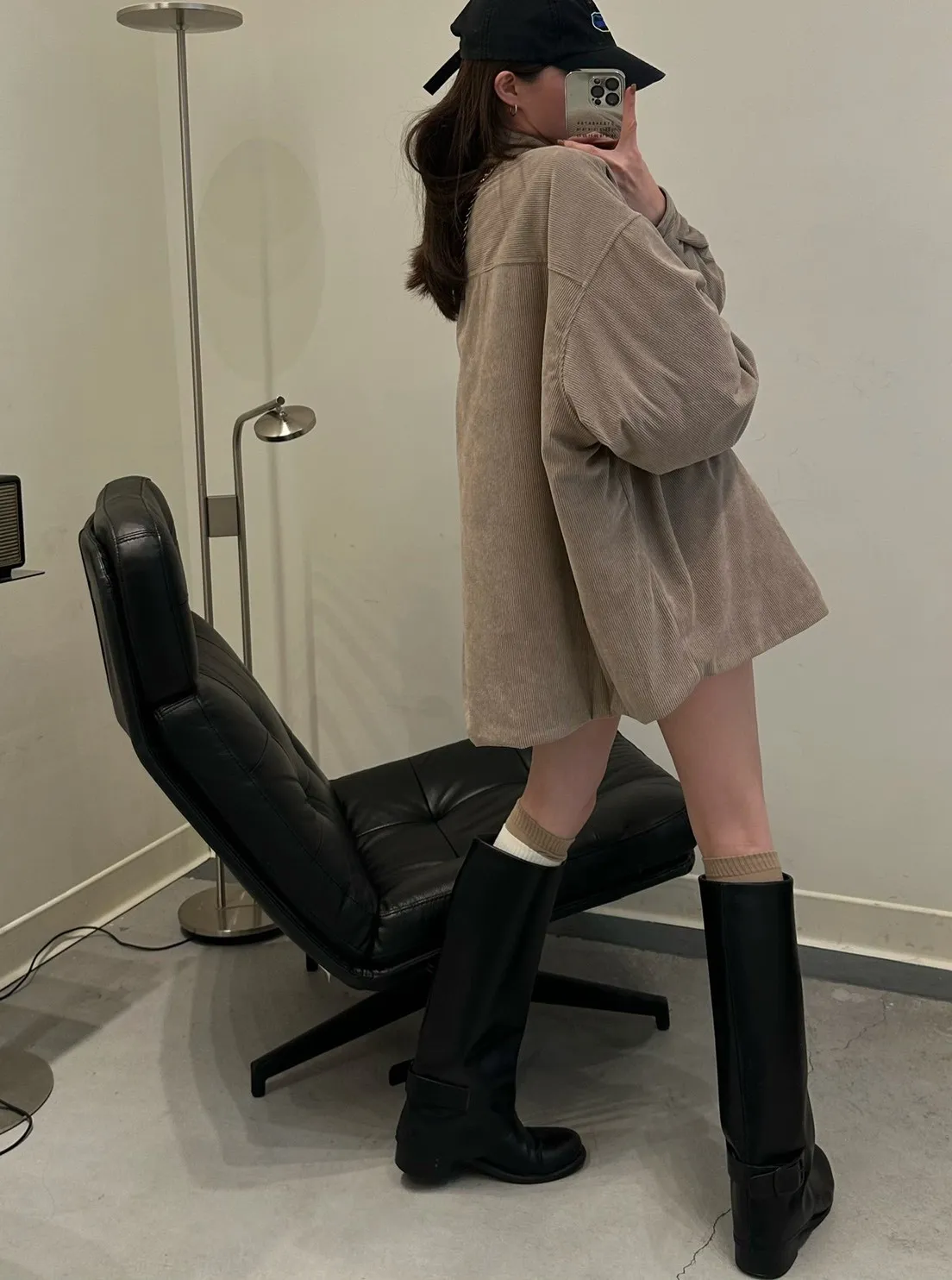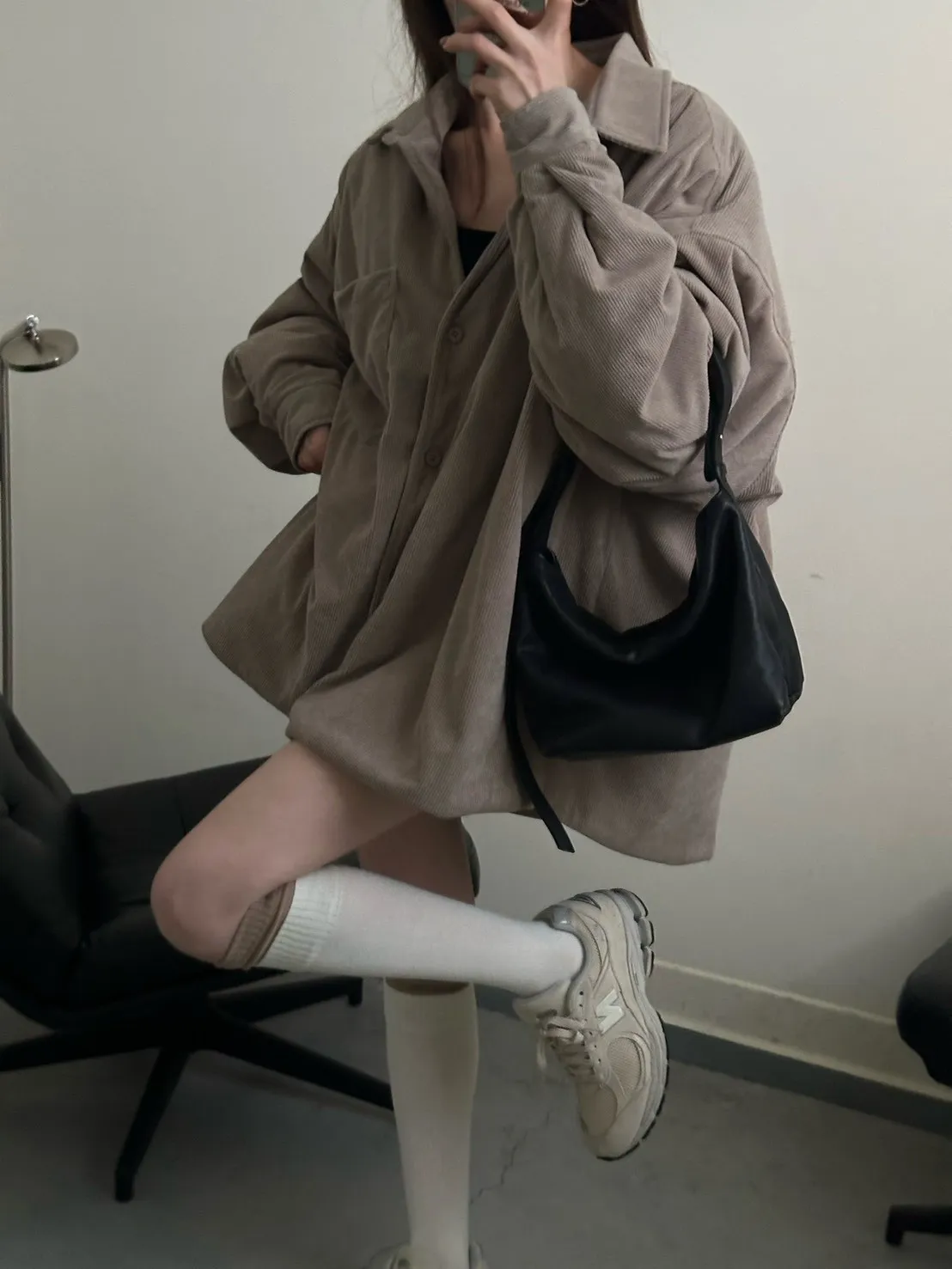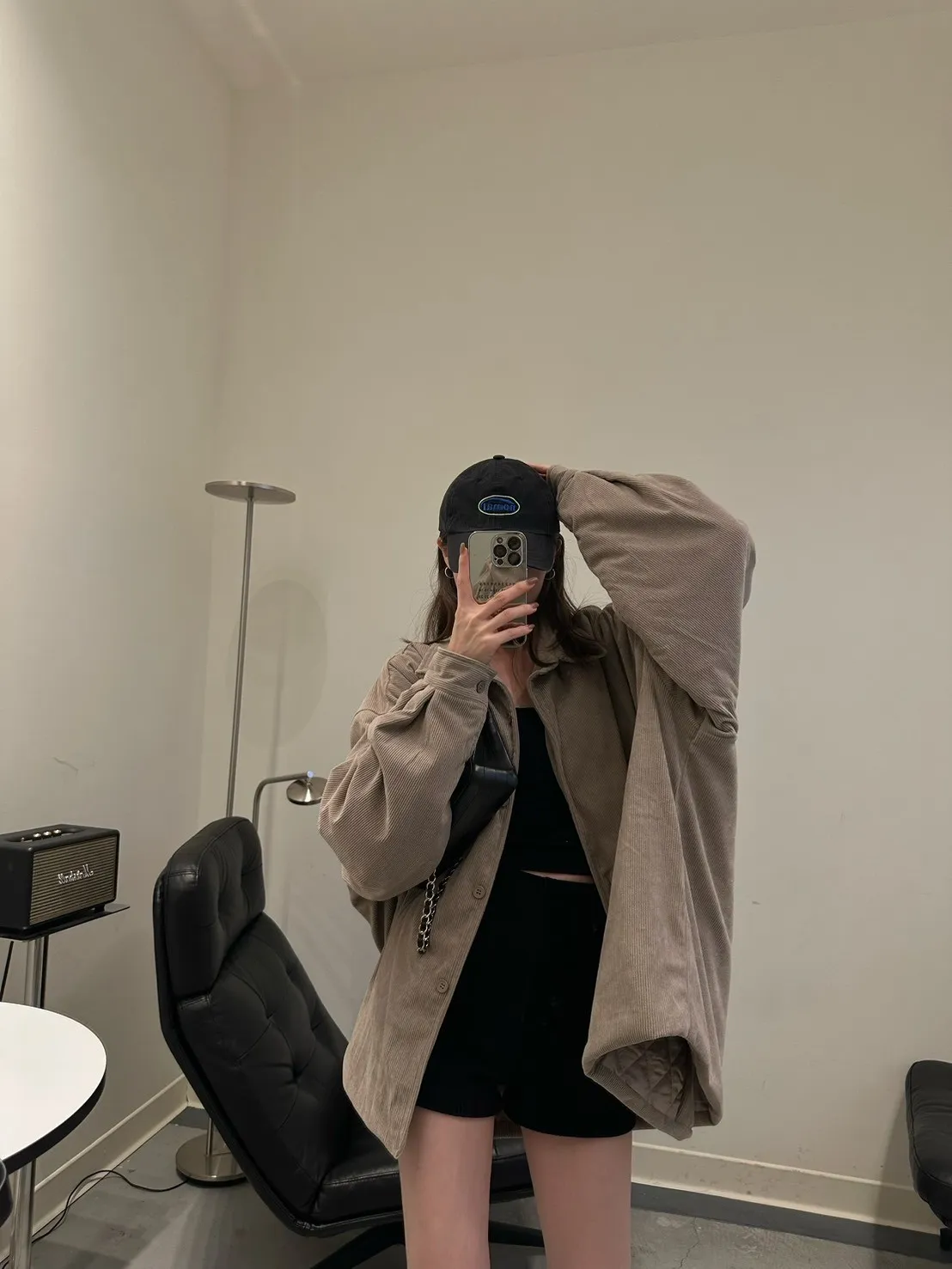 奶茶色 燈芯絨鋪棉襯衫外套