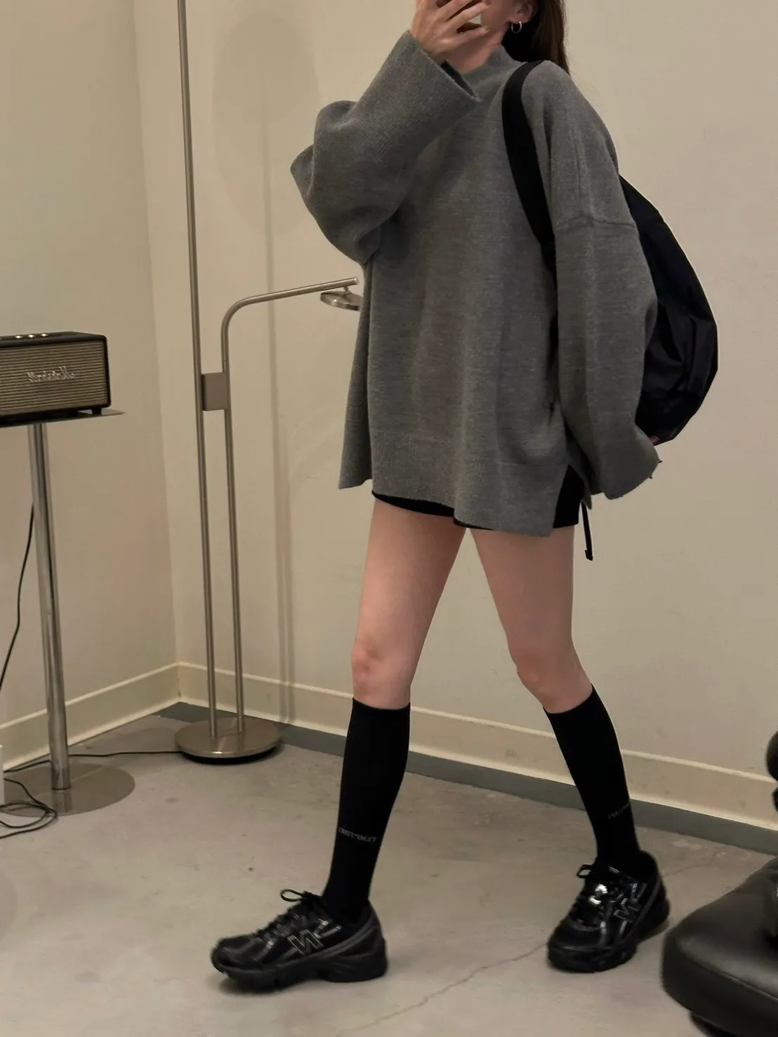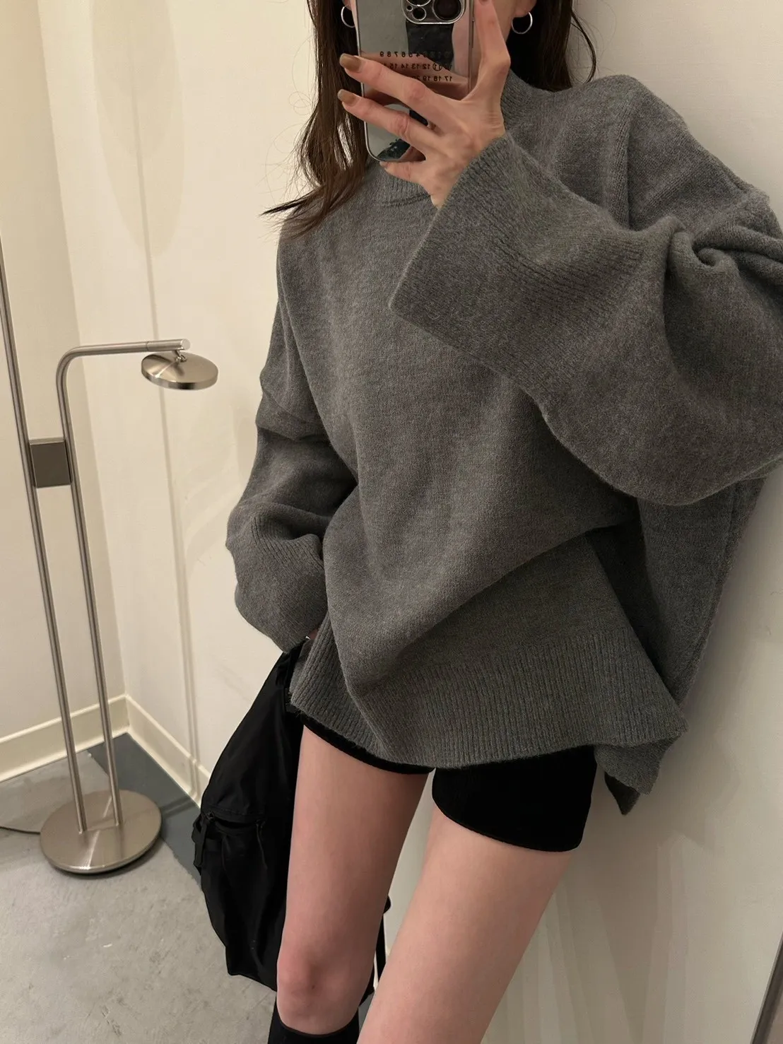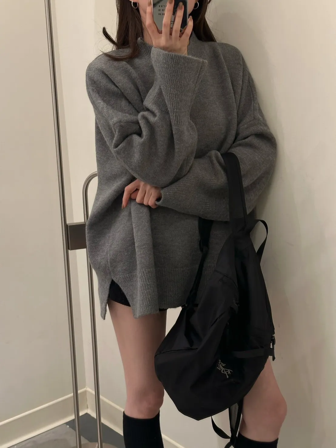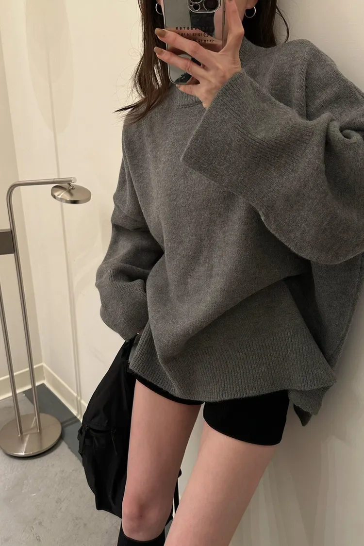 灰色 大推!穿不膩的寬口袖基礎慵懶毛衣