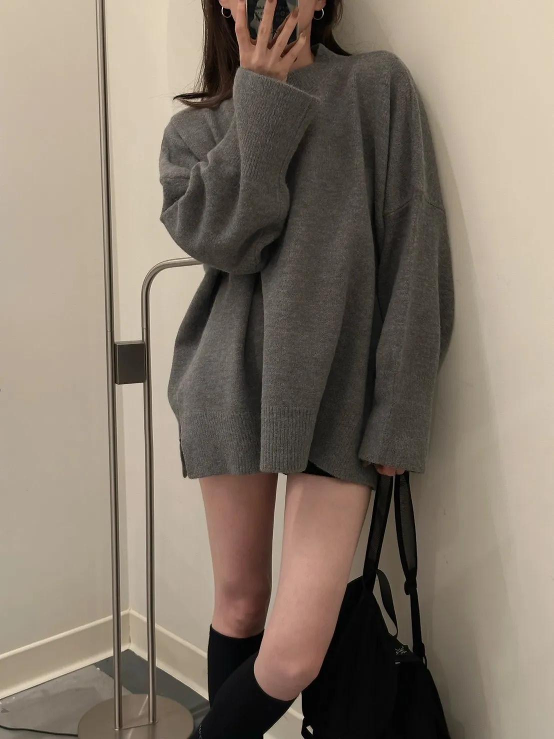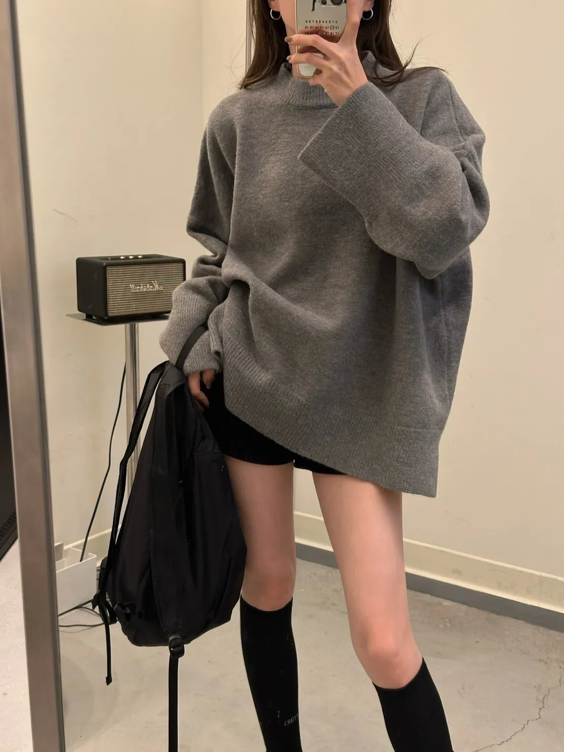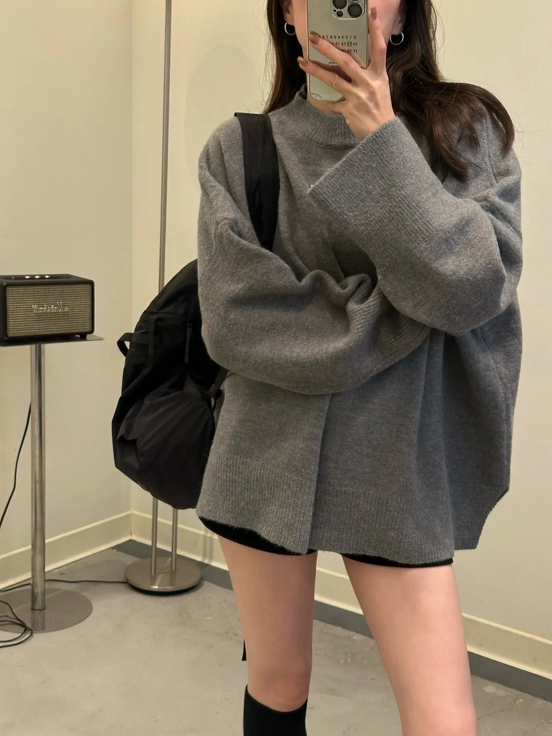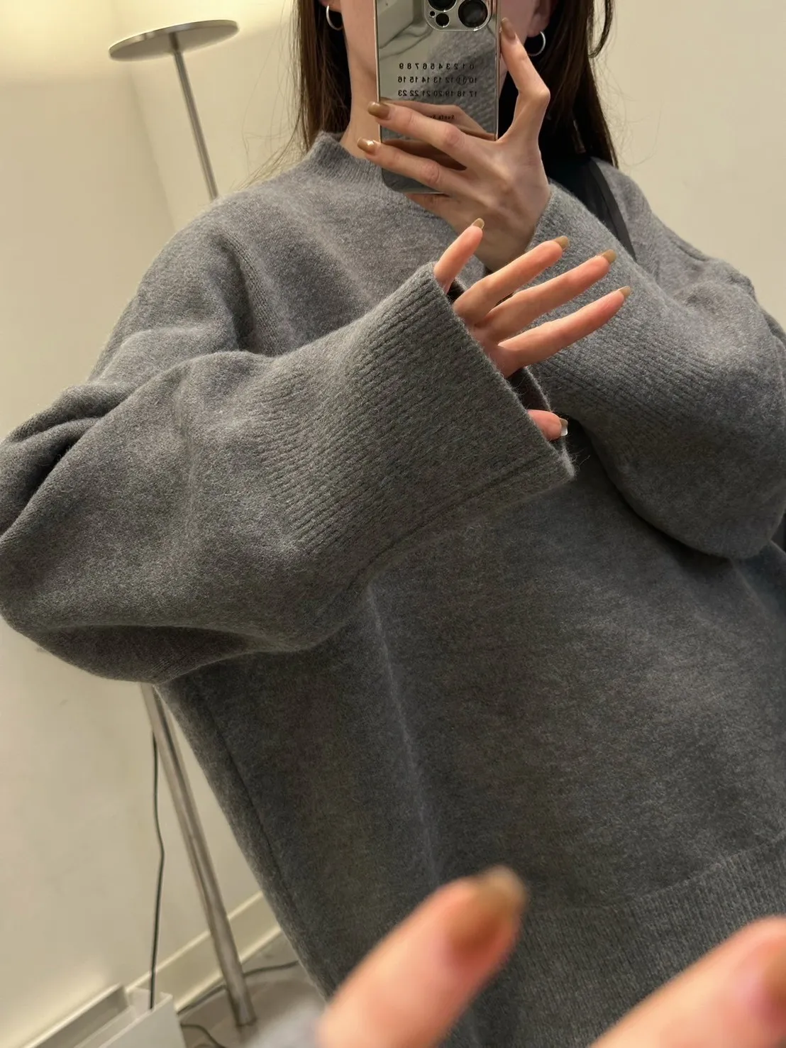 灰色 大推!穿不膩的寬口袖基礎慵懶毛衣