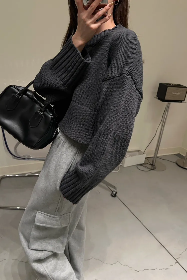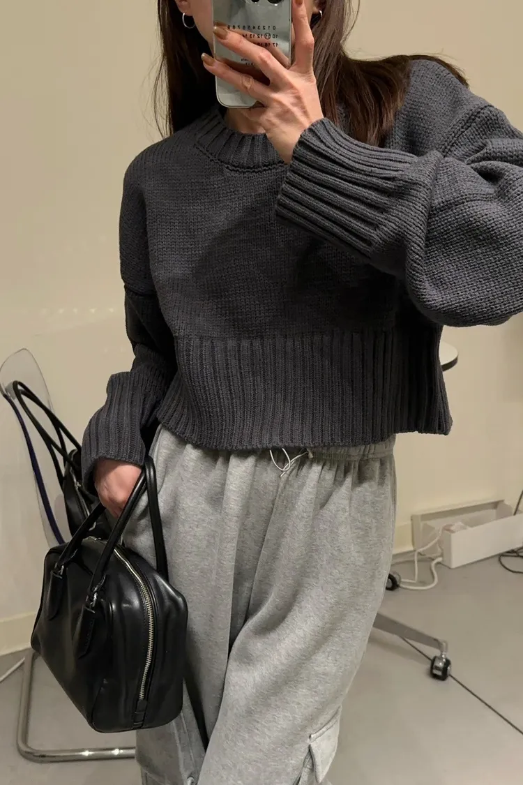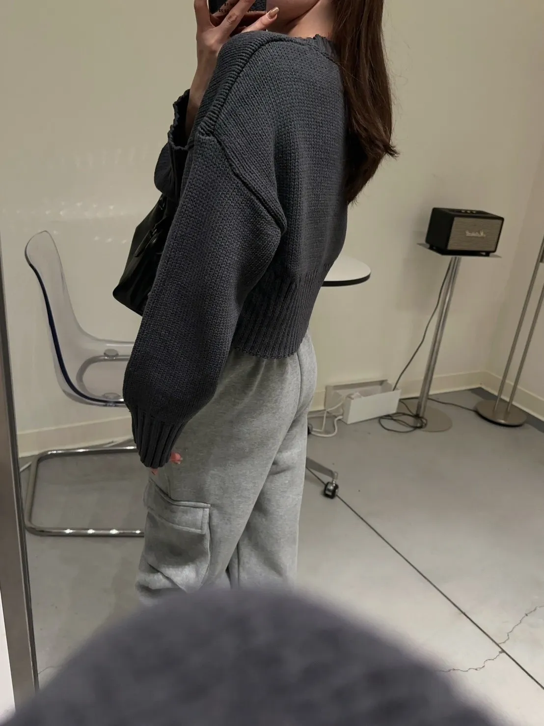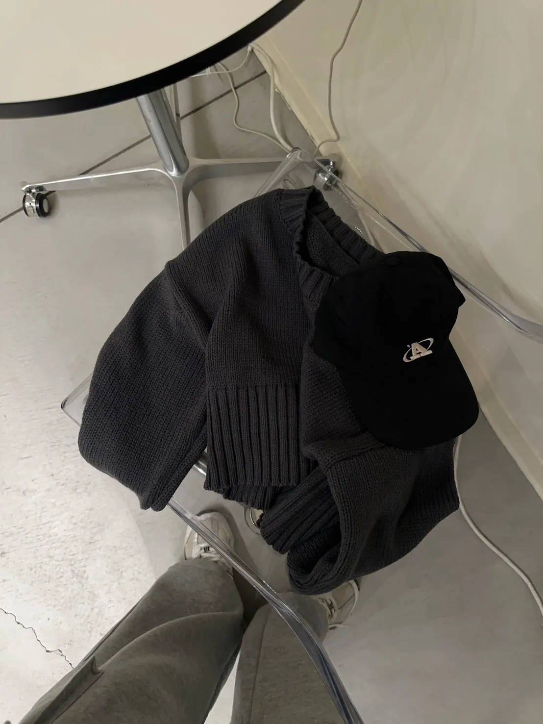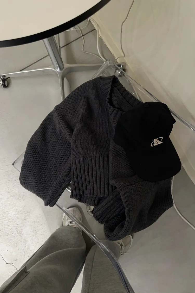 深灰色 大推薦!粗勾織寬版羅紋針織毛衣