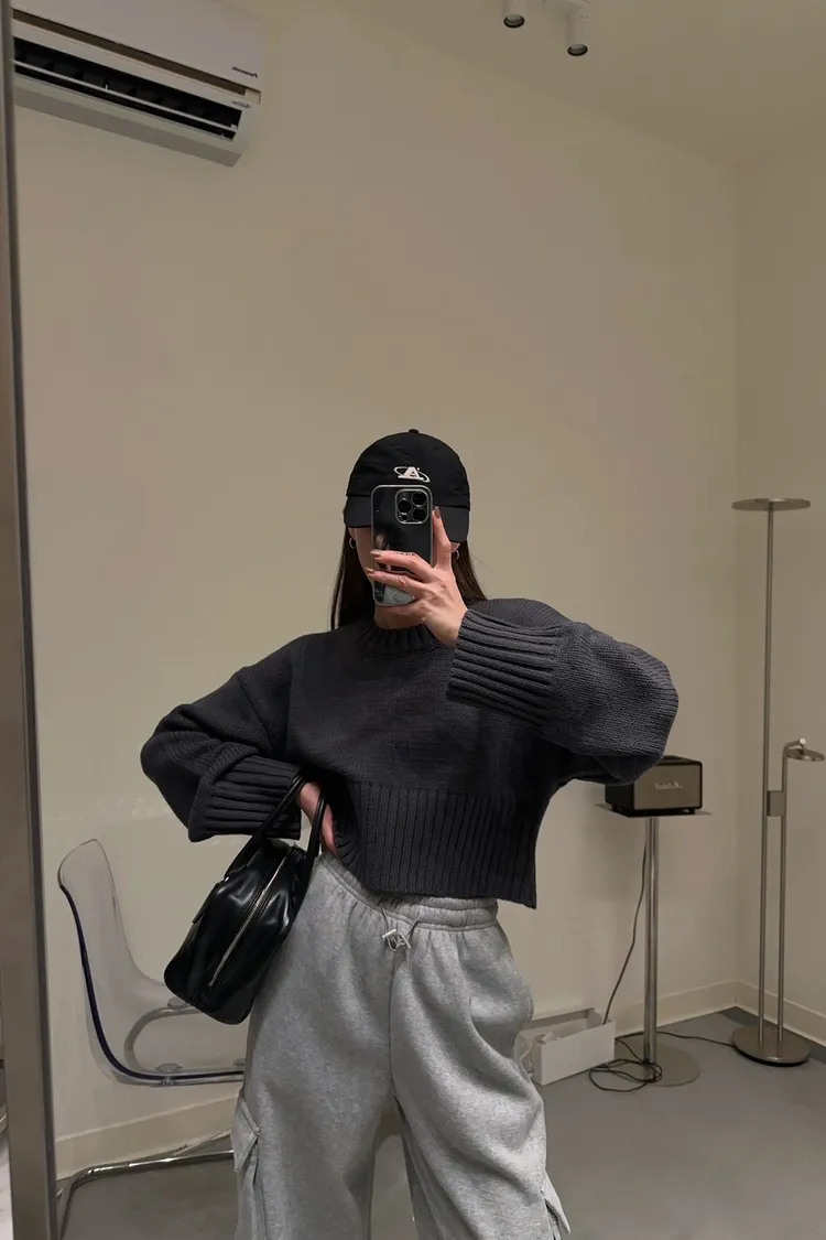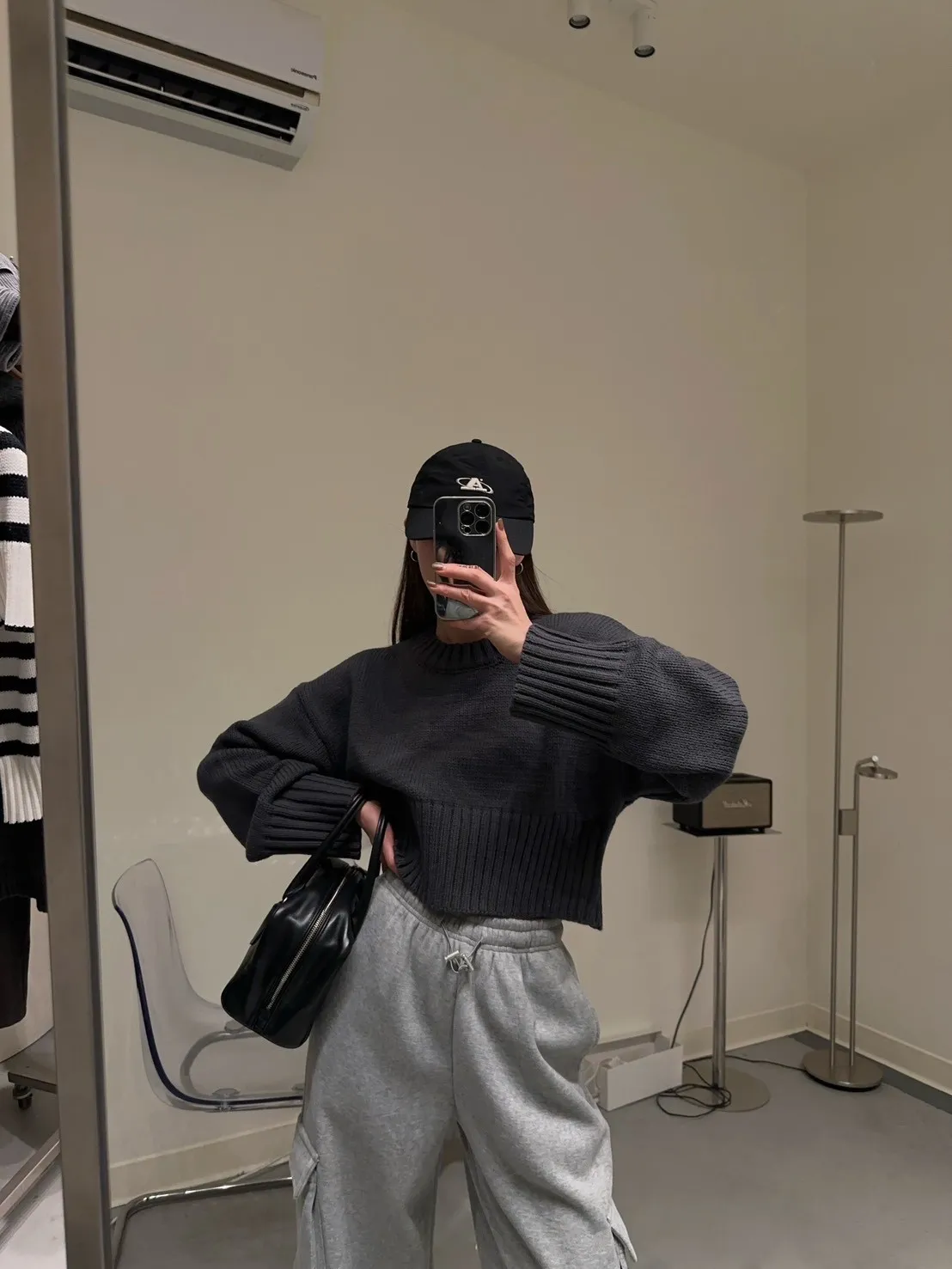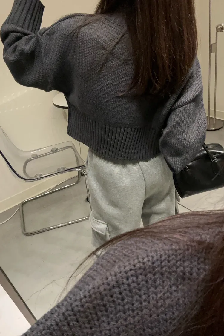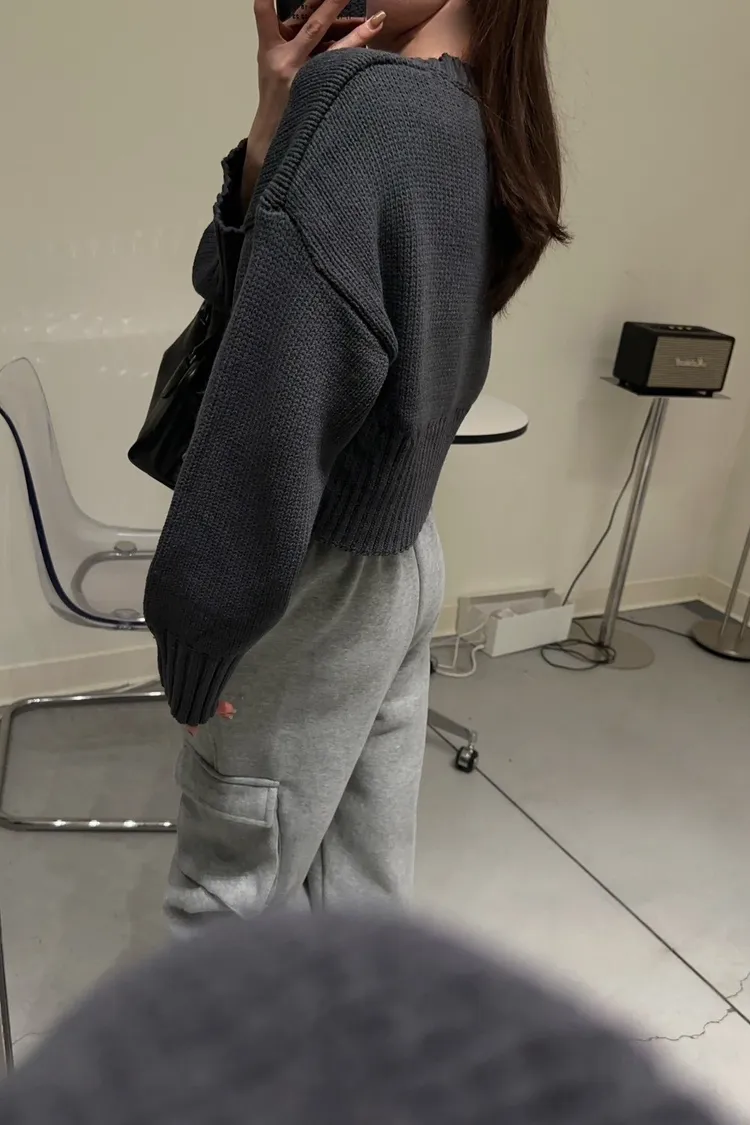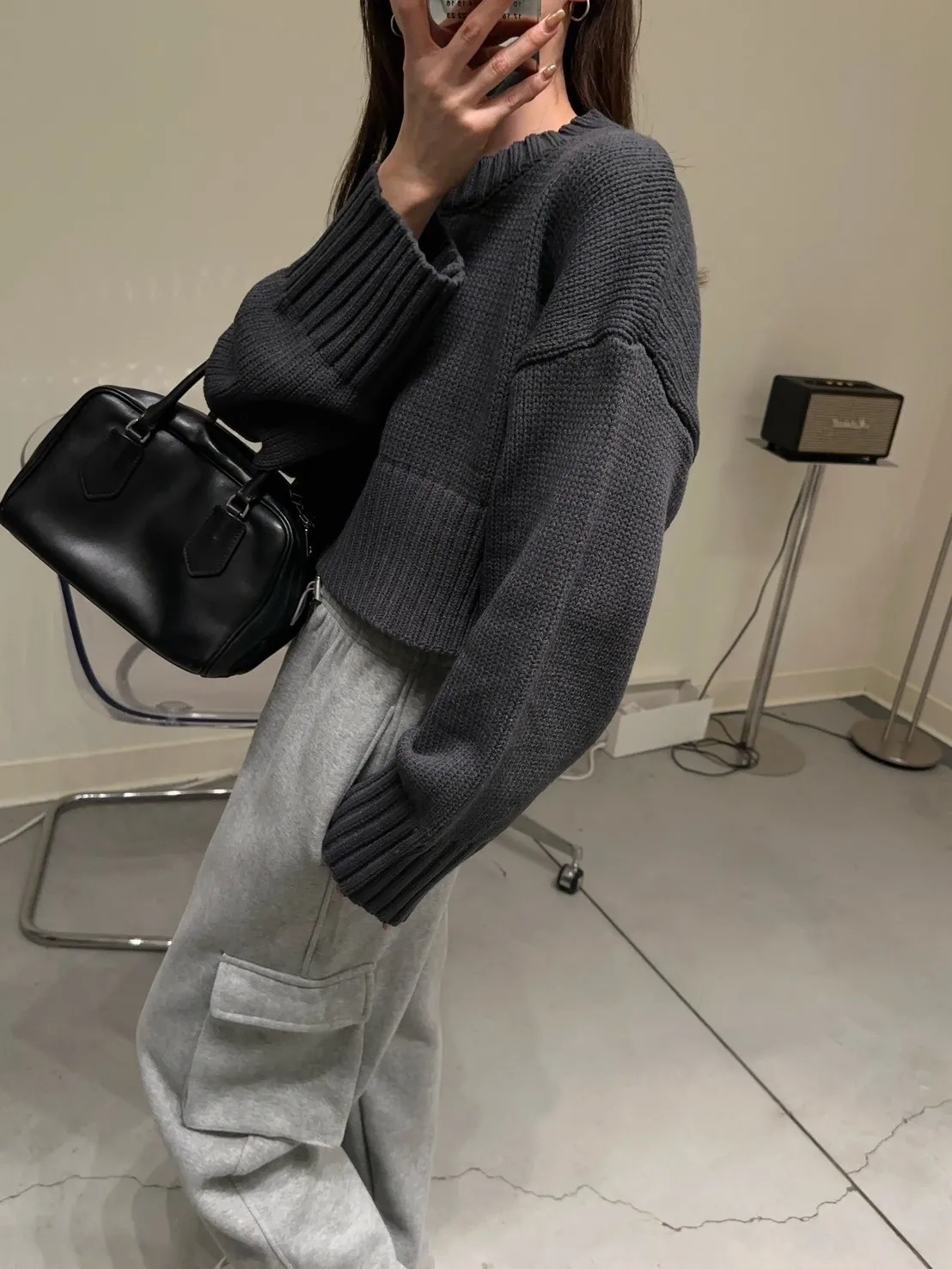 深灰色 大推薦!粗勾織寬版羅紋針織毛衣