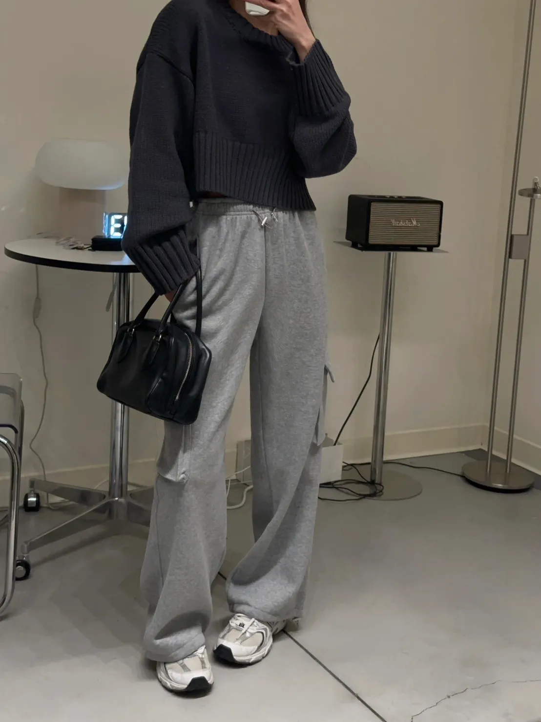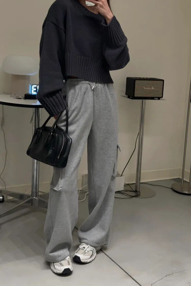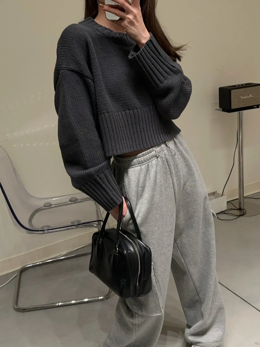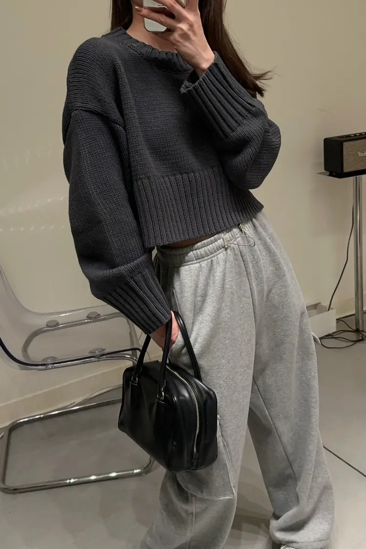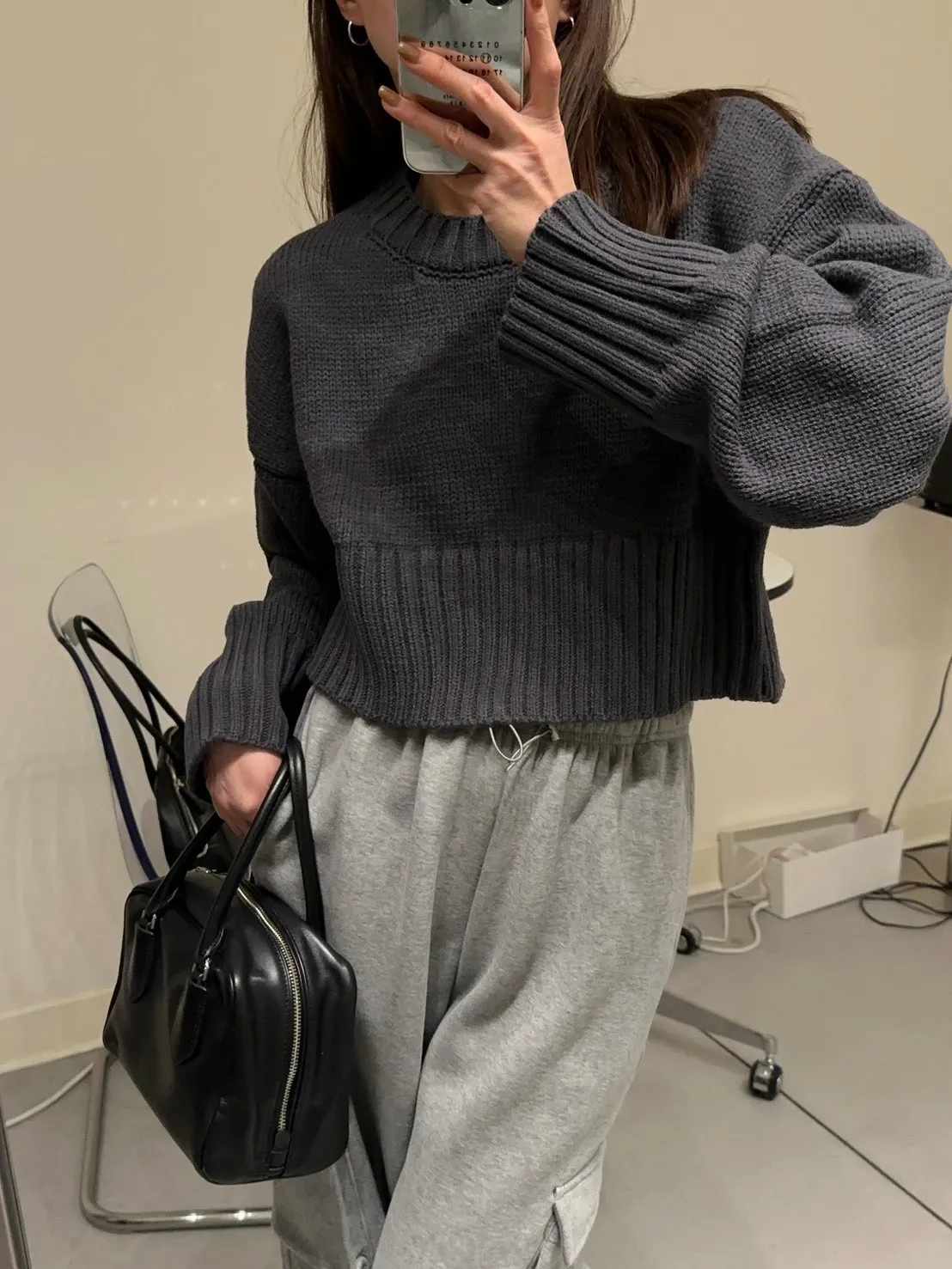 深灰色 大推薦!粗勾織寬版羅紋針織毛衣