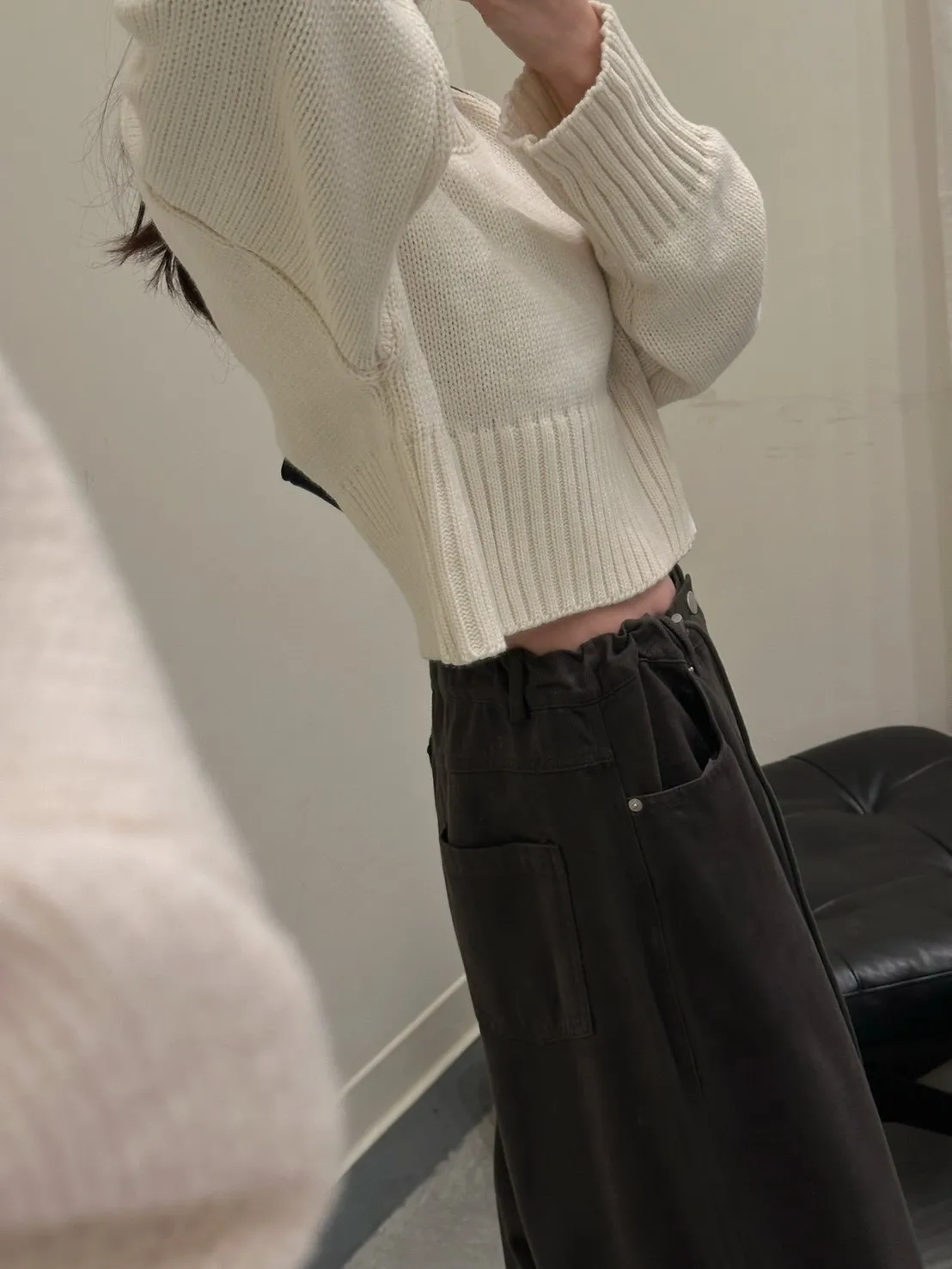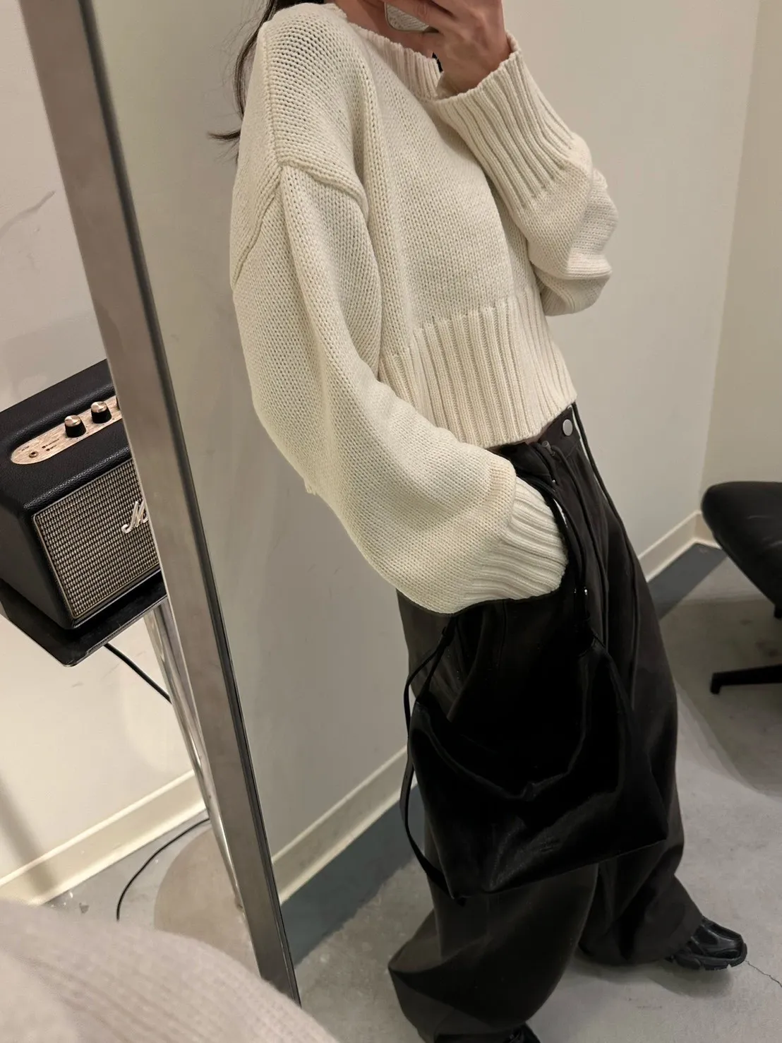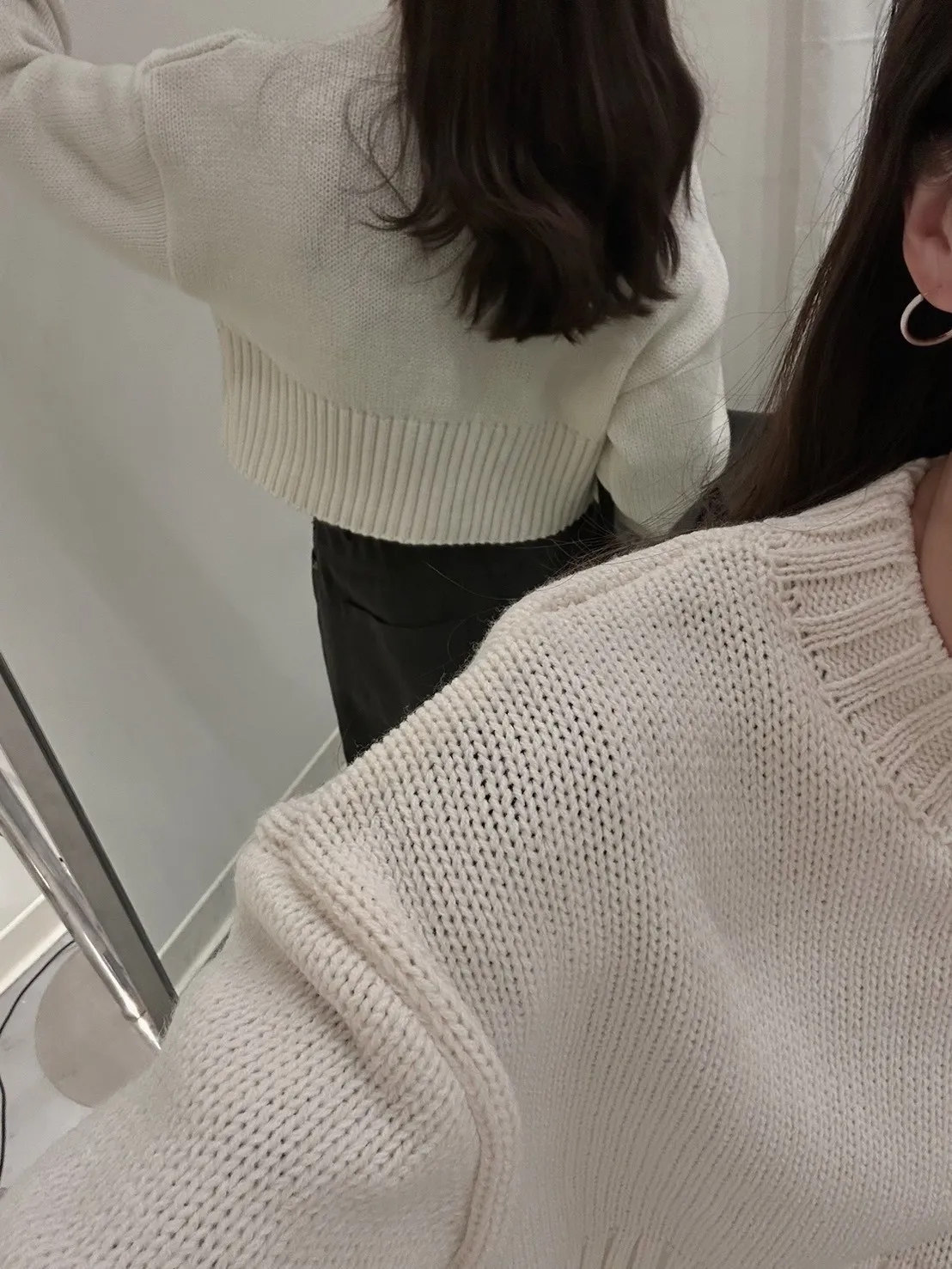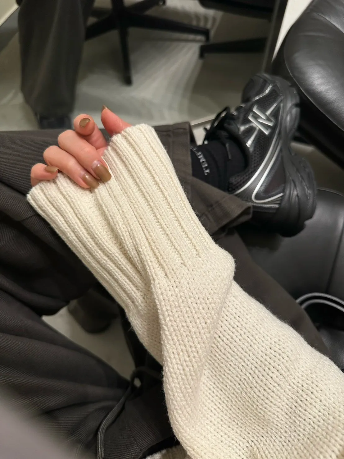 奶白色 大推薦!粗勾織寬版羅紋針織毛衣