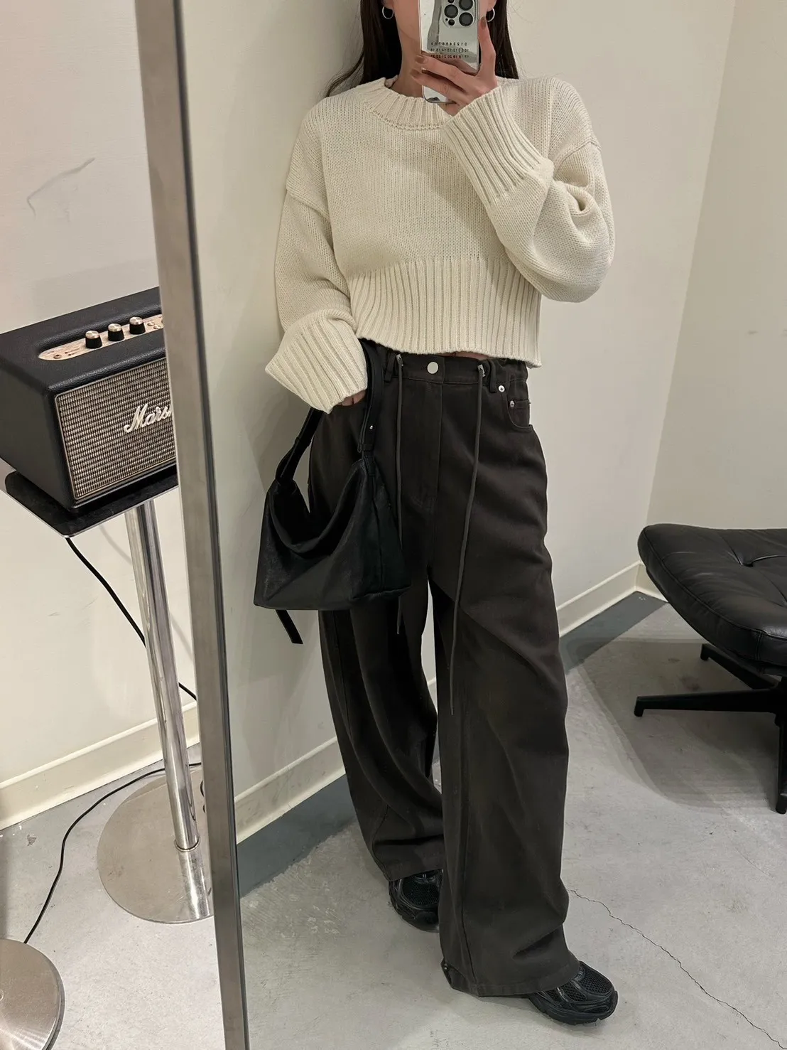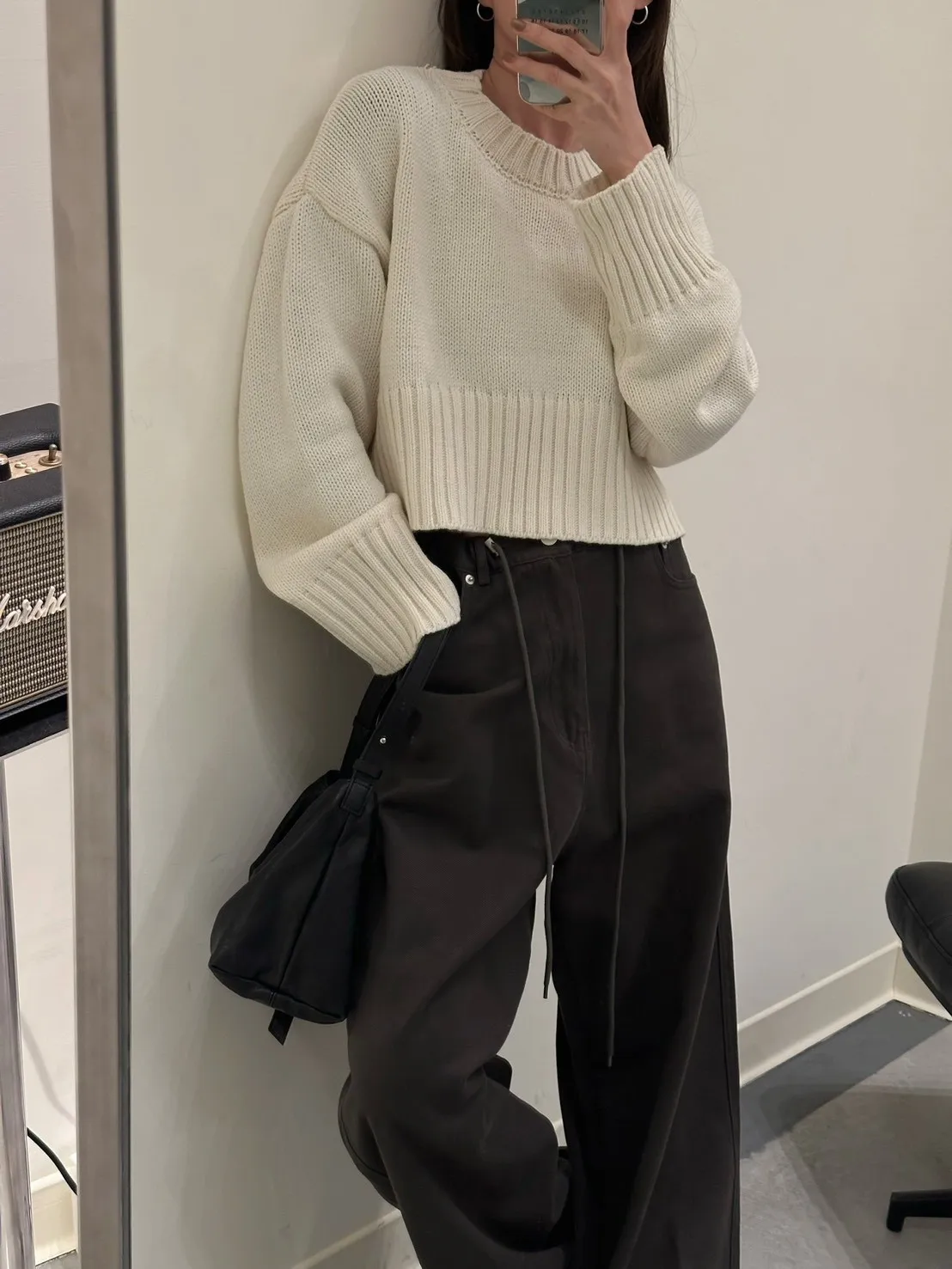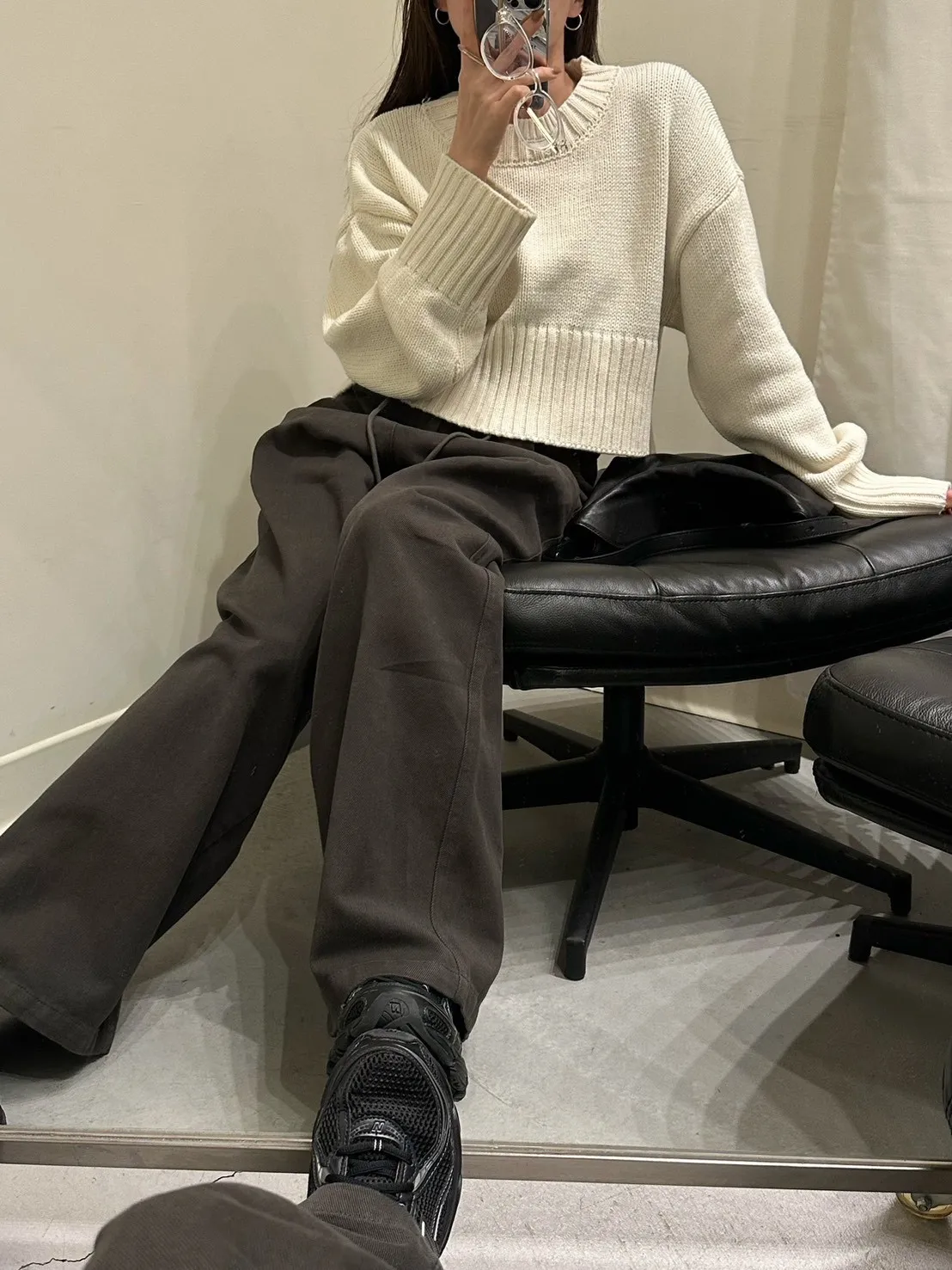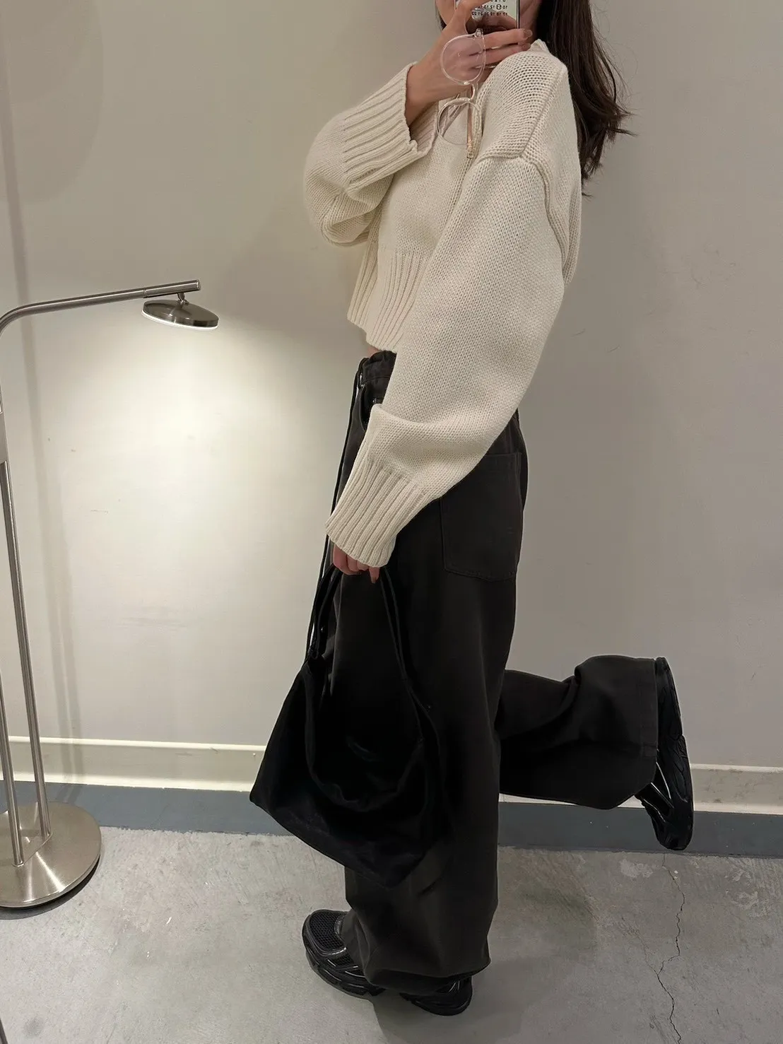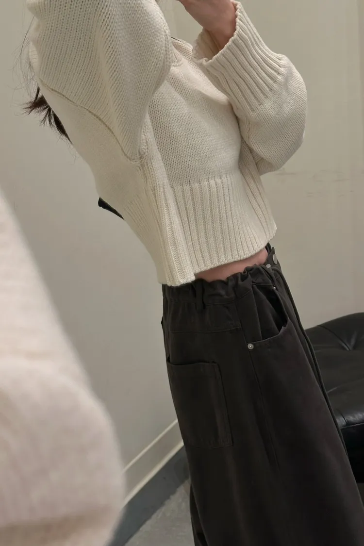 奶白色 大推薦!粗勾織寬版羅紋針織毛衣