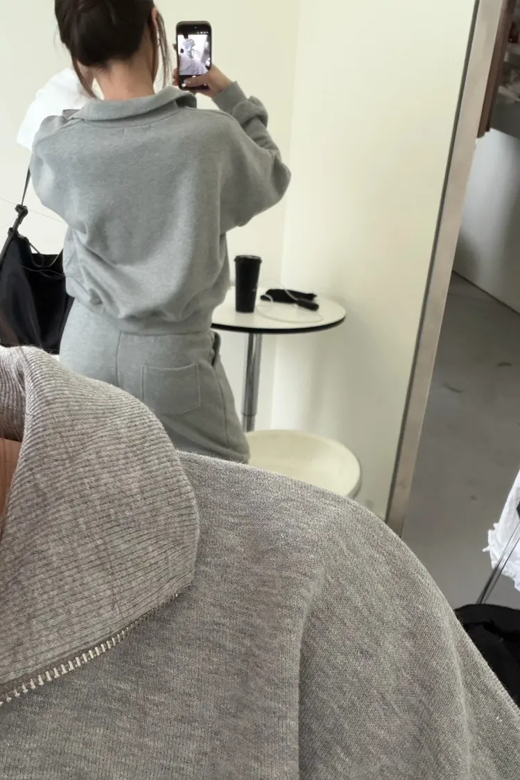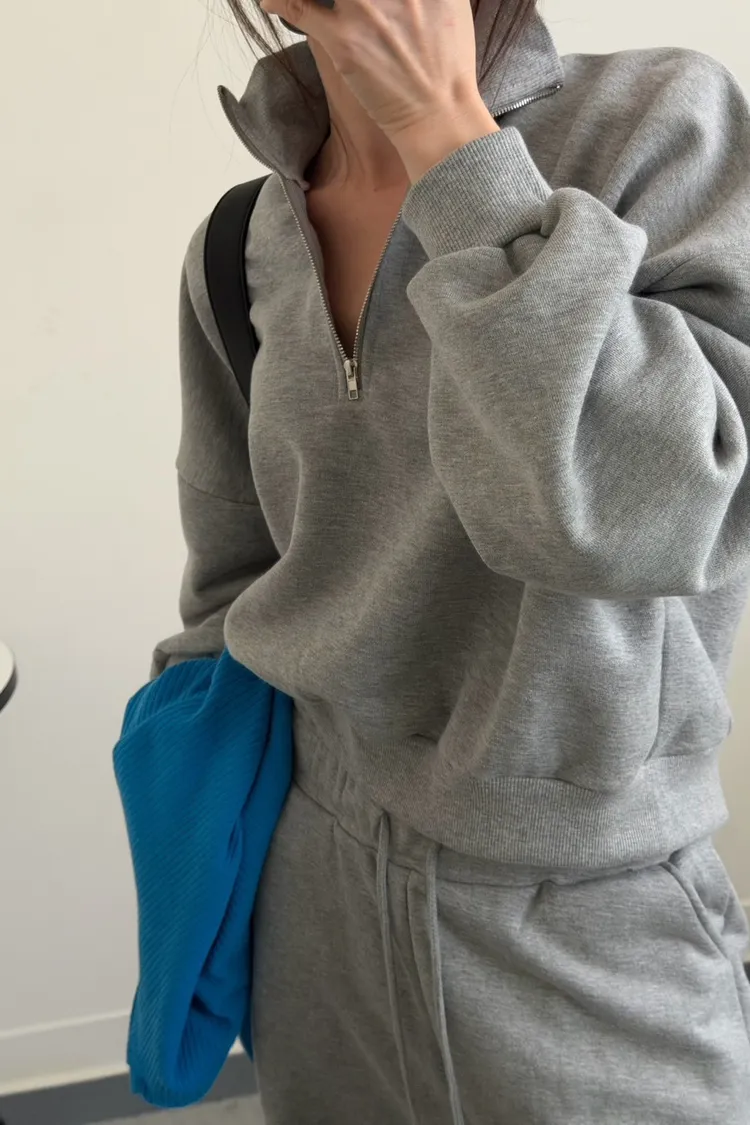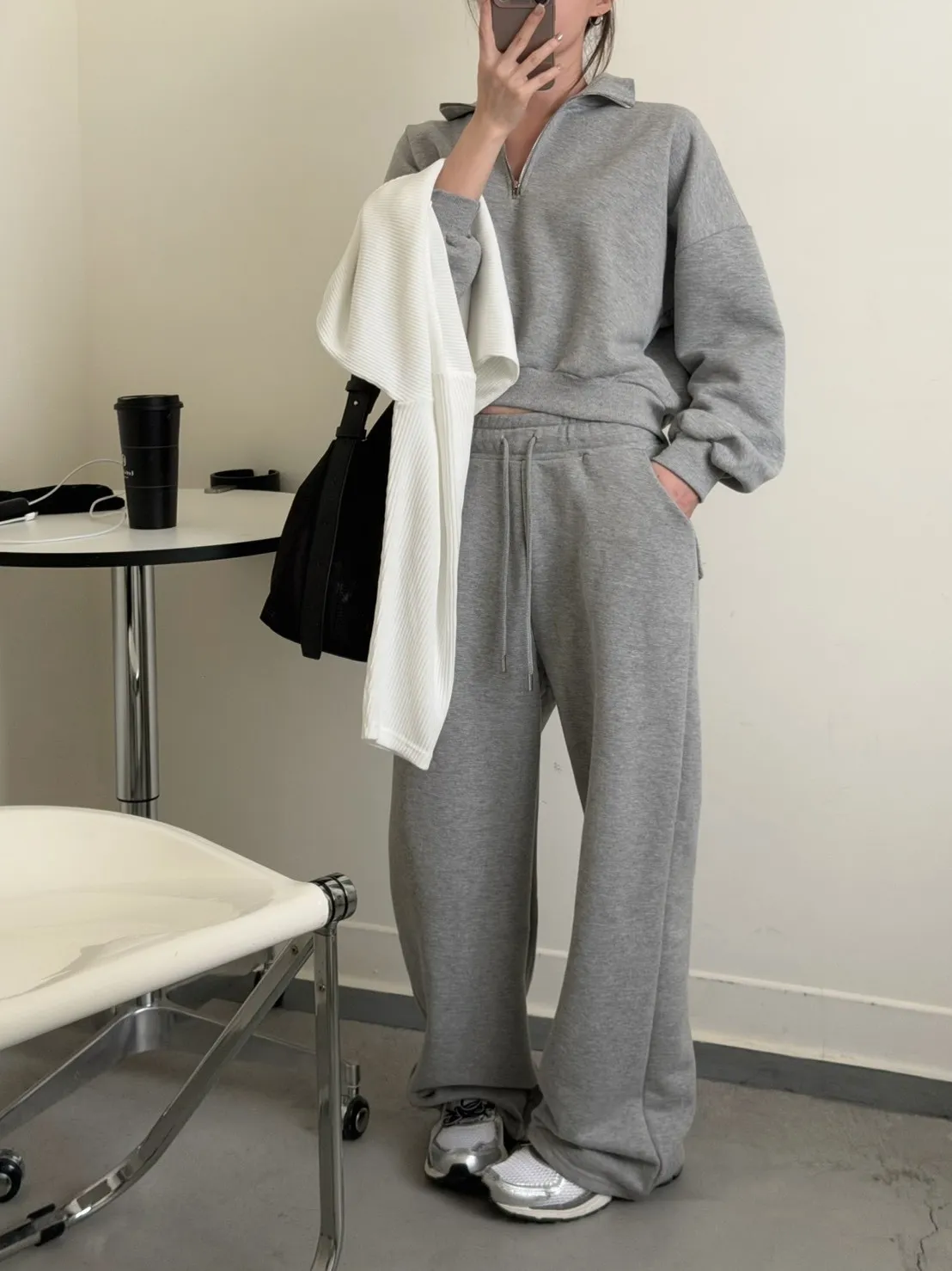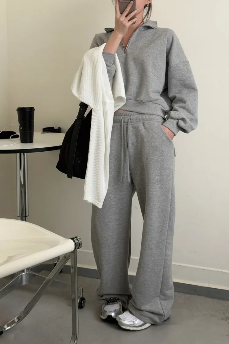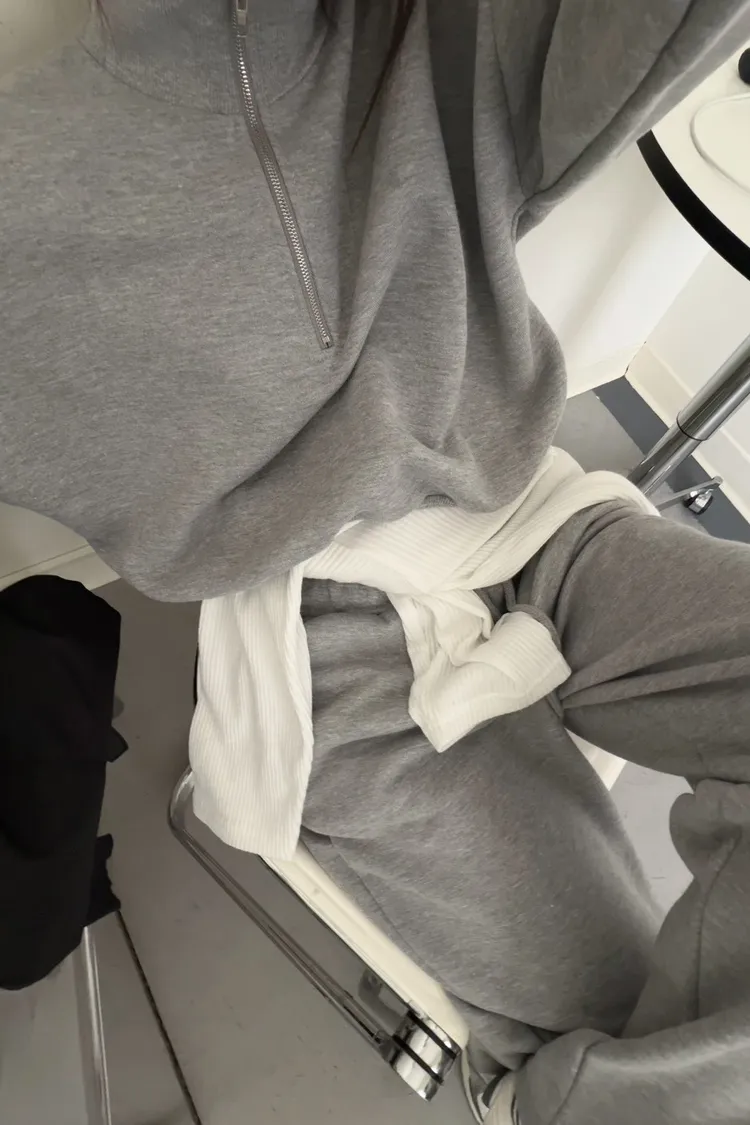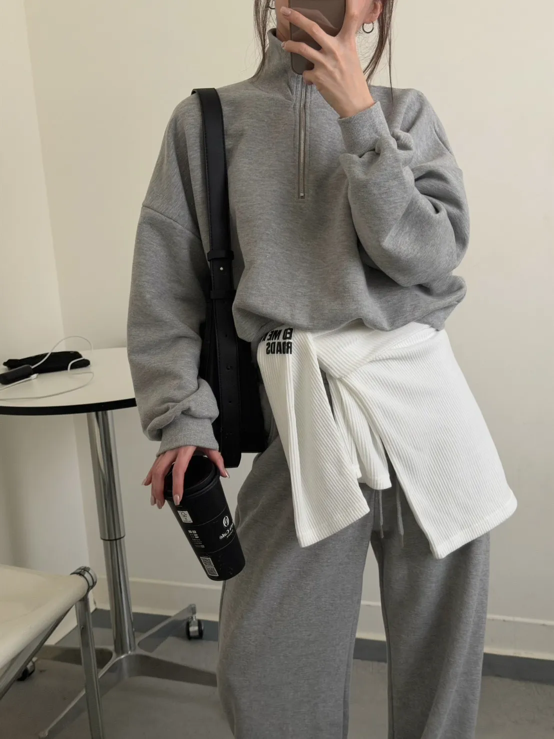 KOREA 灰色 拉鍊立領tee+長褲SET