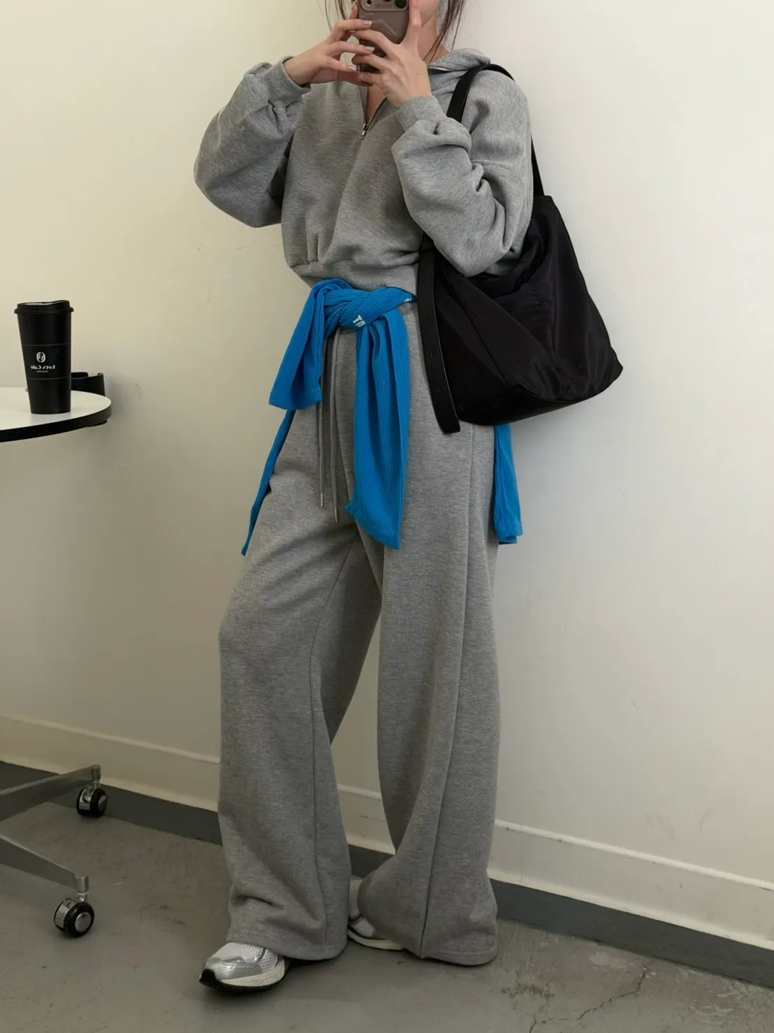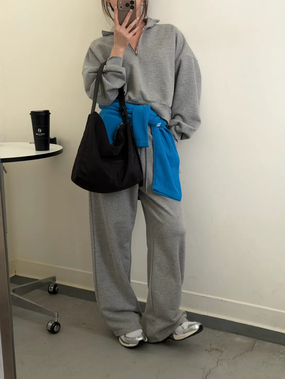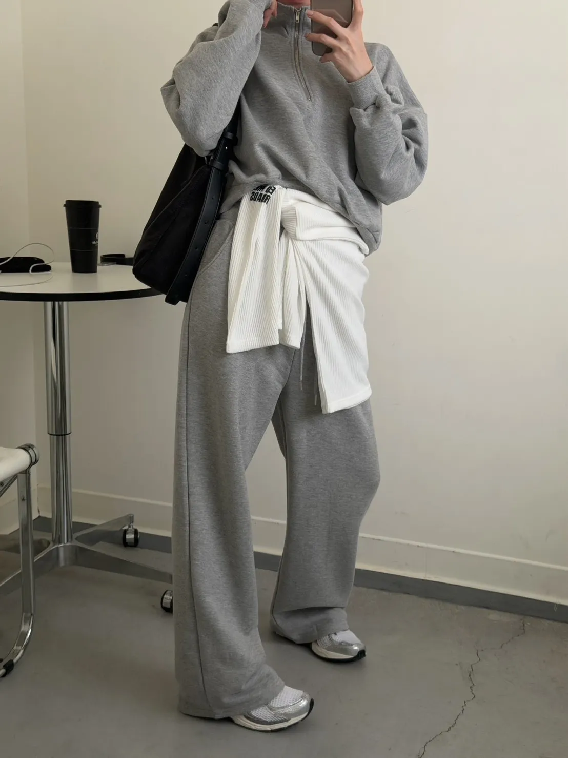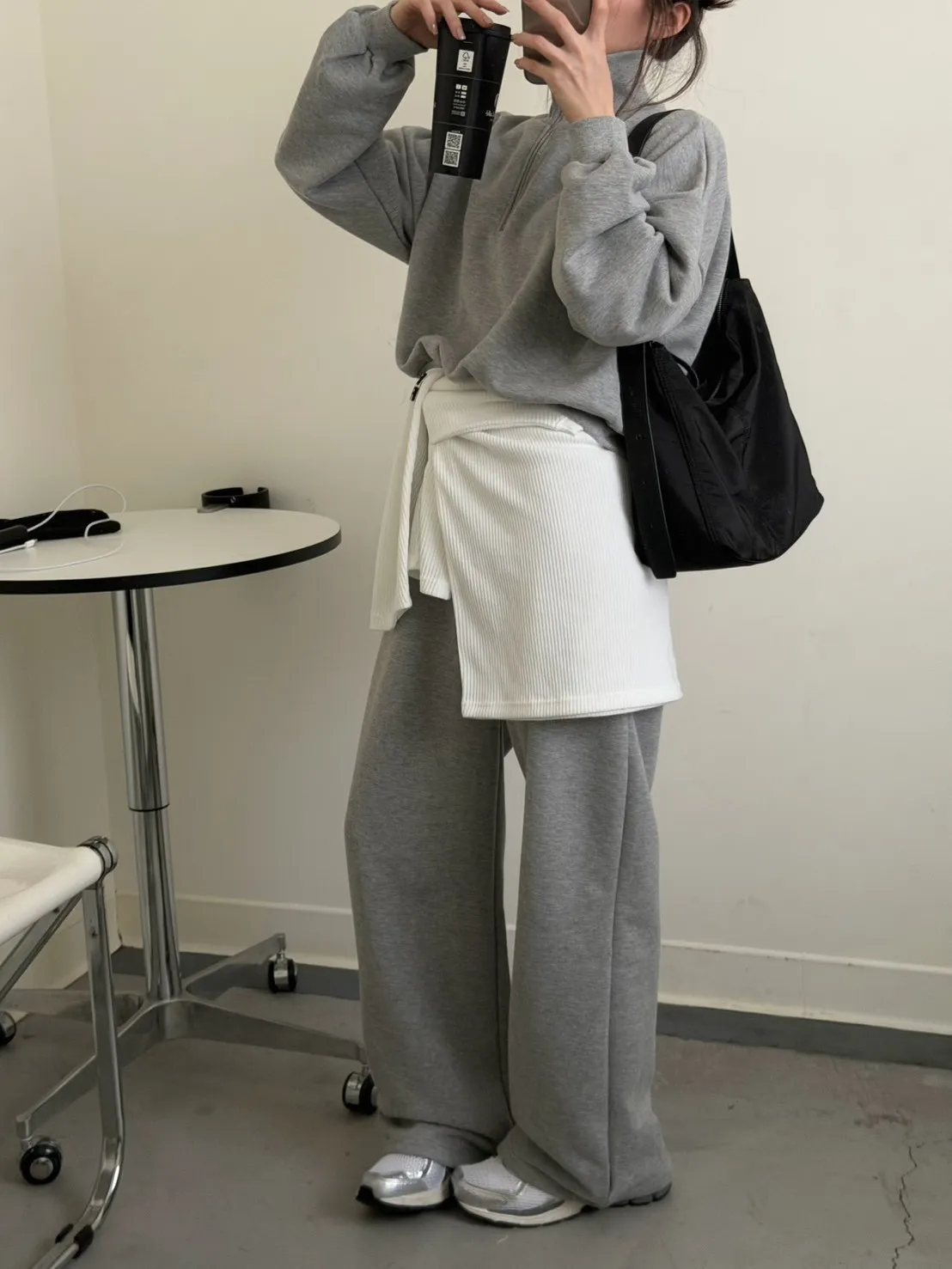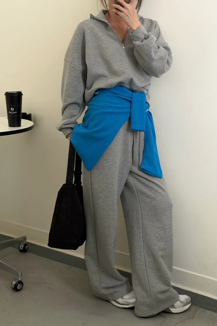 KOREA 灰色 拉鍊立領tee+長褲SET