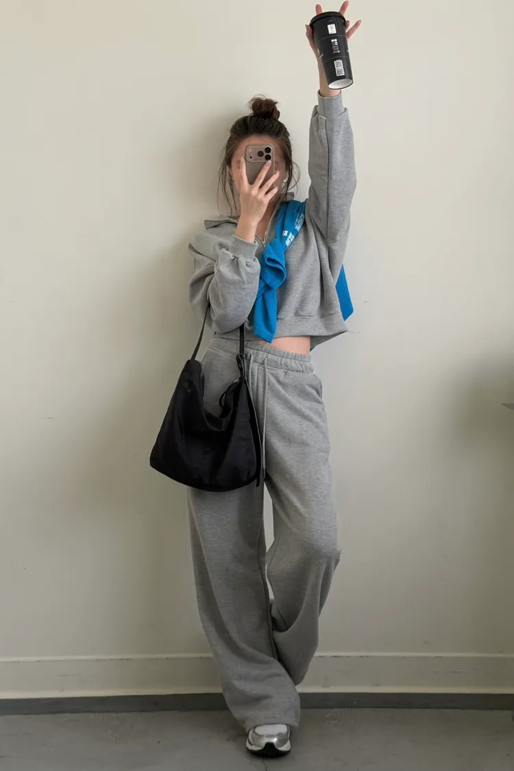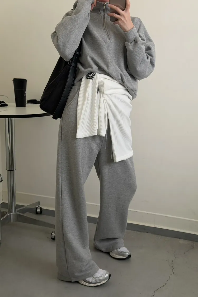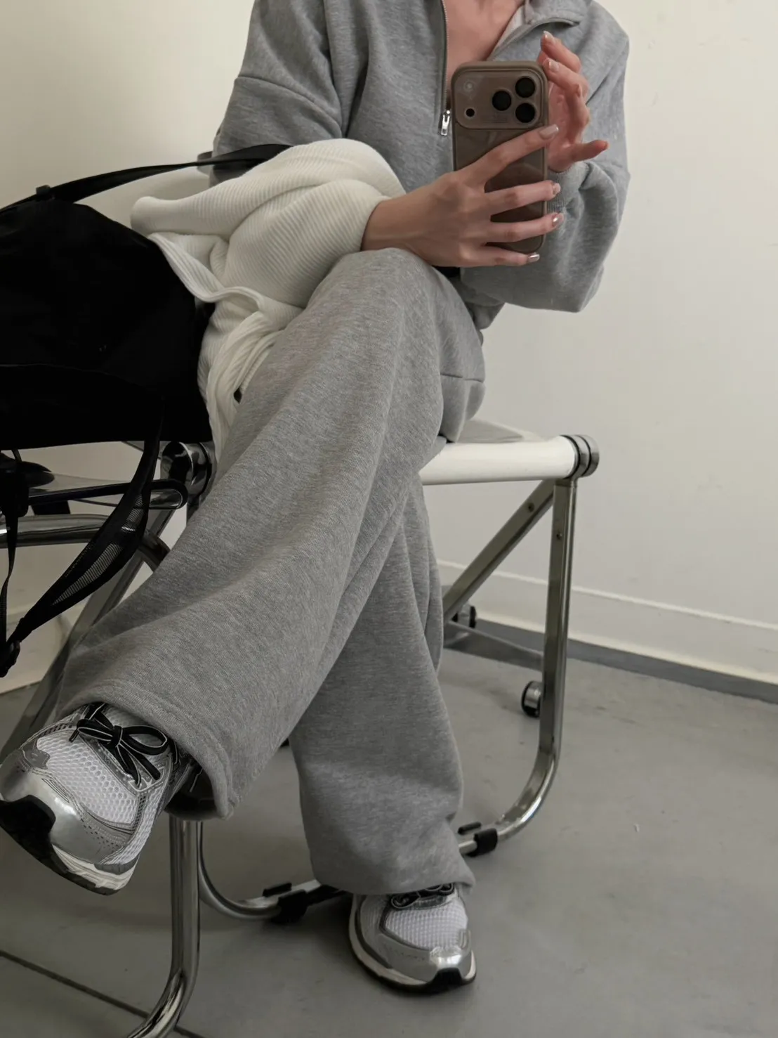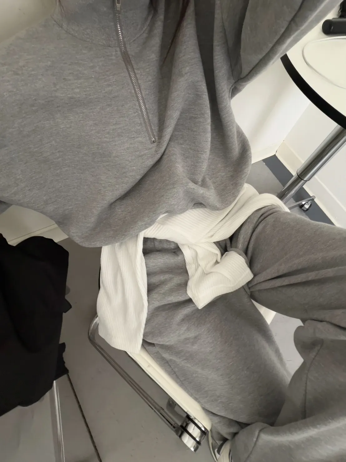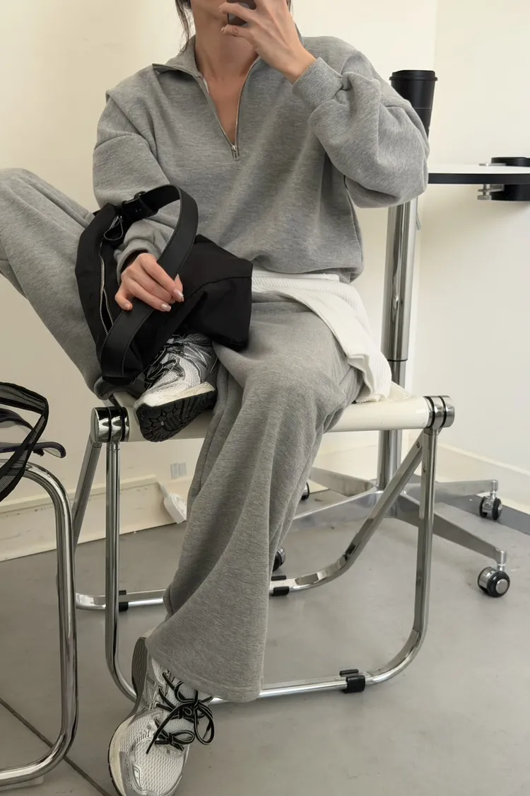 KOREA 灰色 拉鍊立領tee+長褲SET
