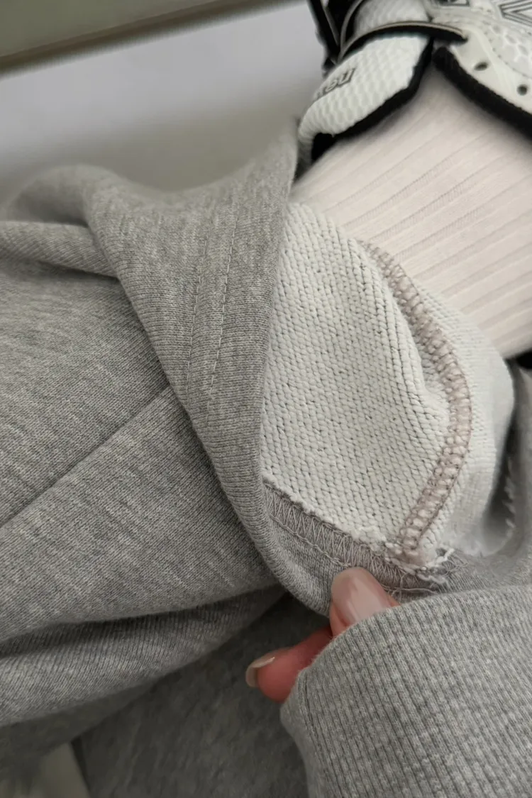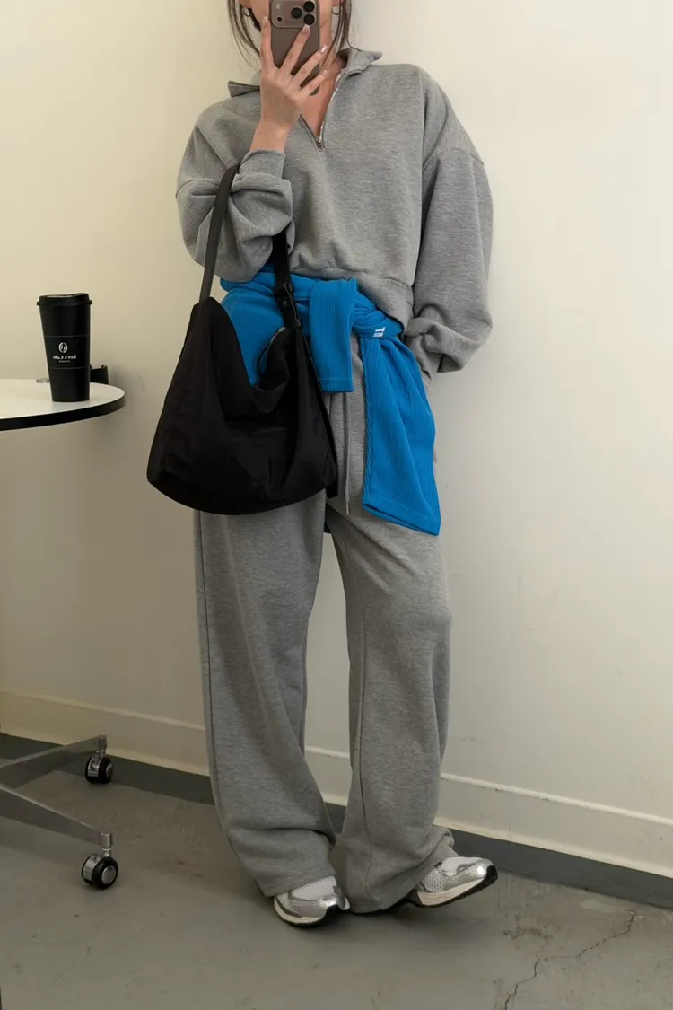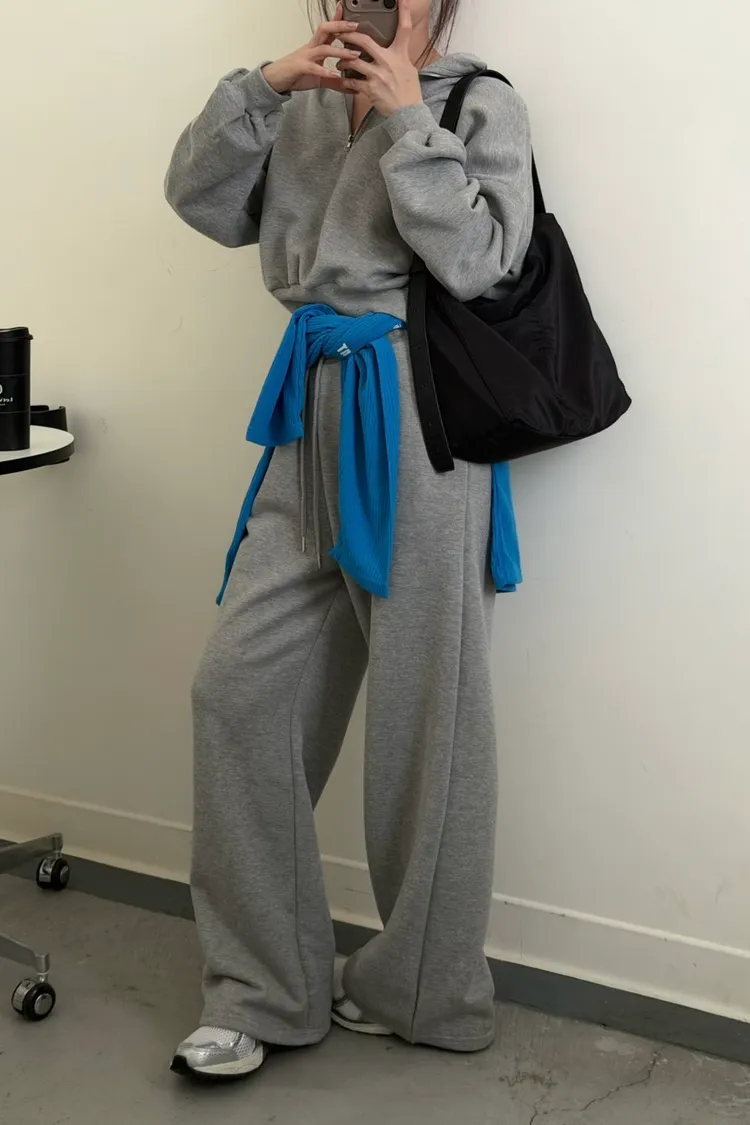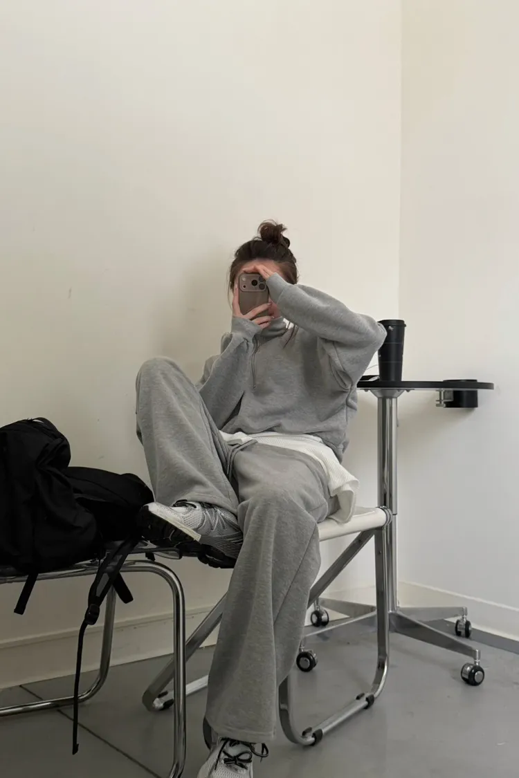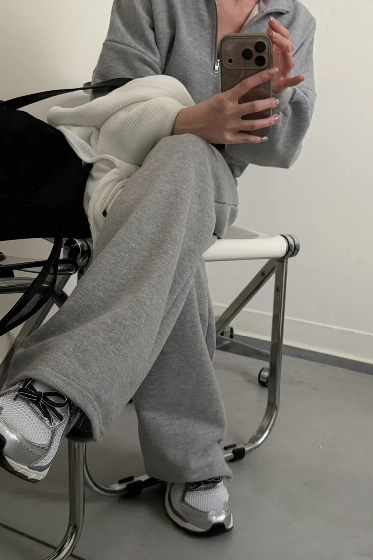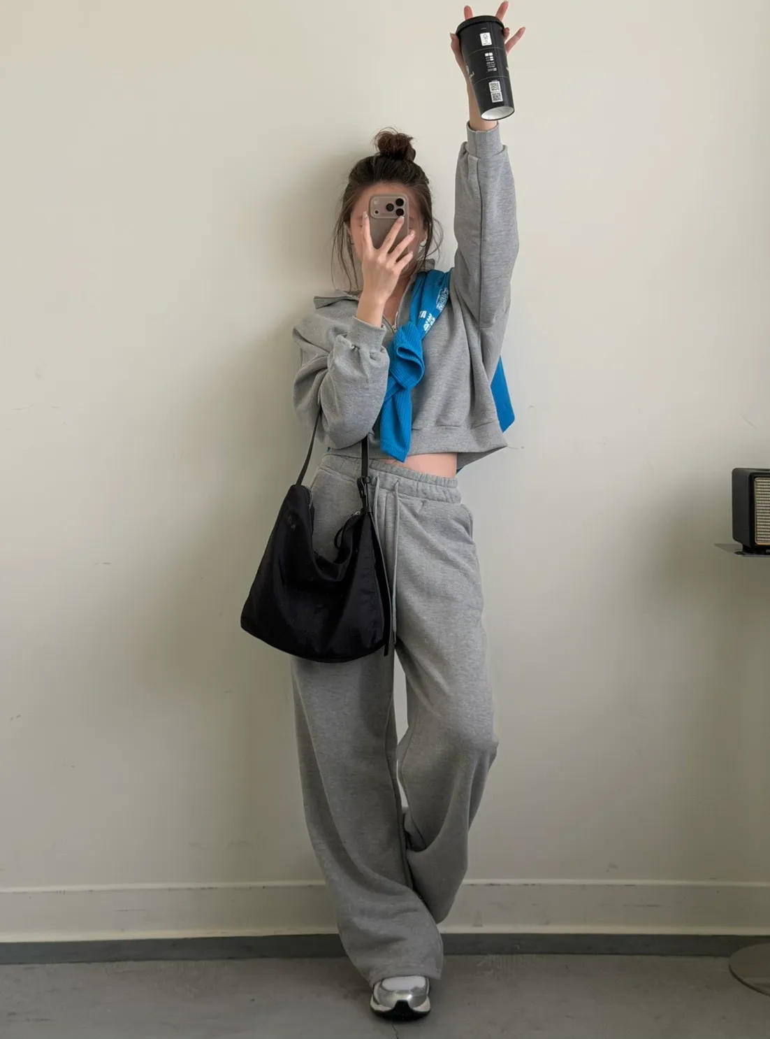 KOREA 灰色 拉鍊立領tee+長褲SET
