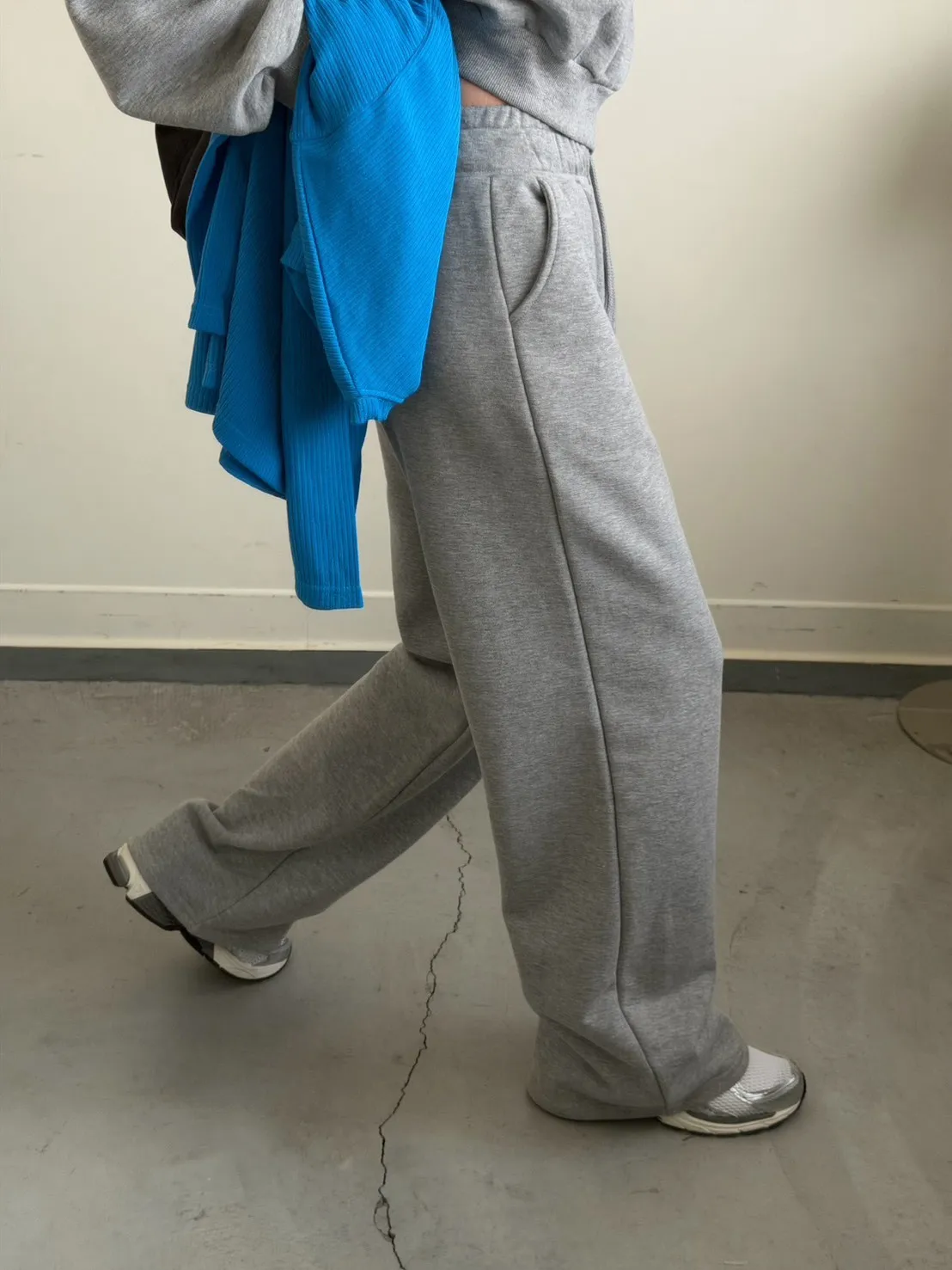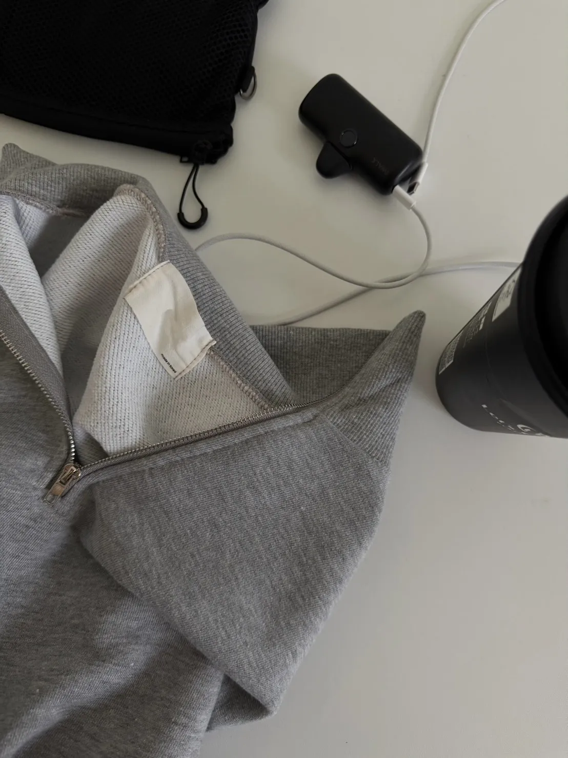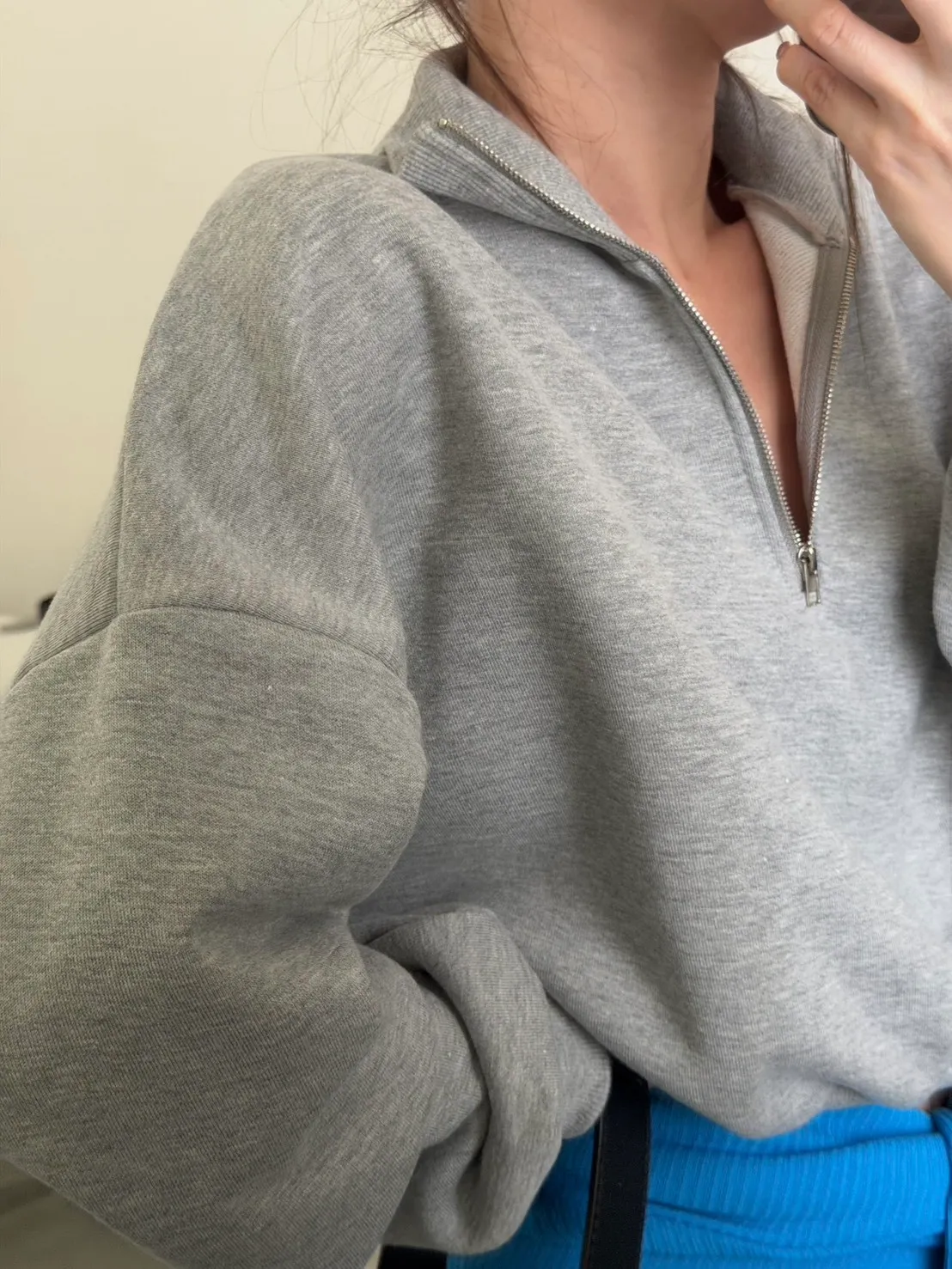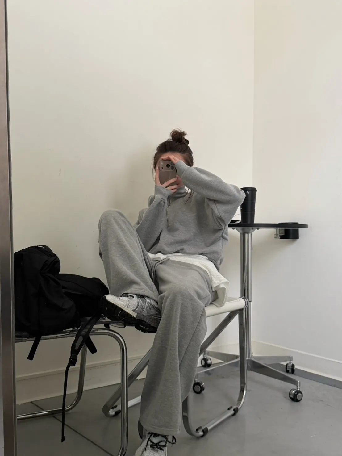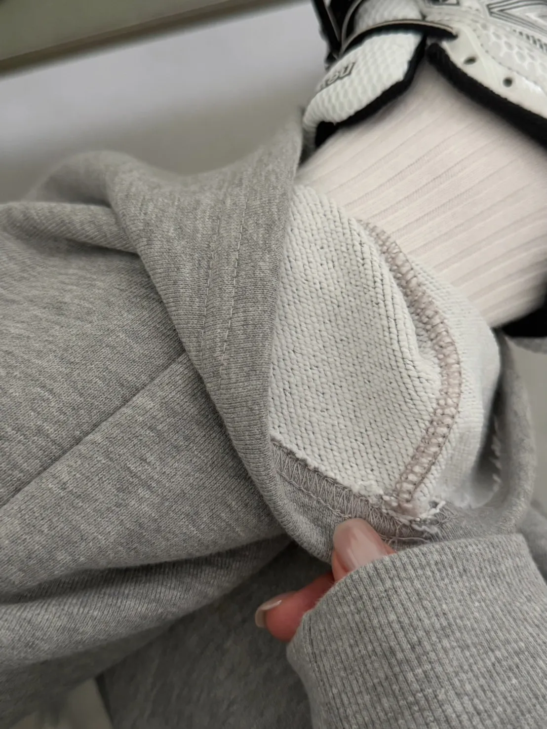 KOREA 灰色 拉鍊立領tee+長褲SET