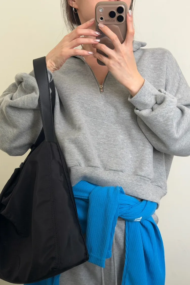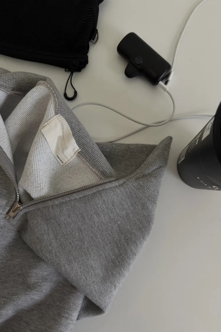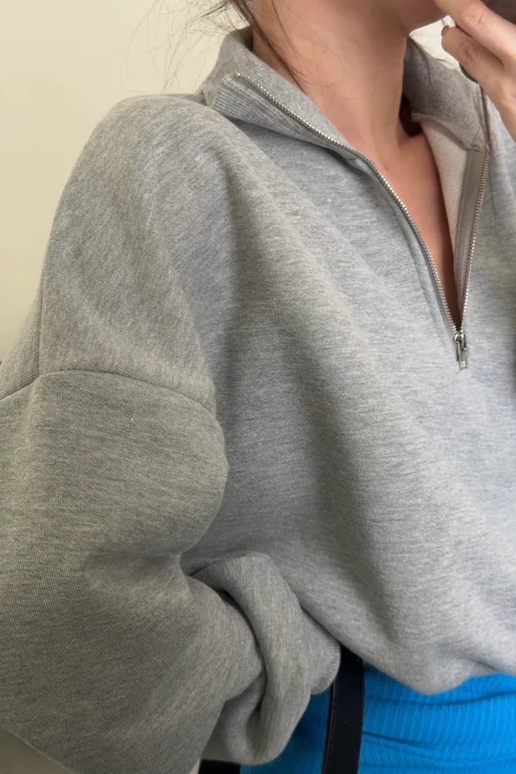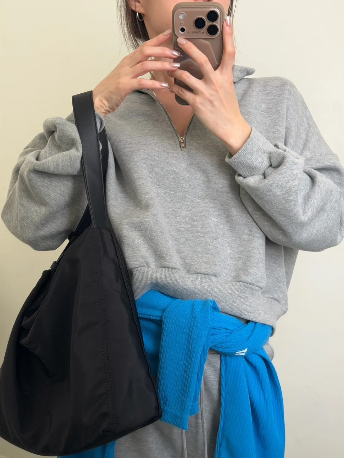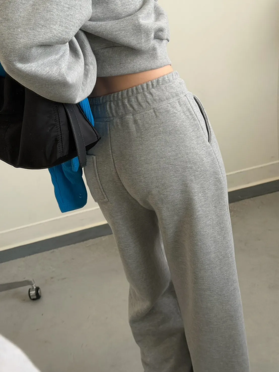 KOREA 灰色 拉鍊立領tee+長褲SET