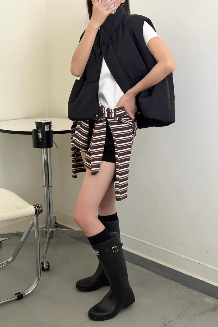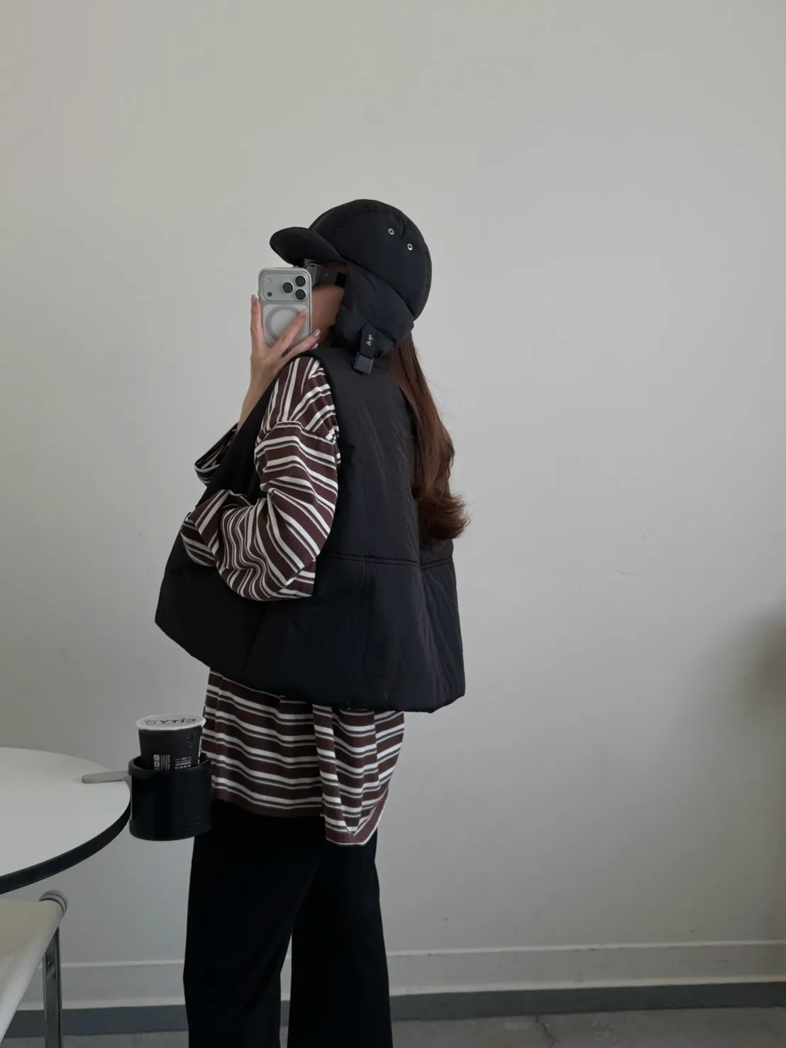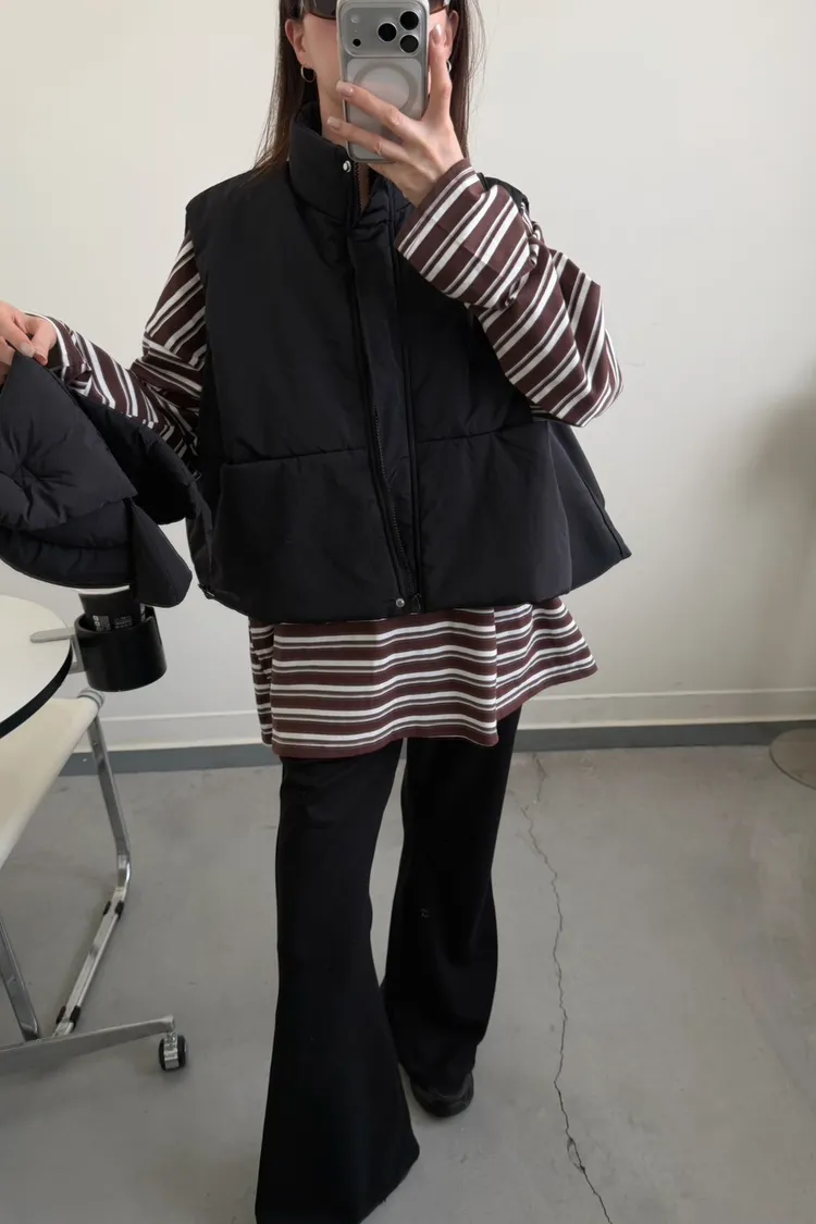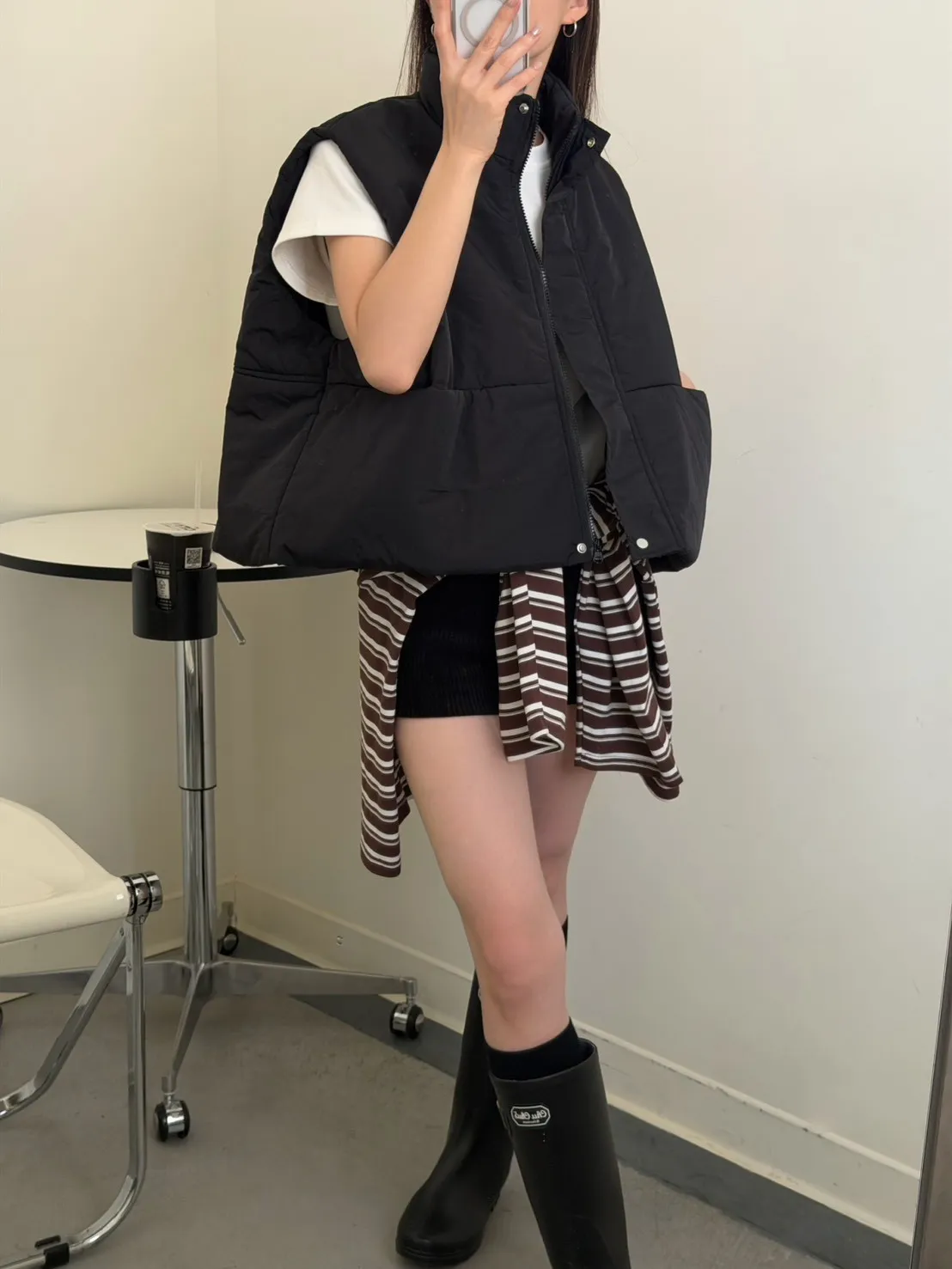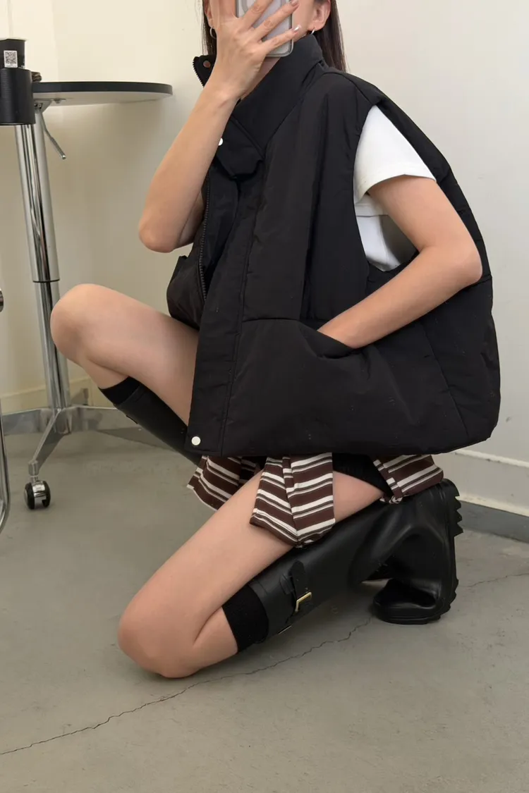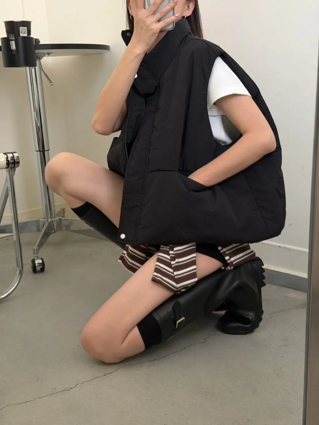 Korea 黑色 輕量感保暖鋪棉背心(下擺抽繩)
