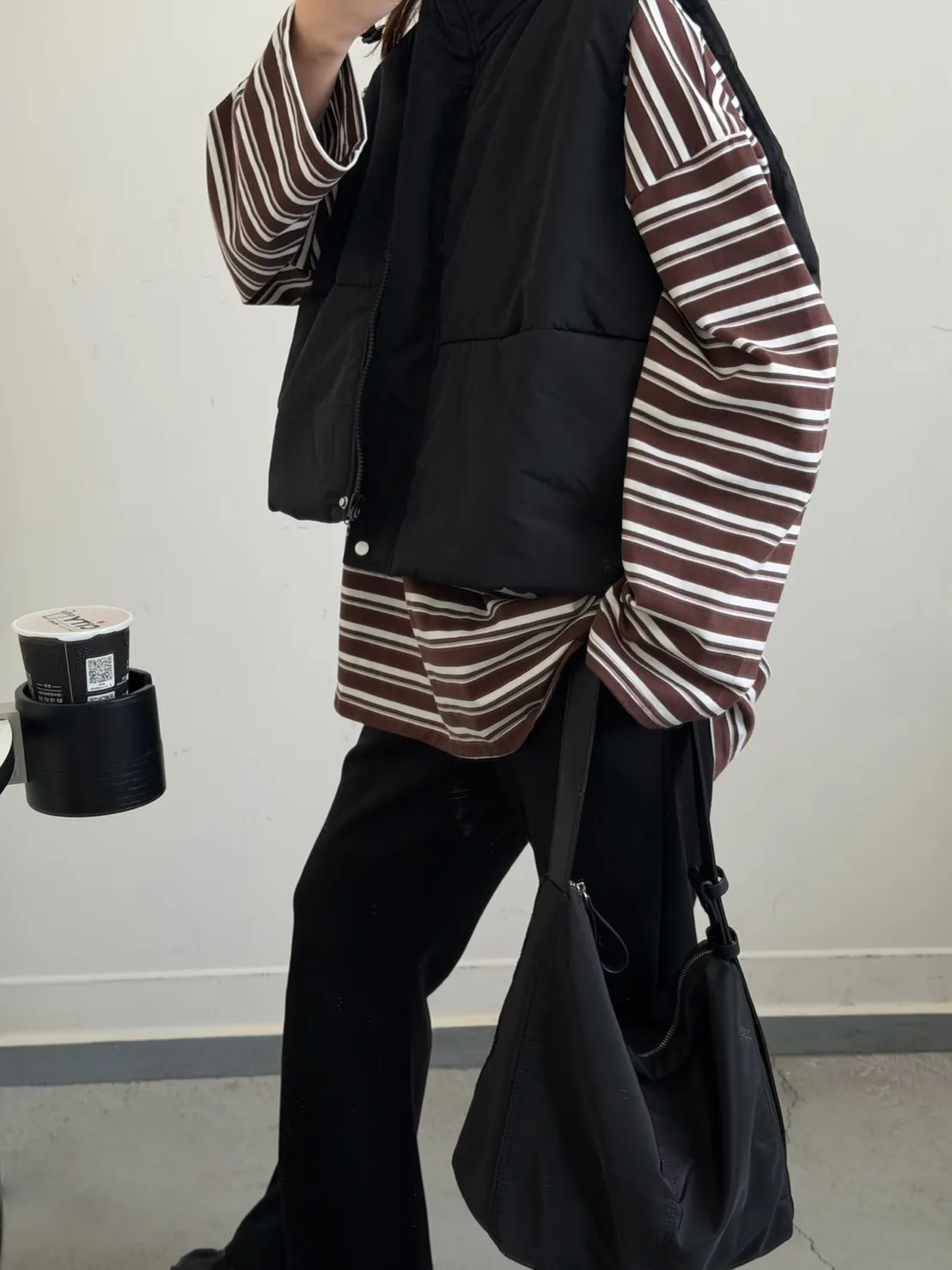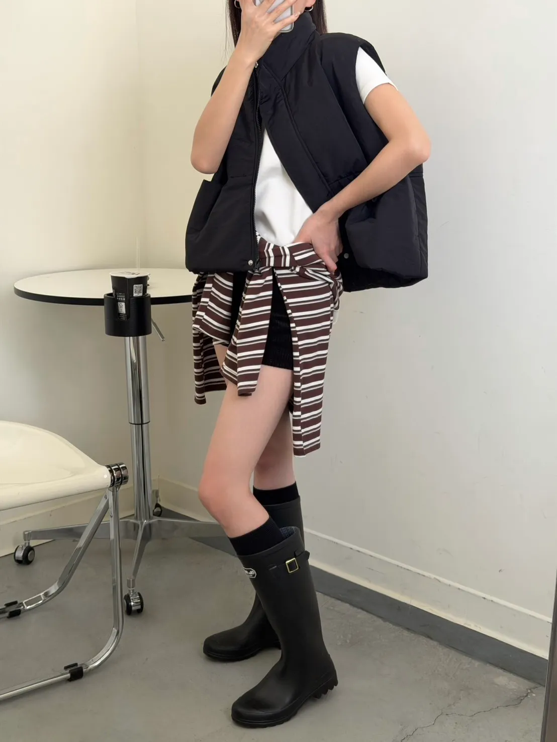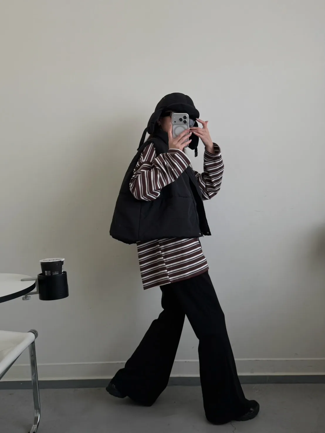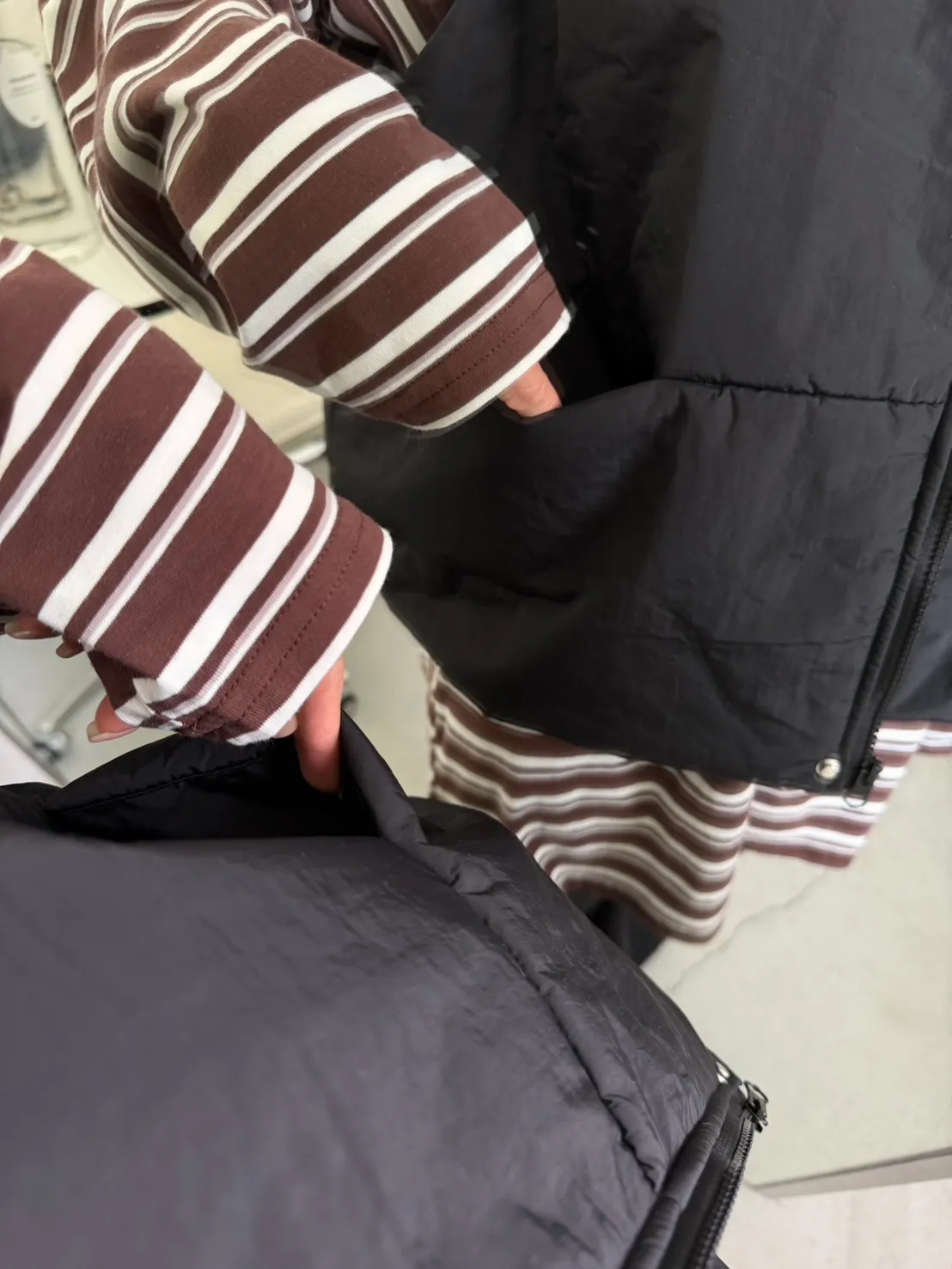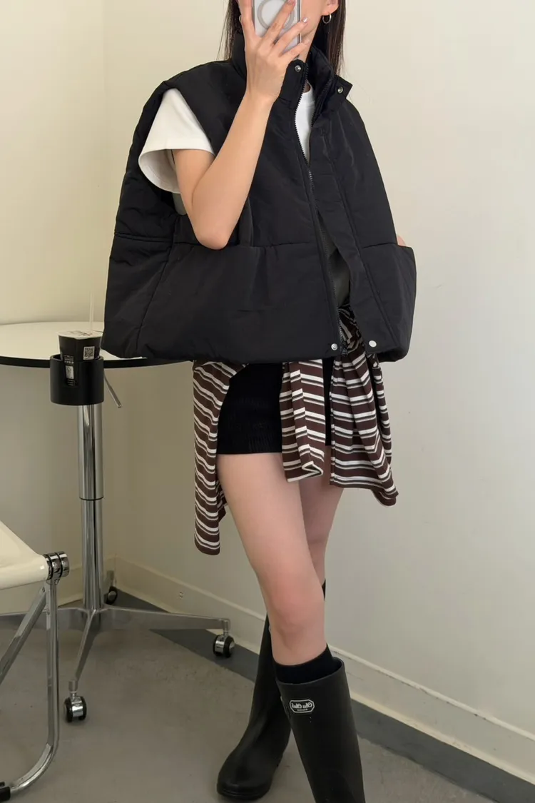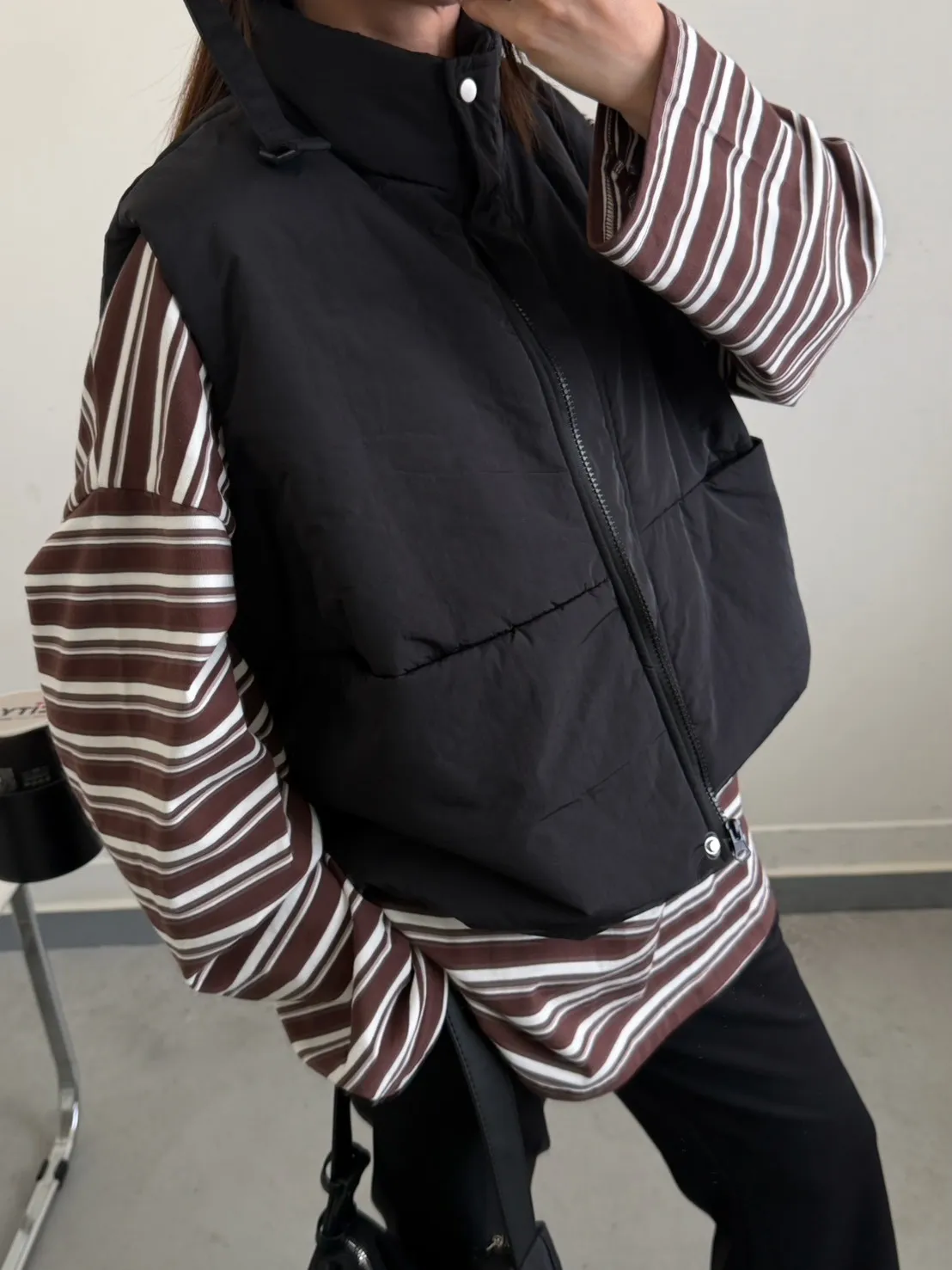 Korea 黑色 輕量感保暖鋪棉背心(下擺抽繩)