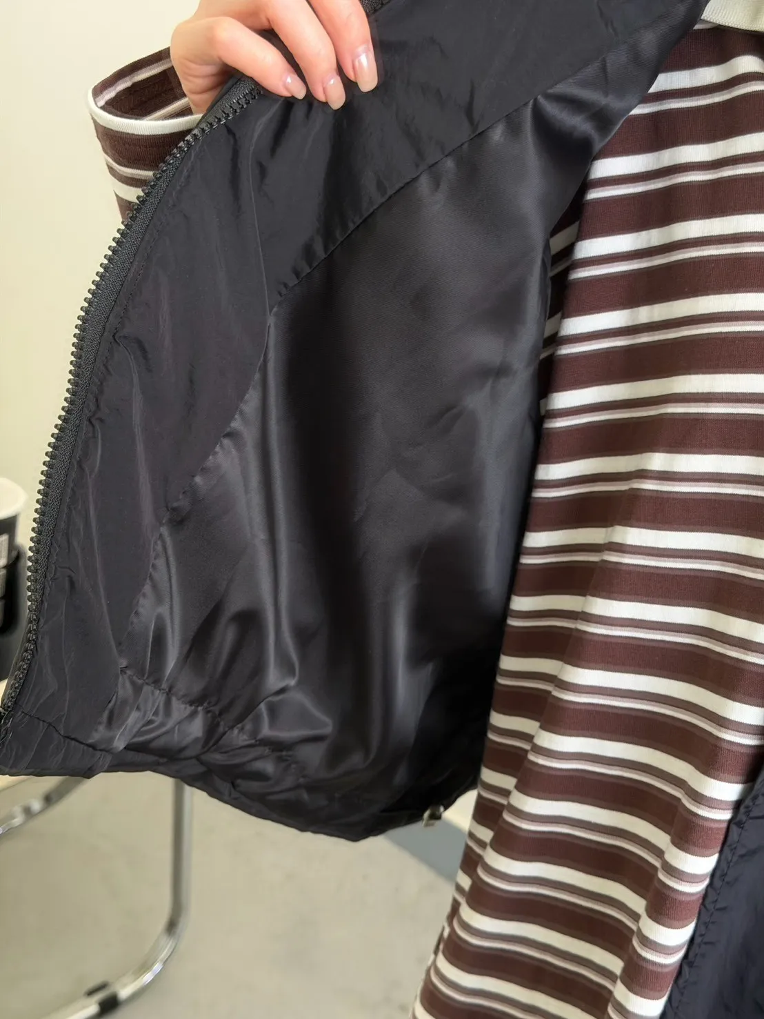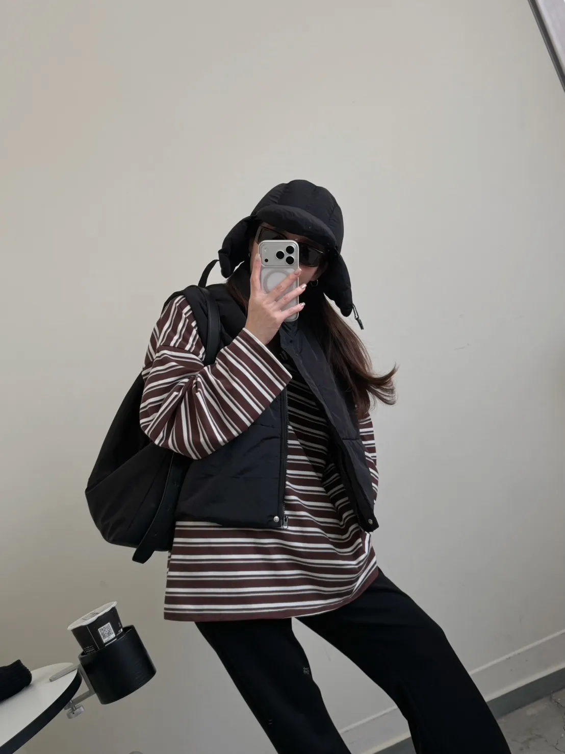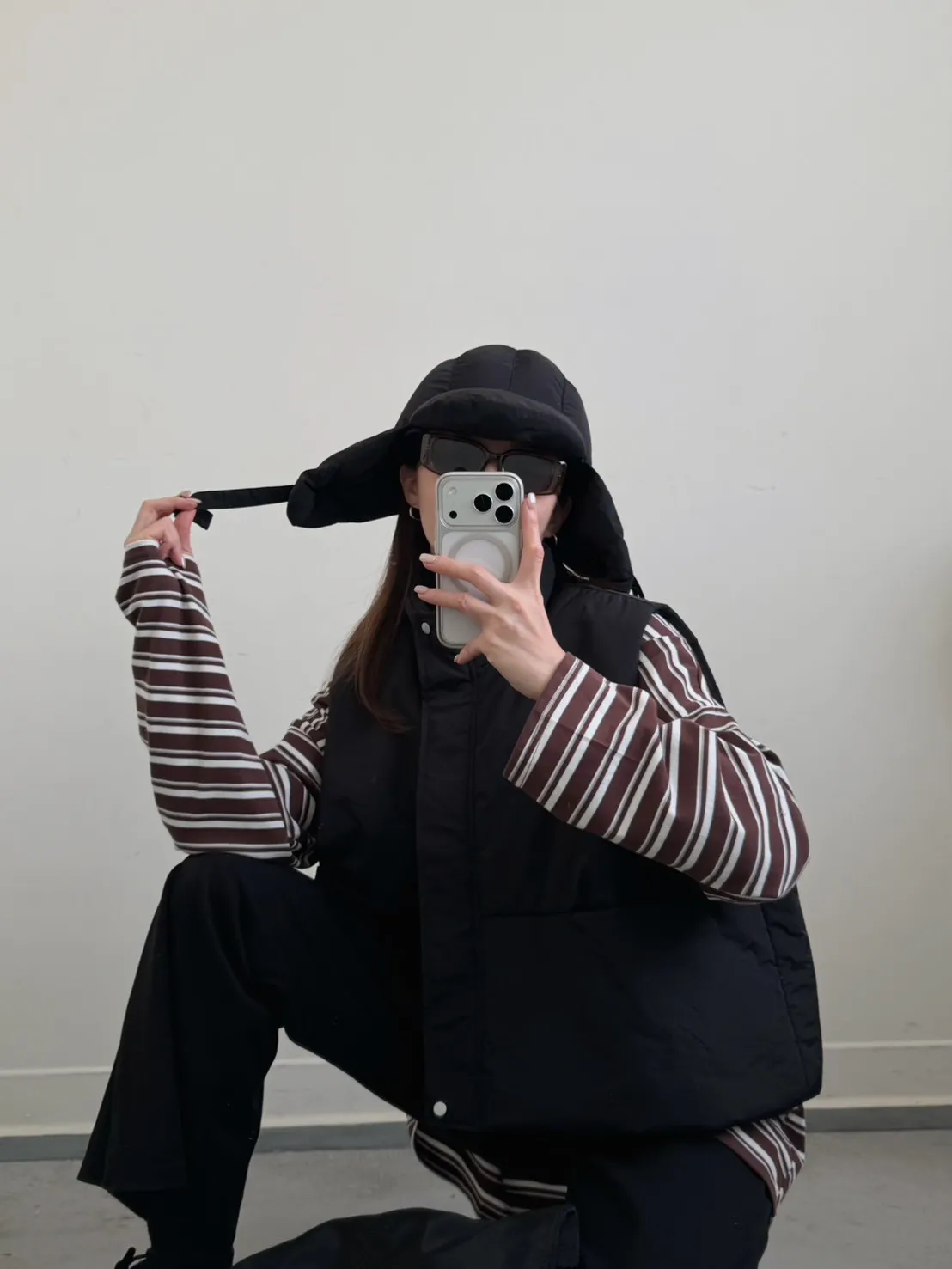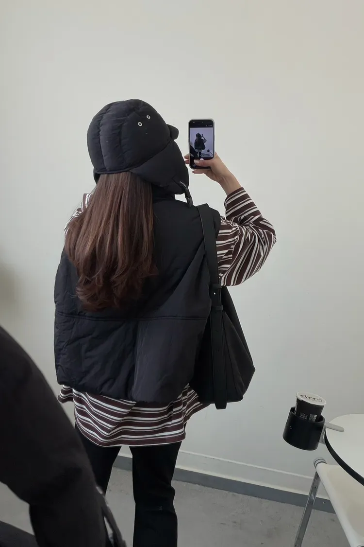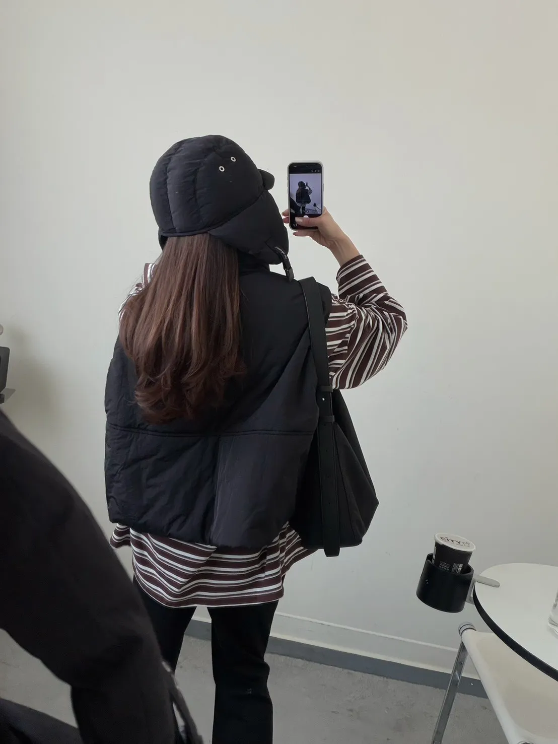 Korea 黑色 輕量感保暖鋪棉背心(下擺抽繩)