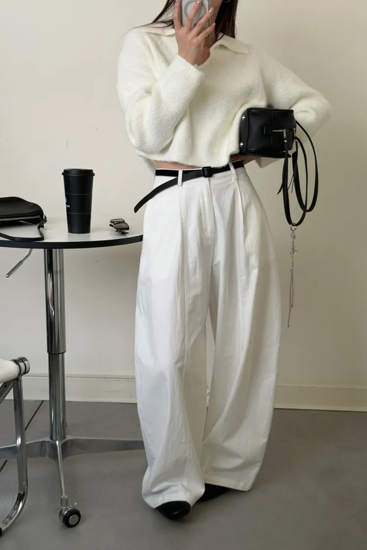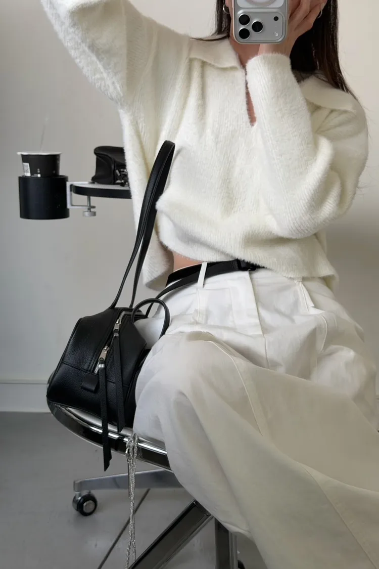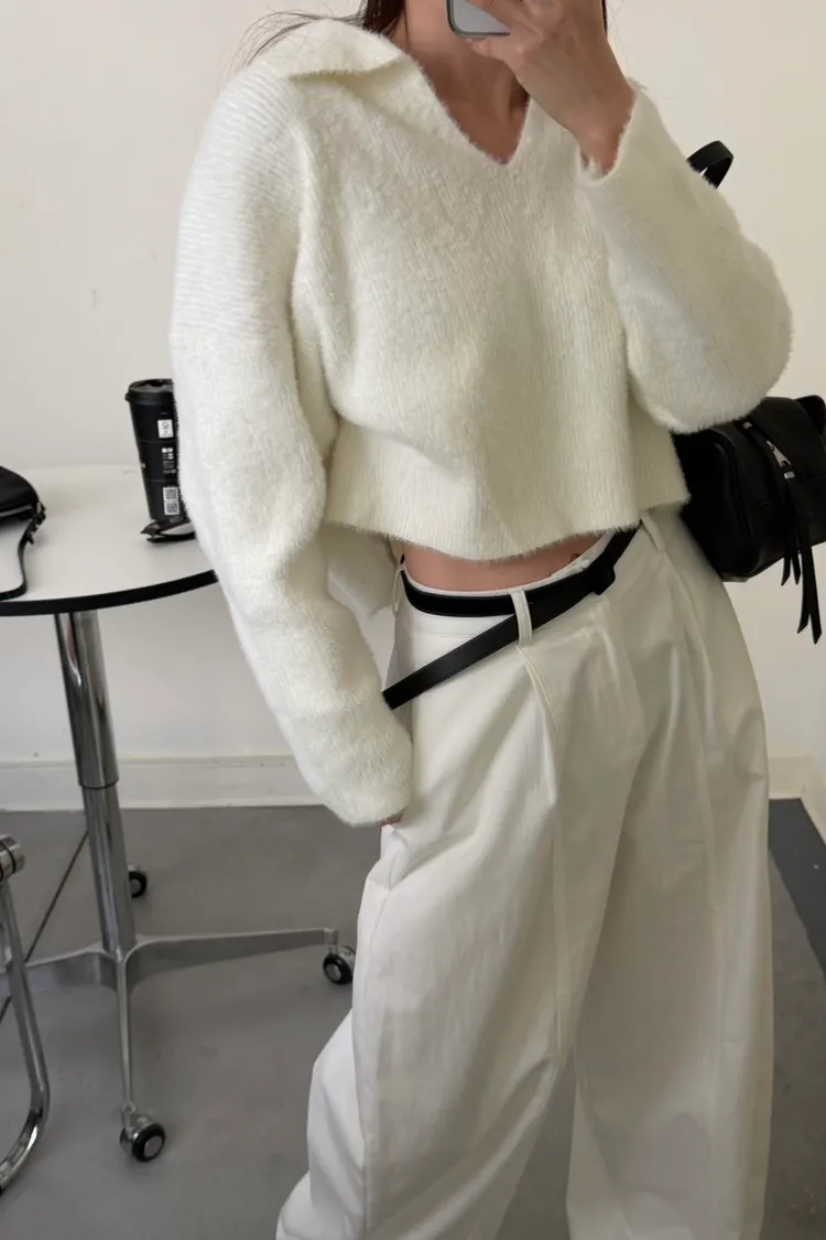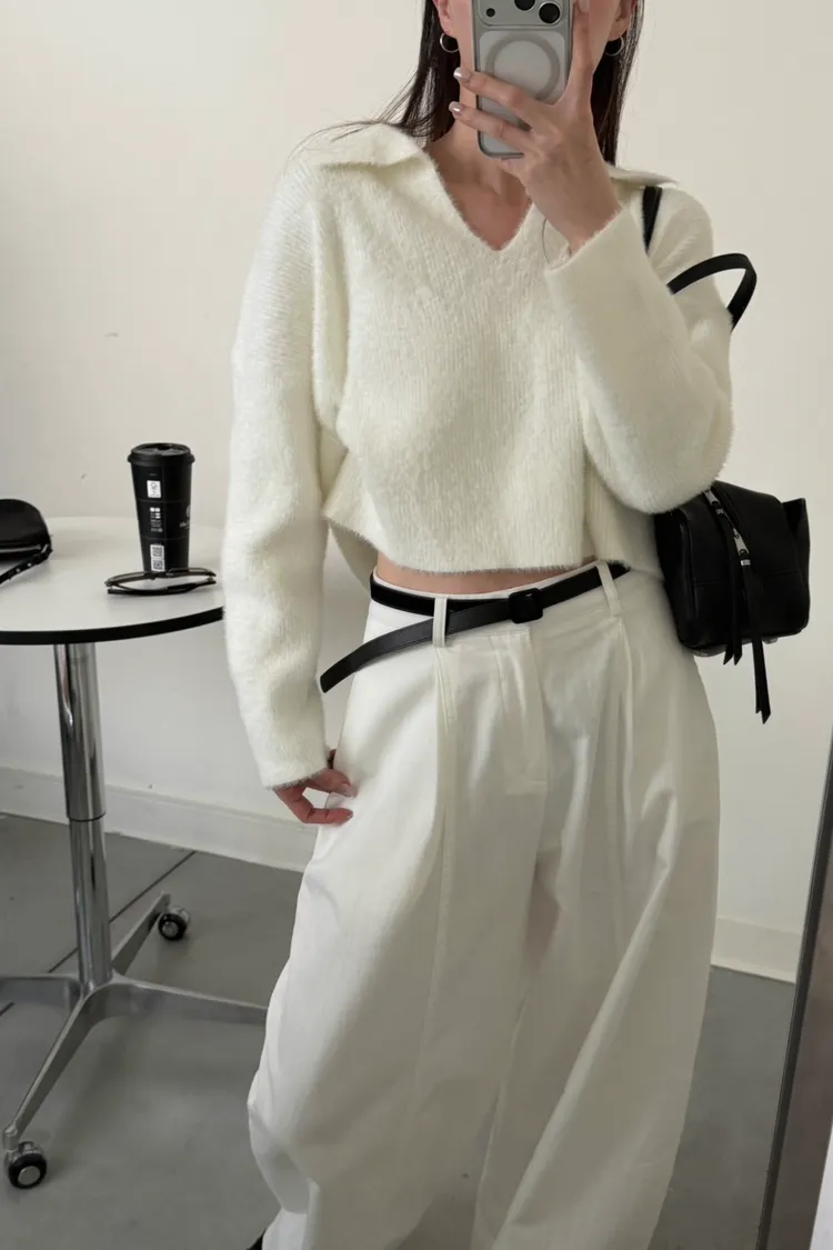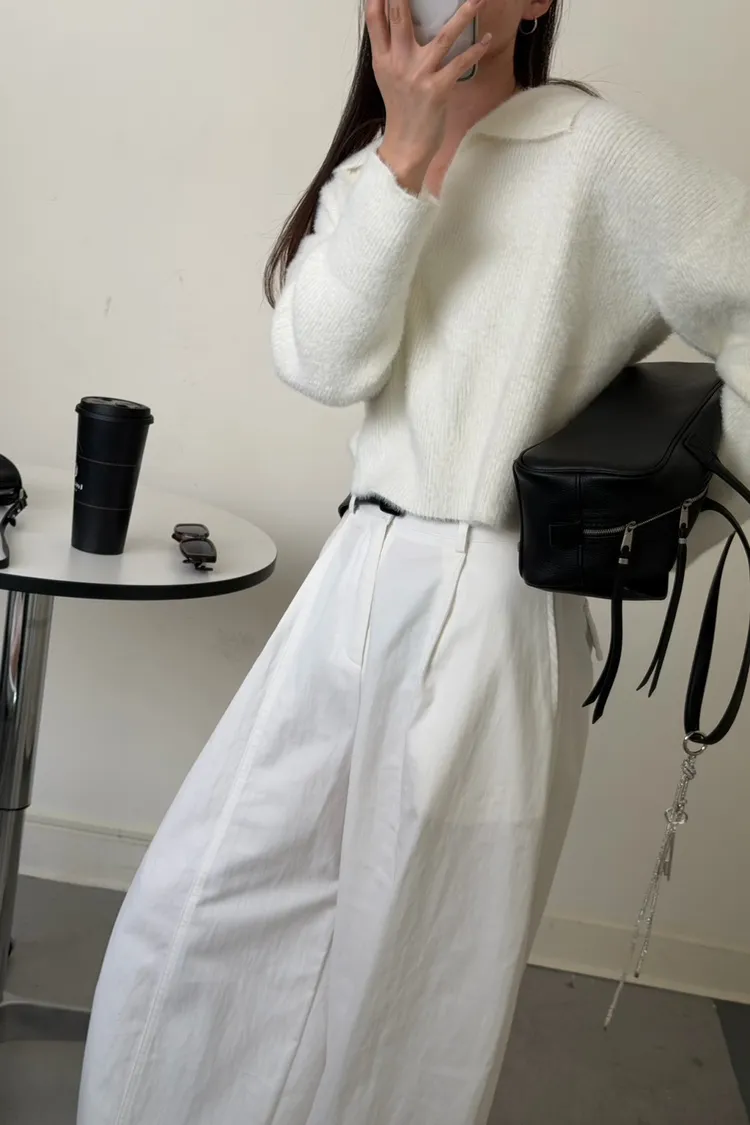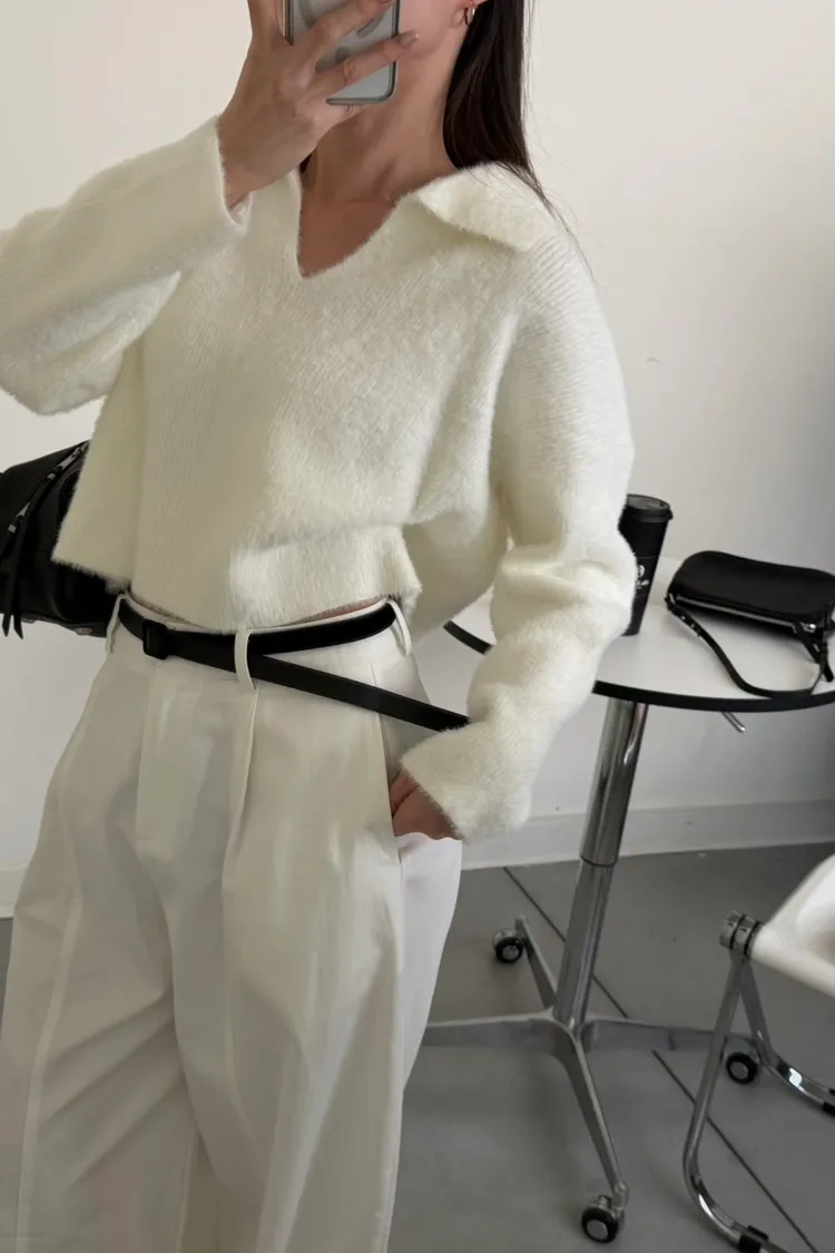 奶白色 極美!軟綿觸感紮實POLO領毛衣
