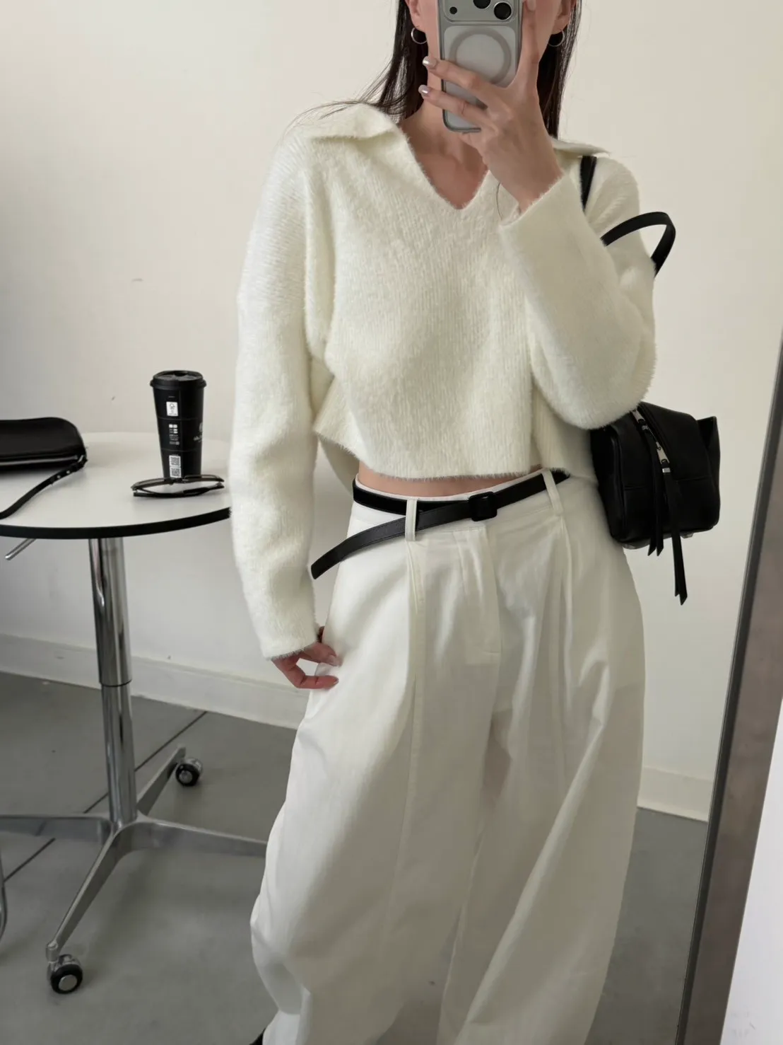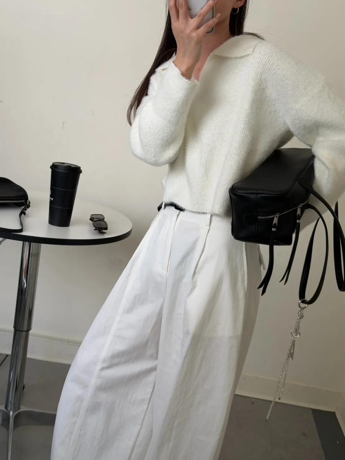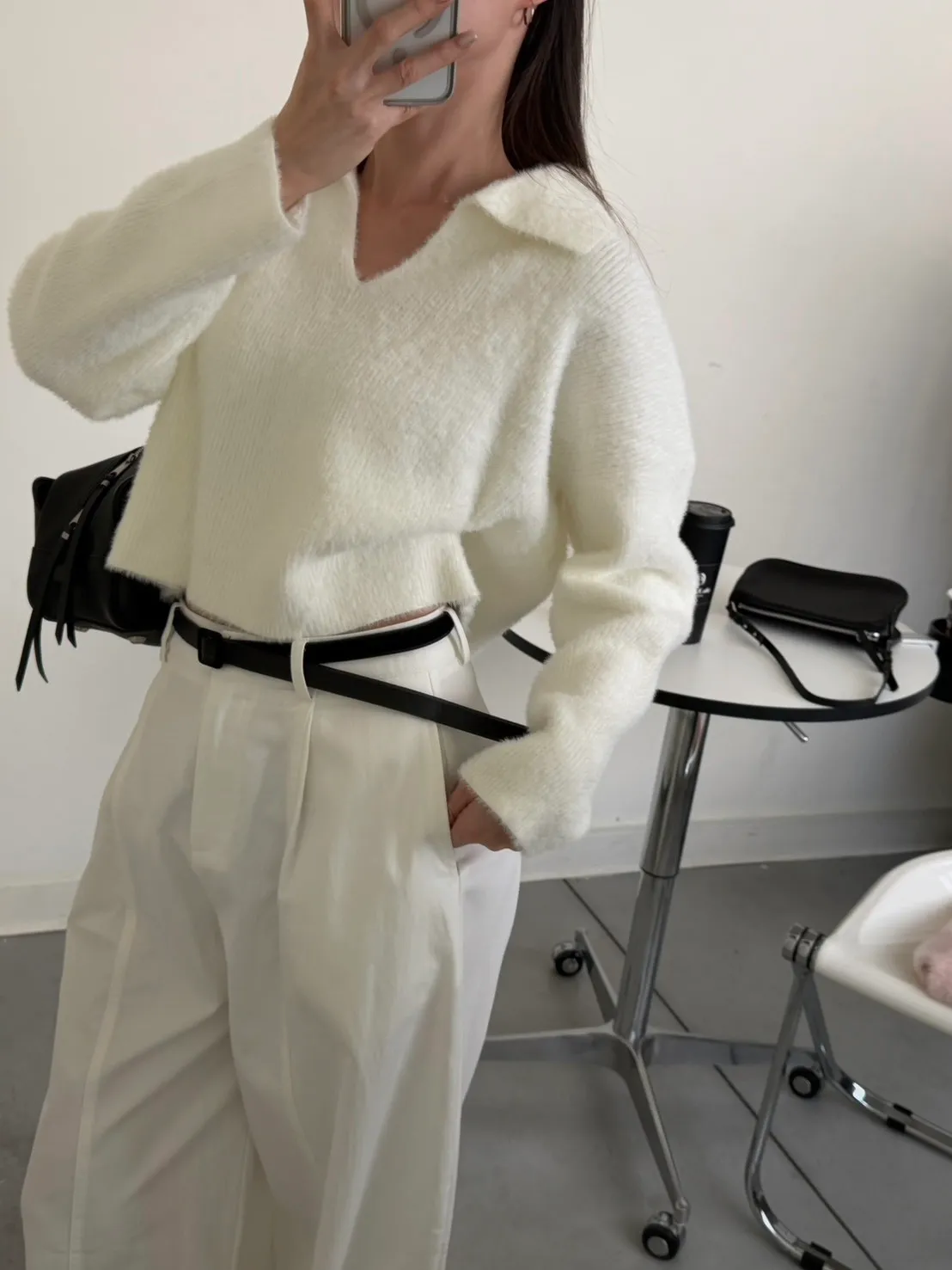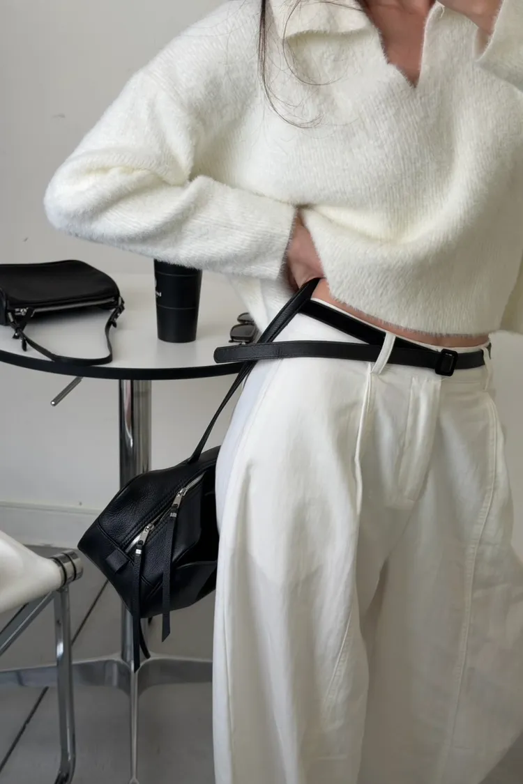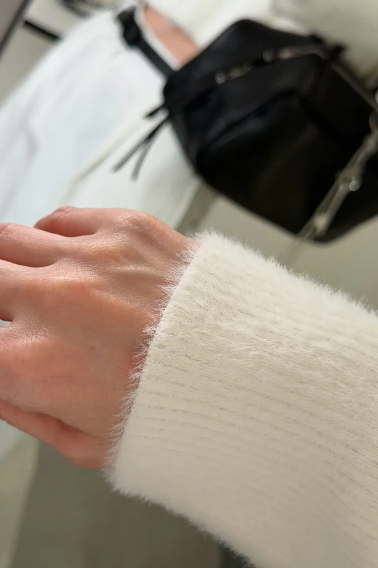 奶白色 極美!軟綿觸感紮實POLO領毛衣