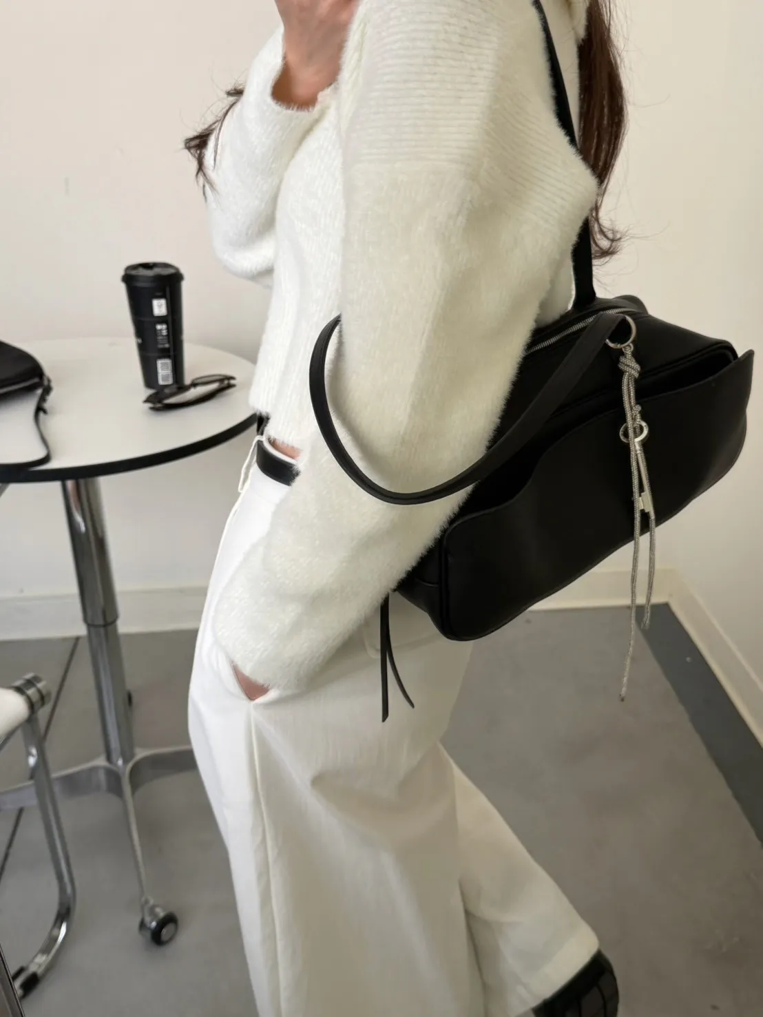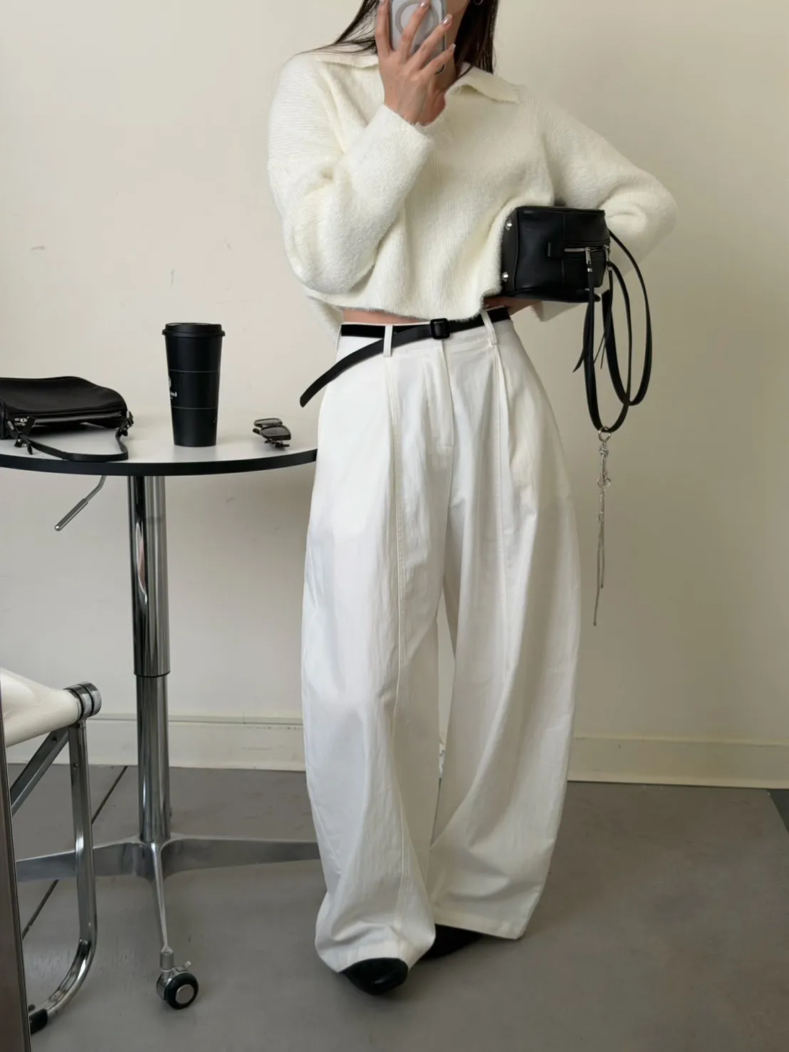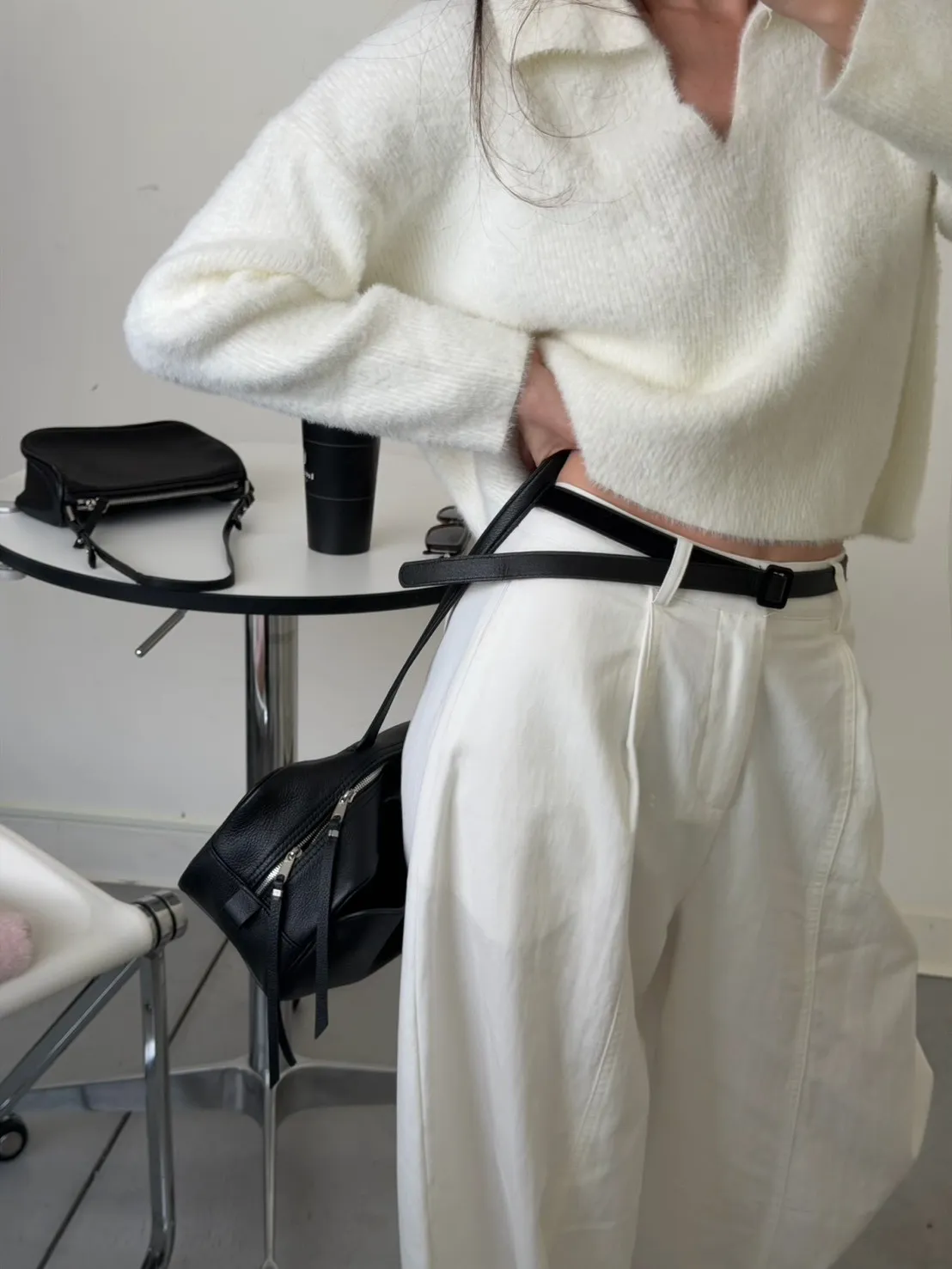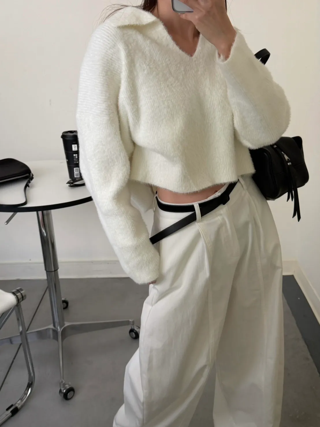 奶白色 極美!軟綿觸感紮實POLO領毛衣