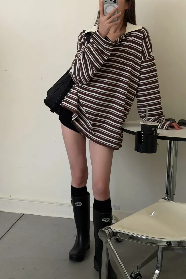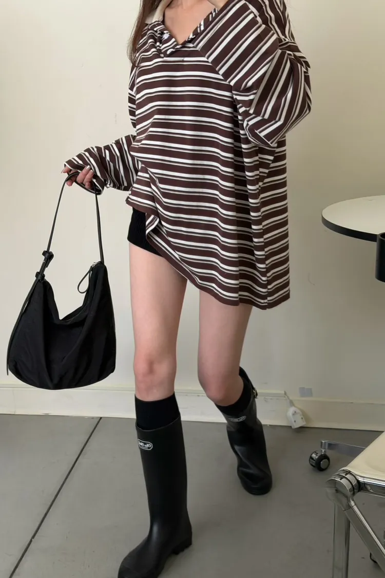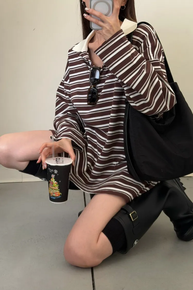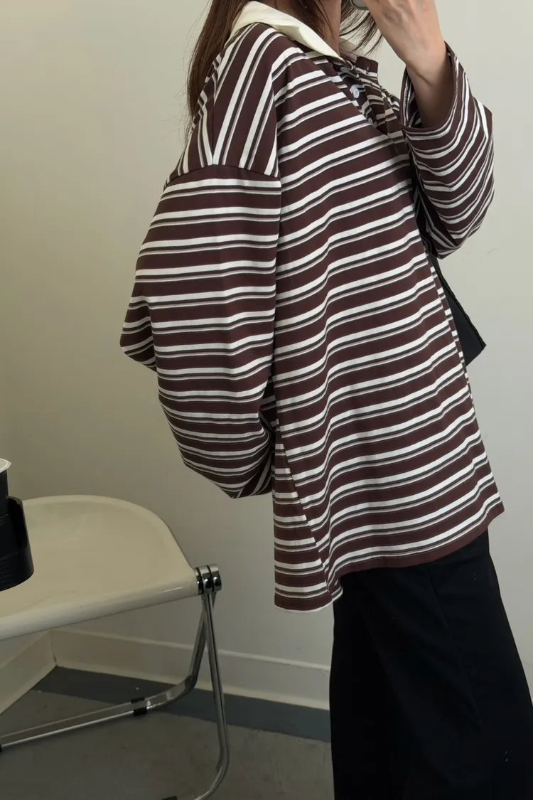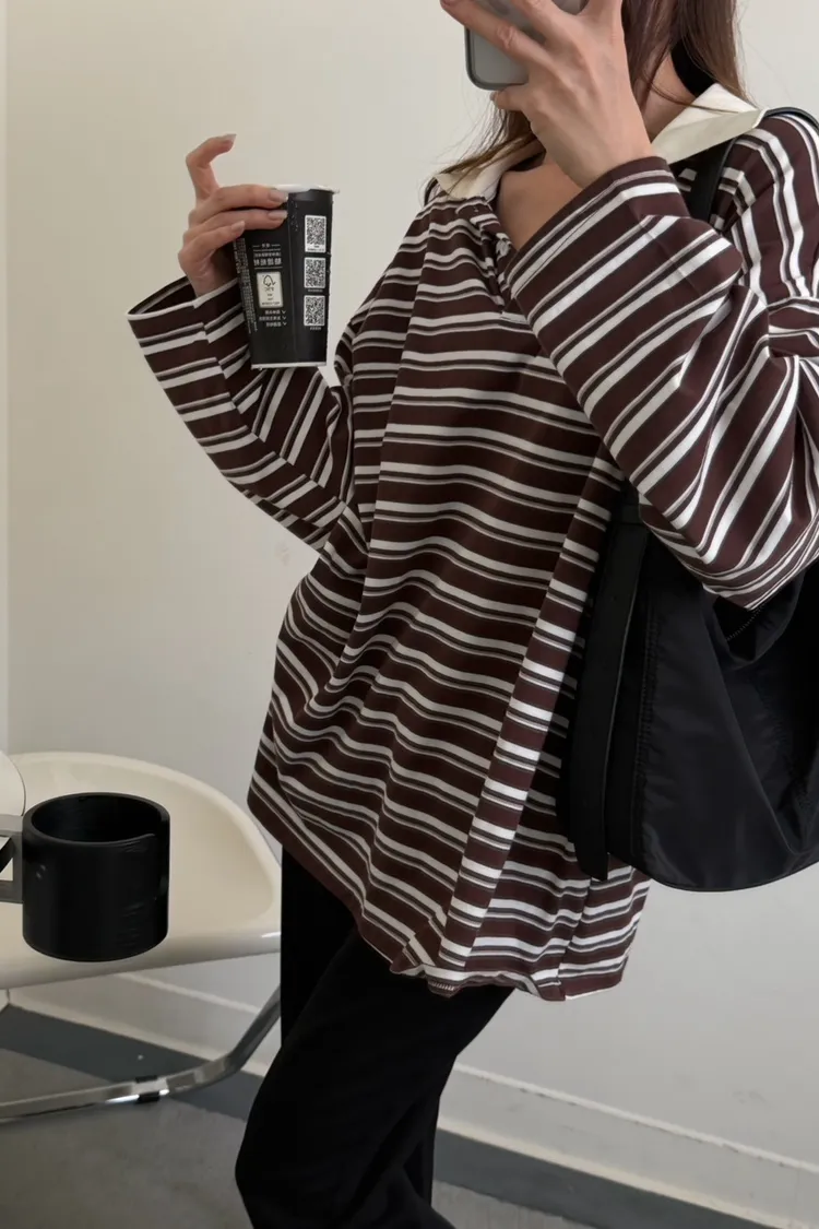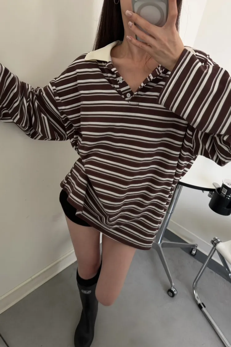 咖底白條色 本次最愛!橫條POLO寬鬆tee