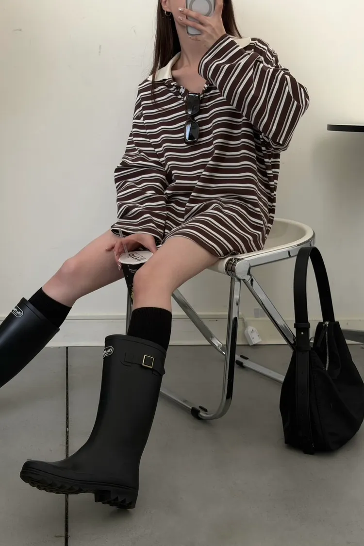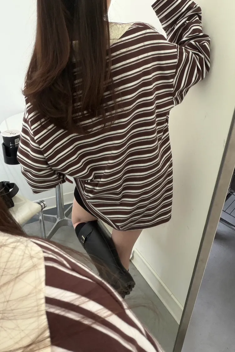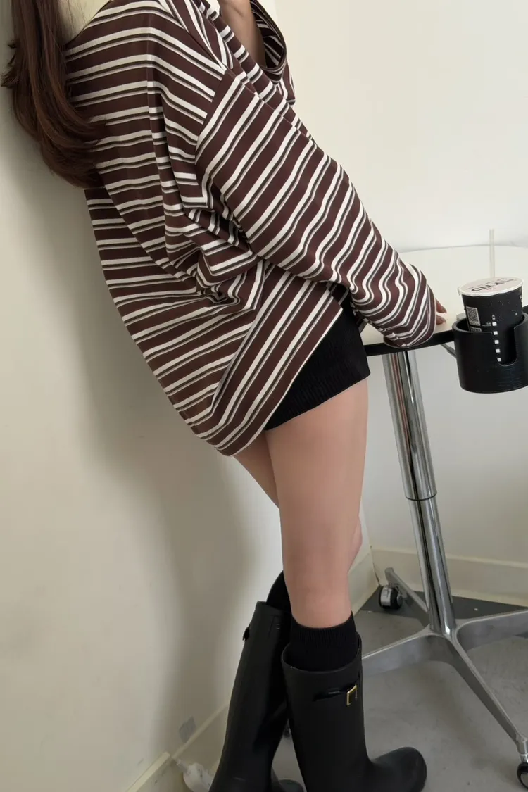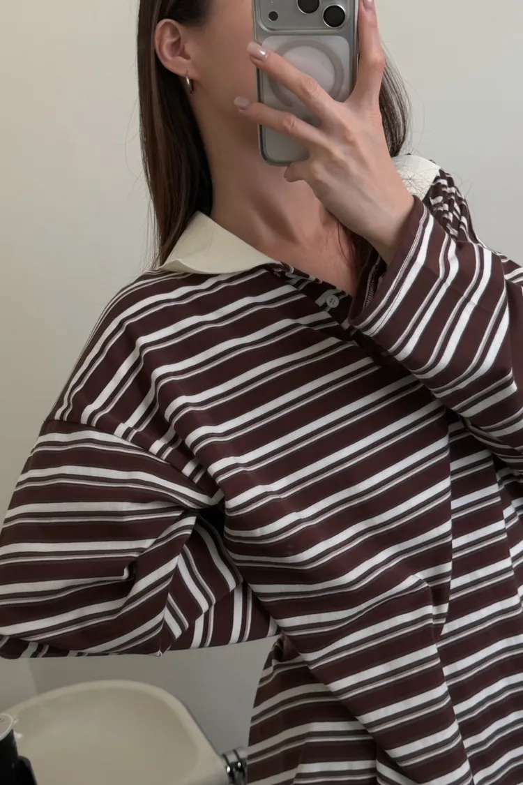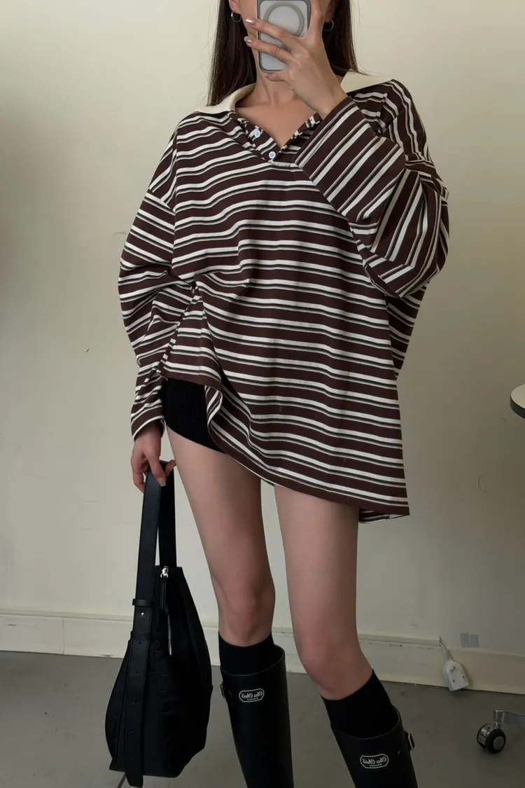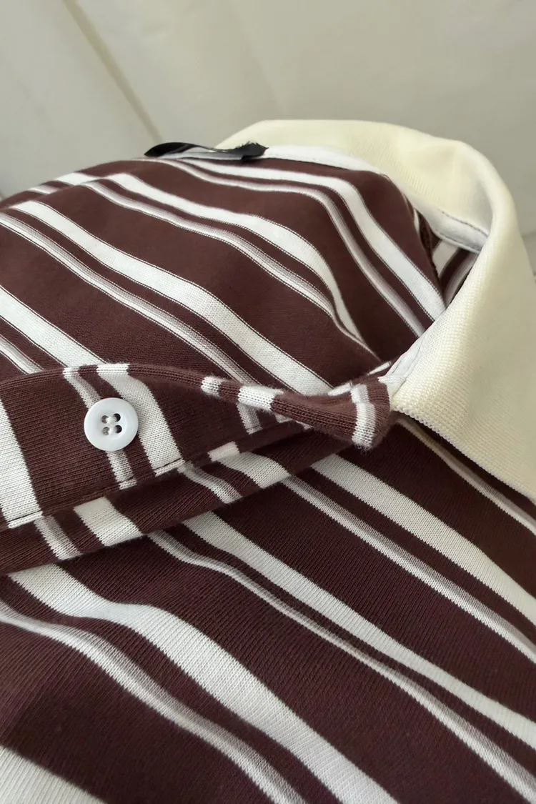 咖底白條色 本次最愛!橫條POLO寬鬆tee