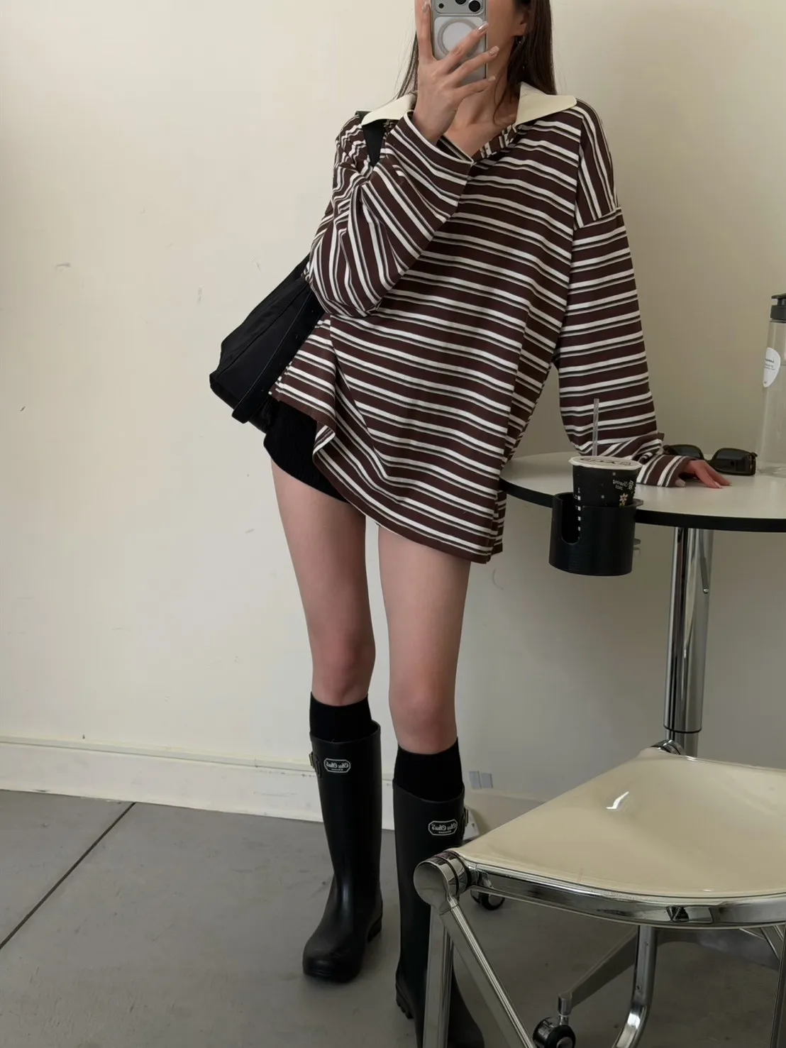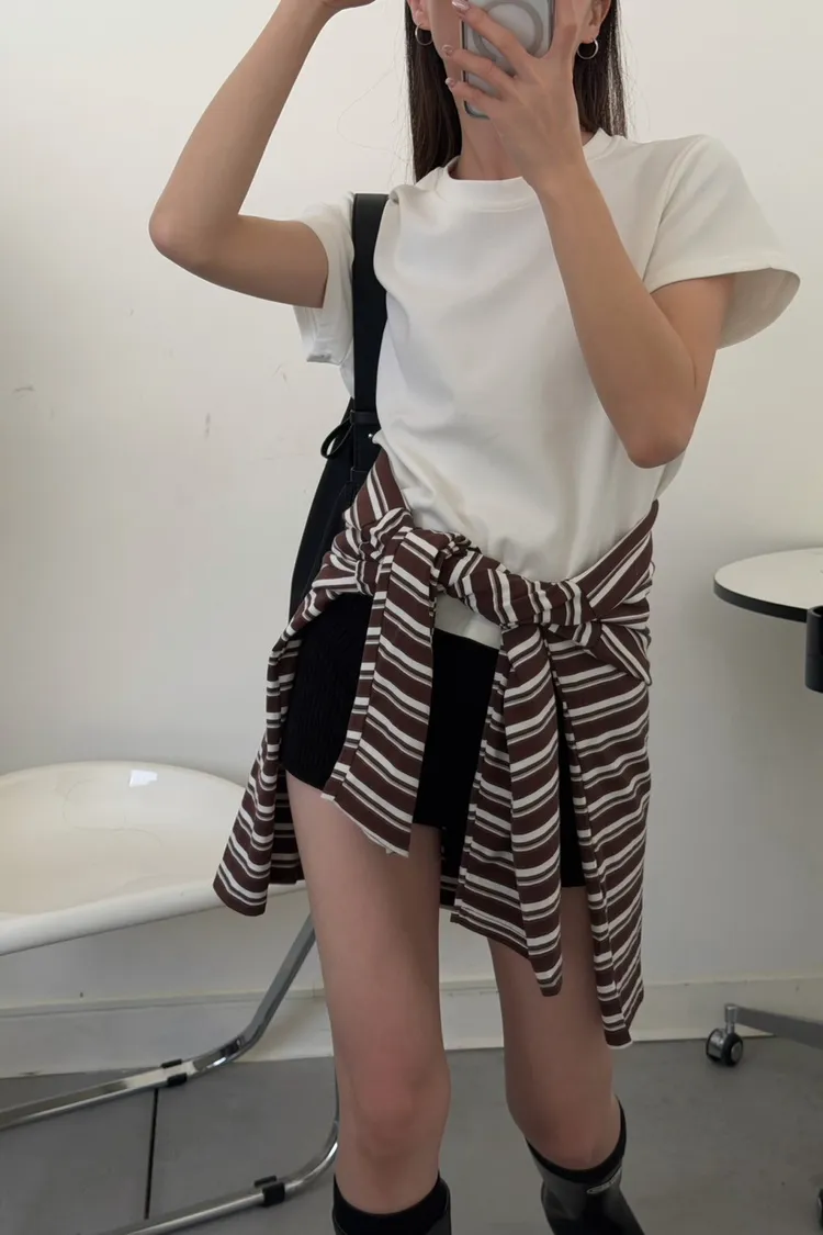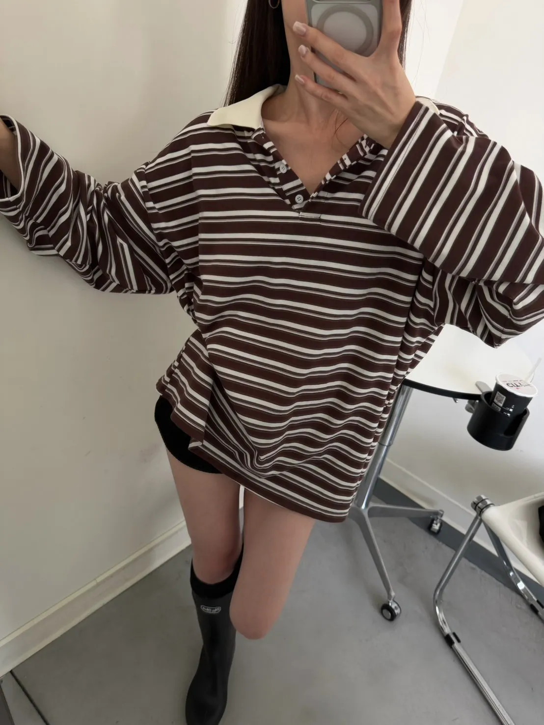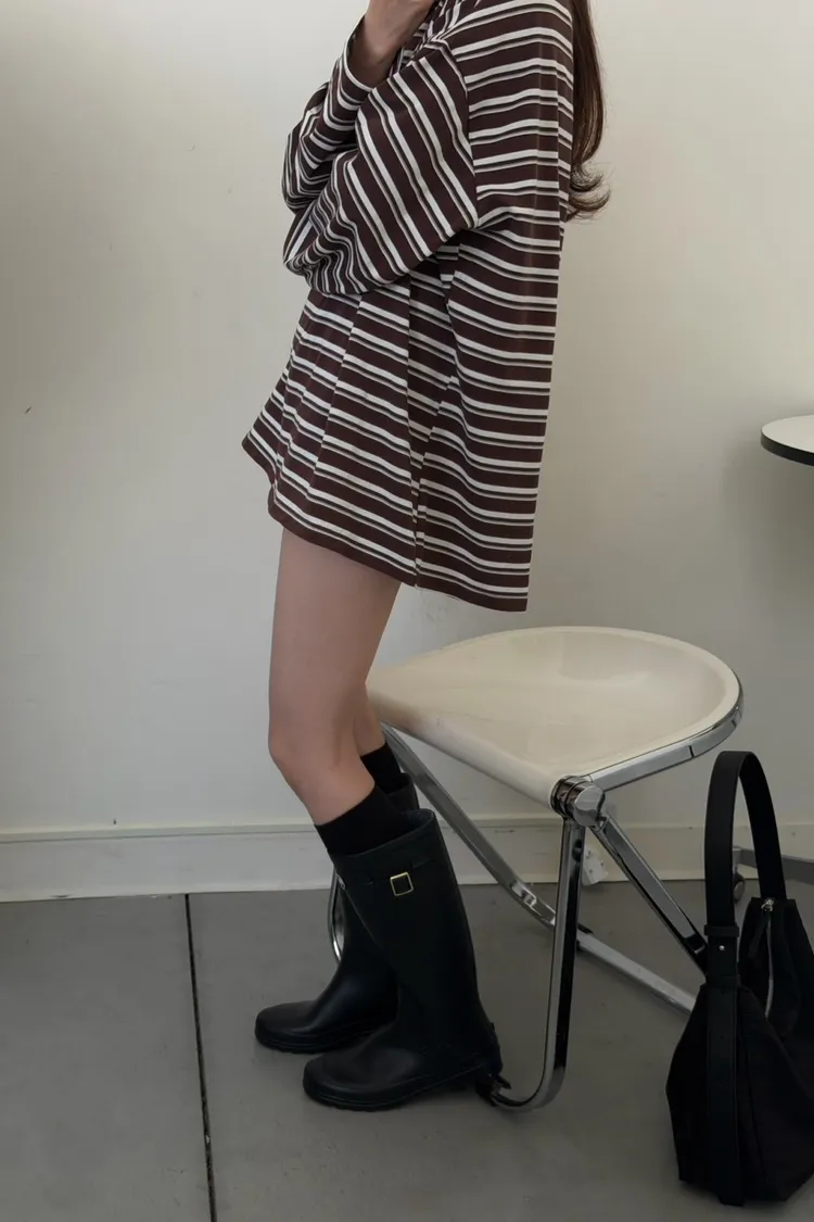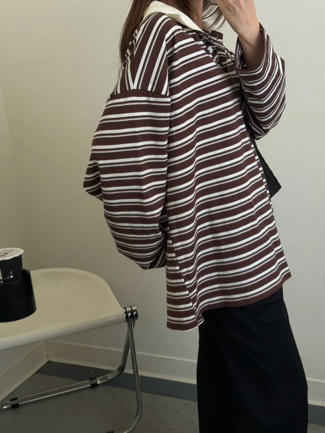 咖底白條色 本次最愛!橫條POLO寬鬆tee