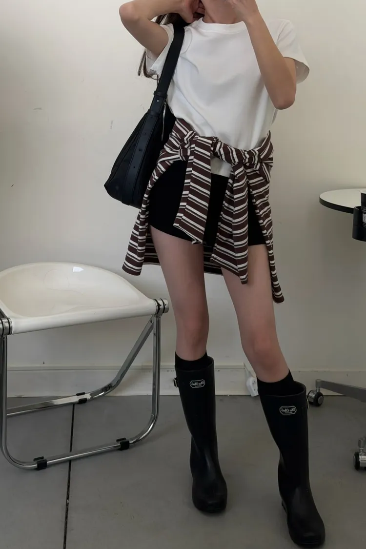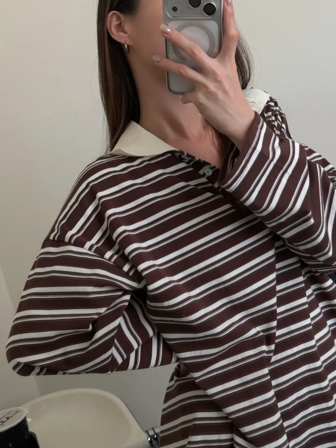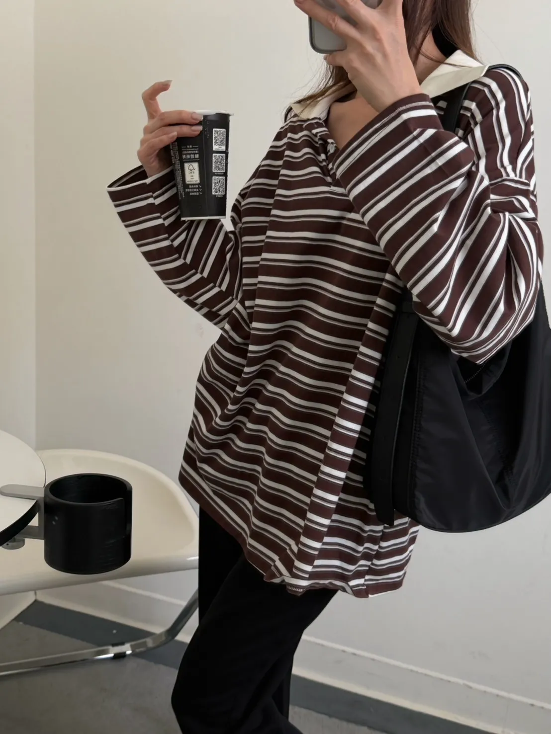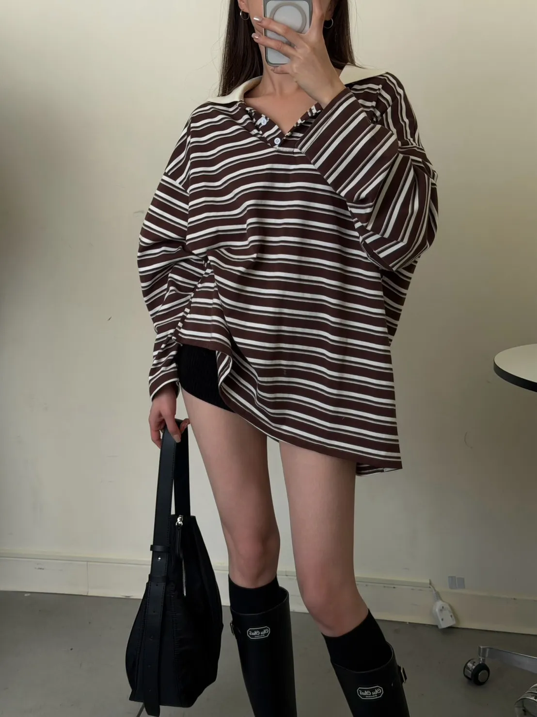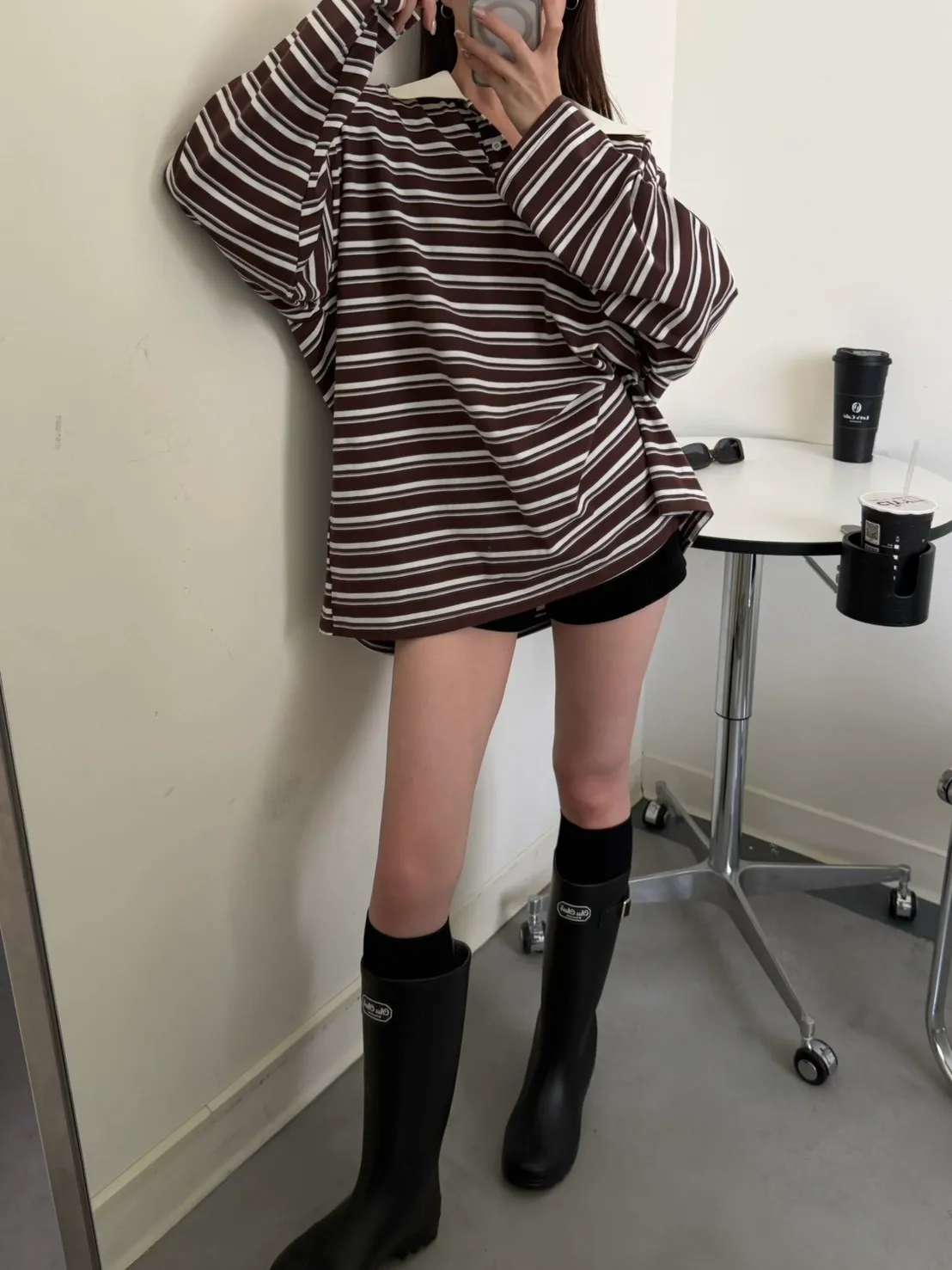 咖底白條色 本次最愛!橫條POLO寬鬆tee