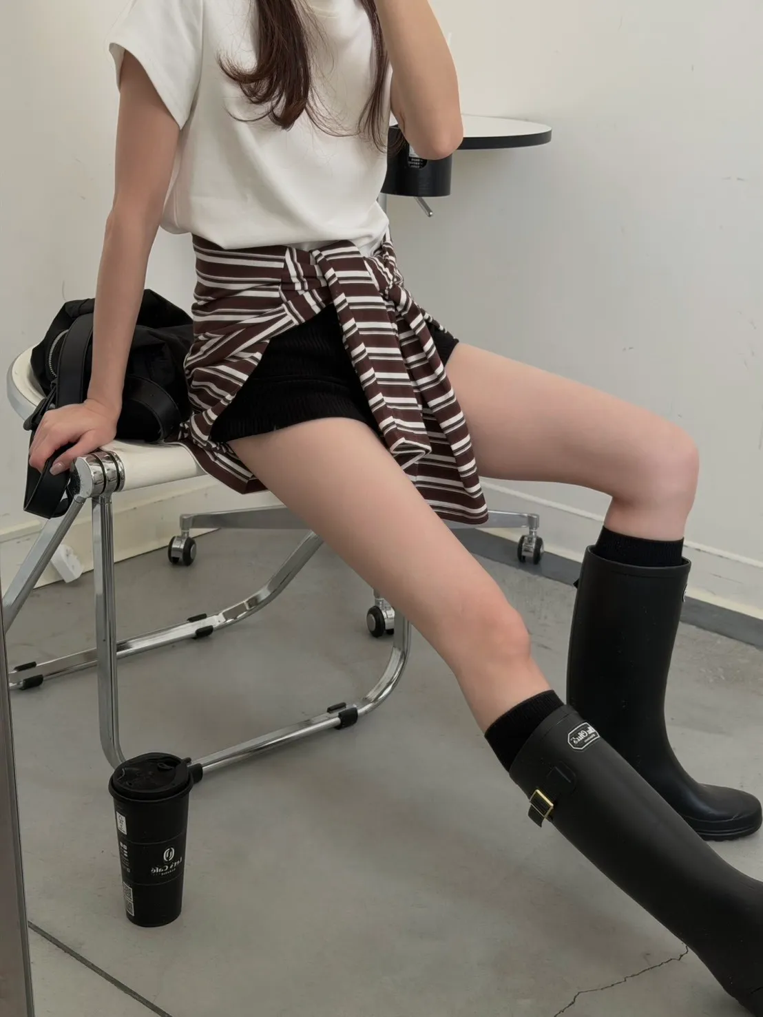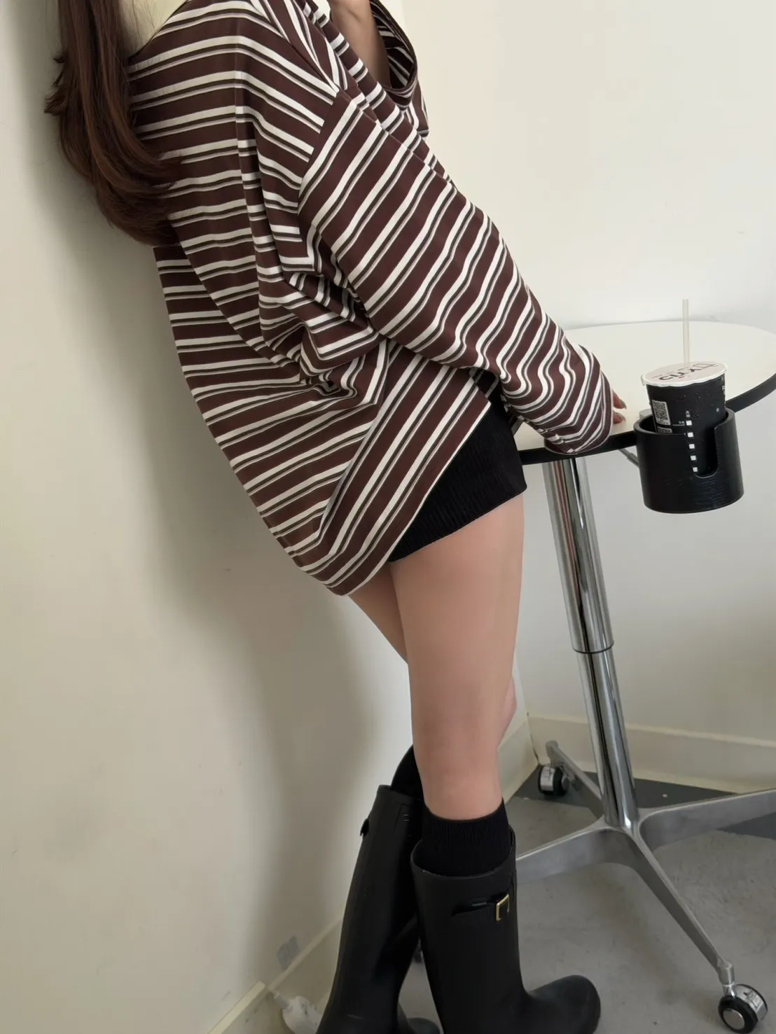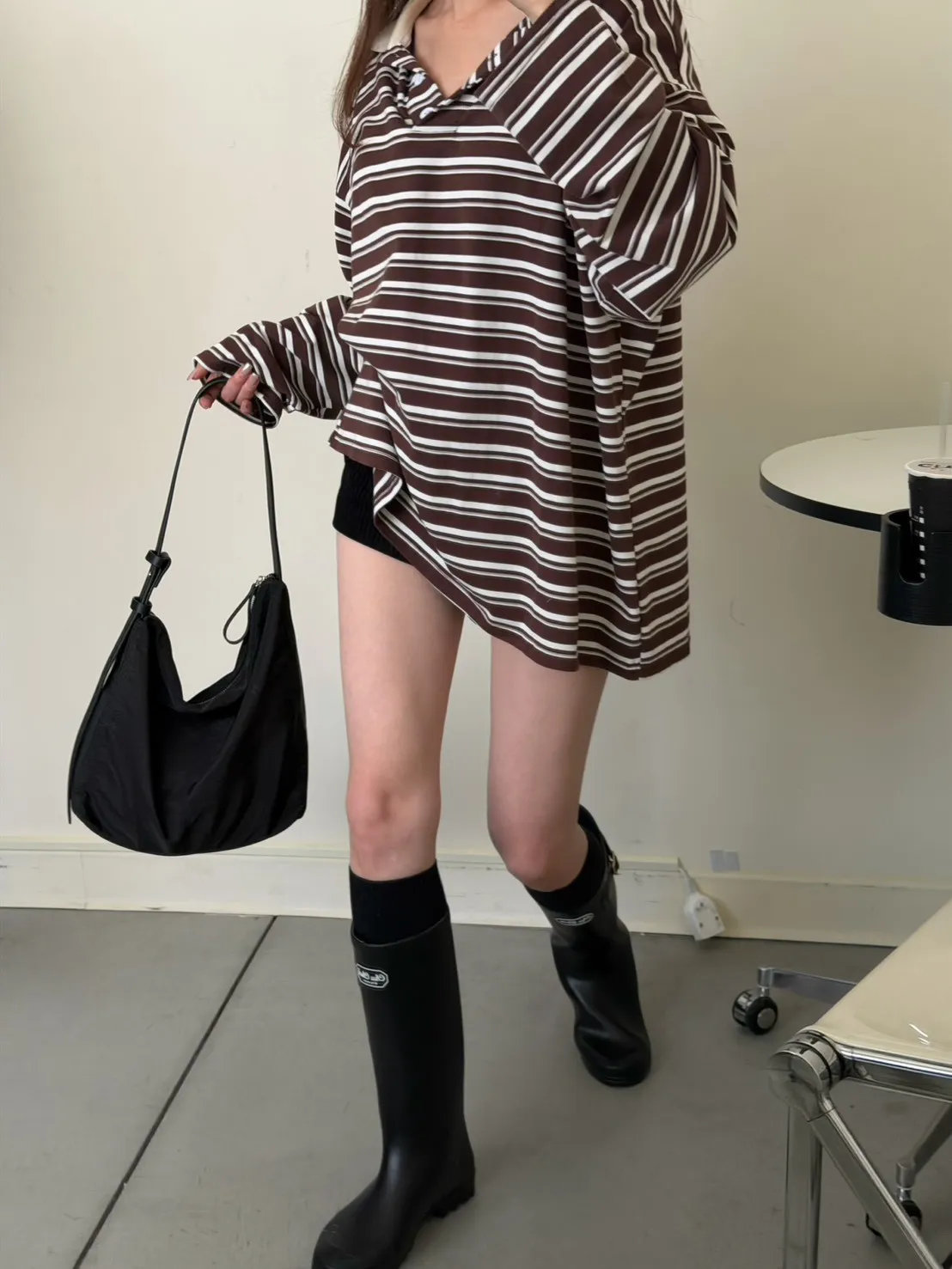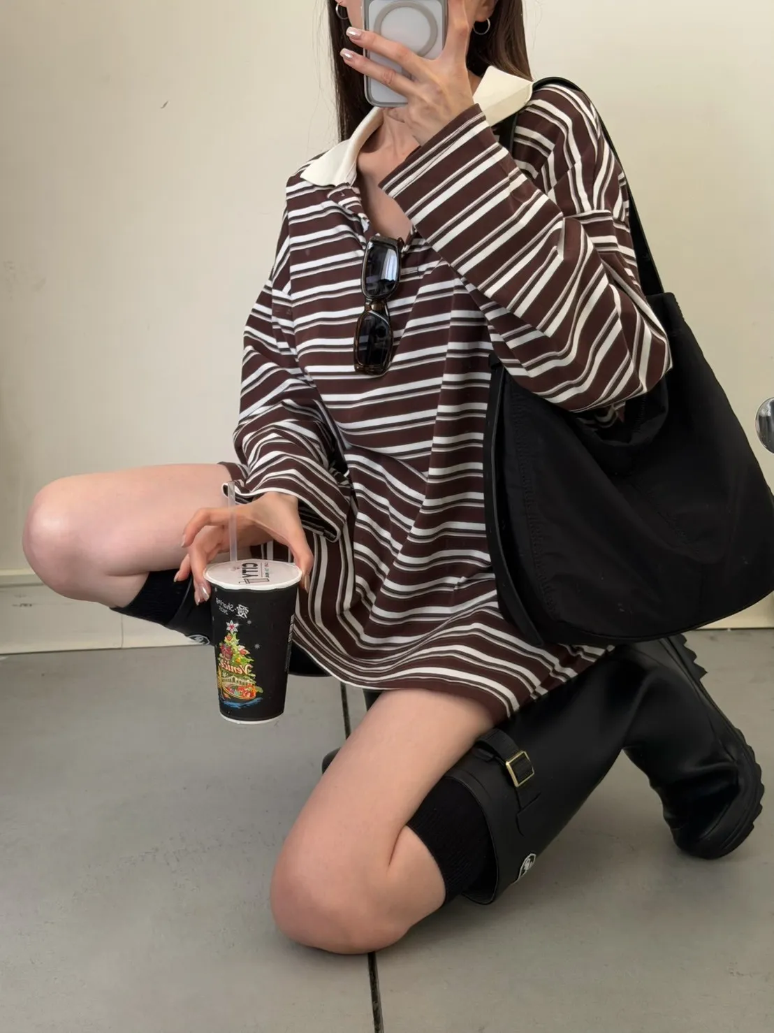 咖底白條色 本次最愛!橫條POLO寬鬆tee