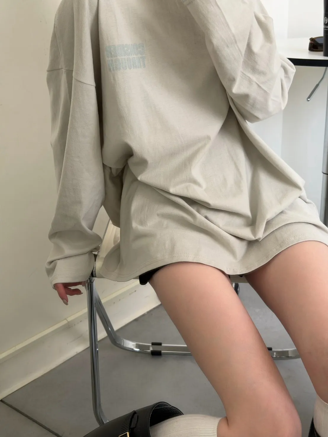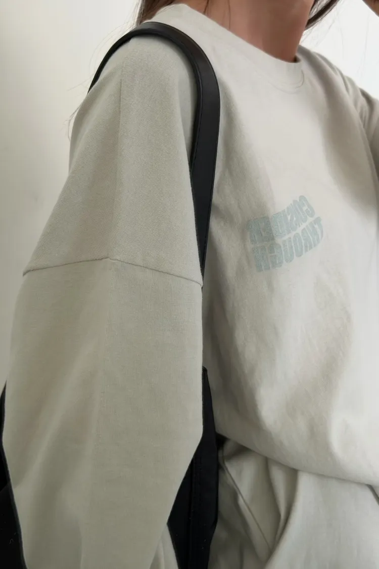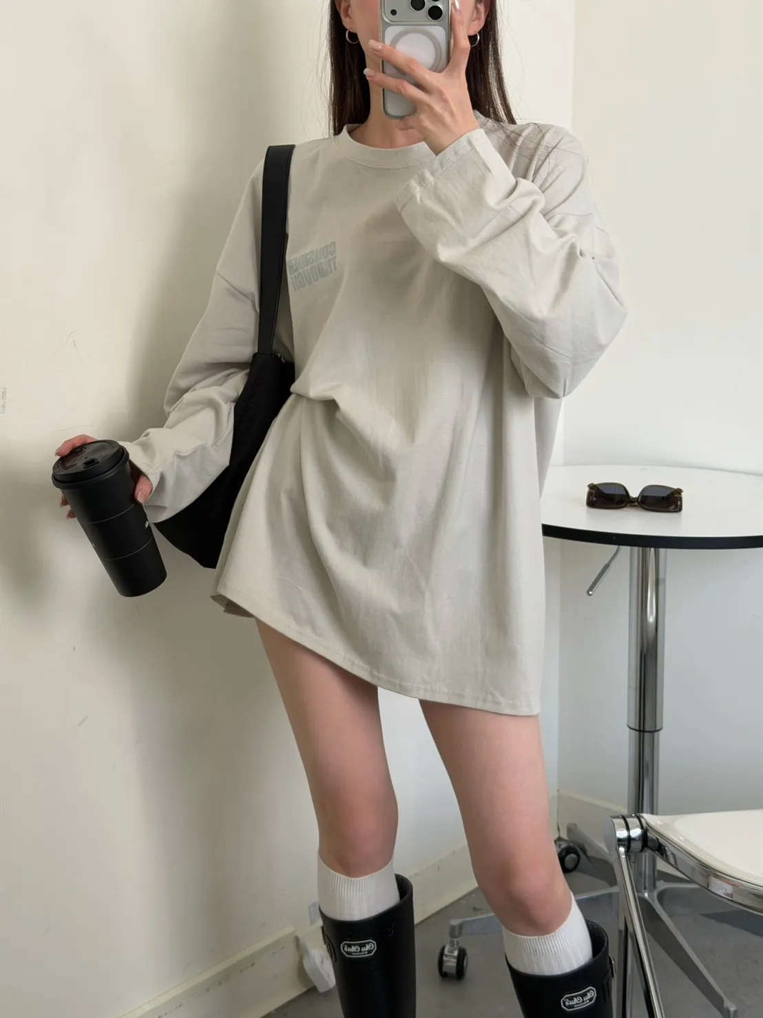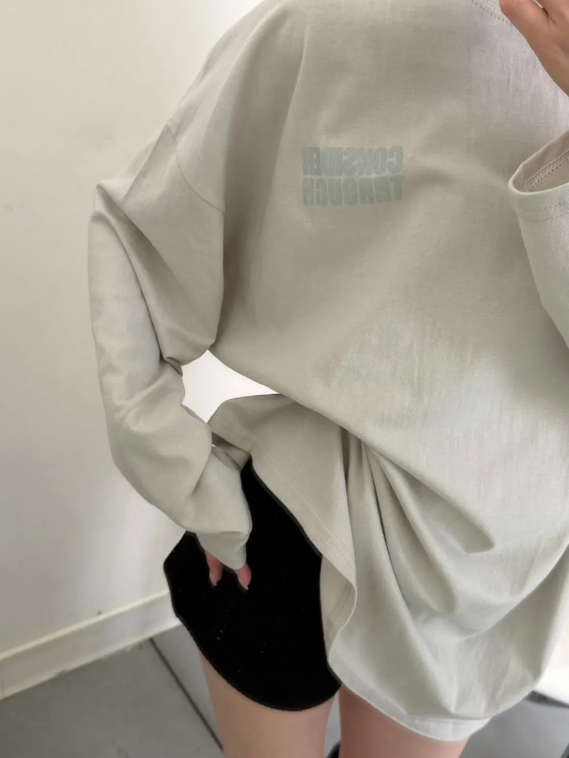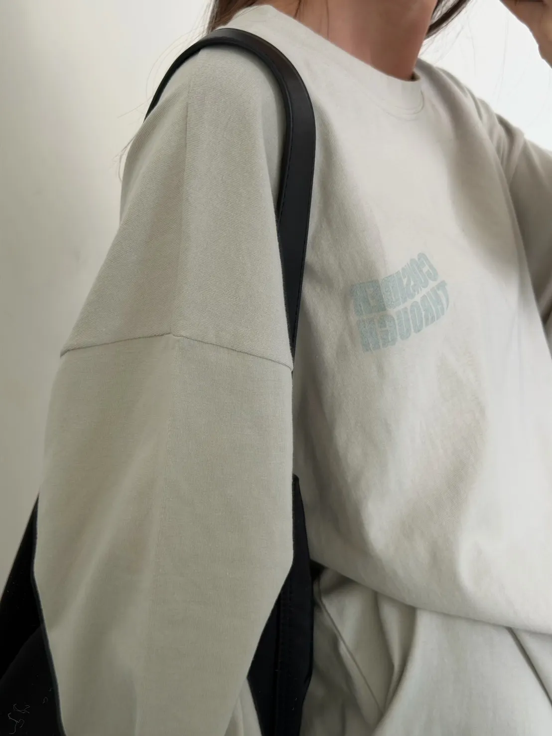 KOREA 霧感奶灰色 寬鬆字母棉tee